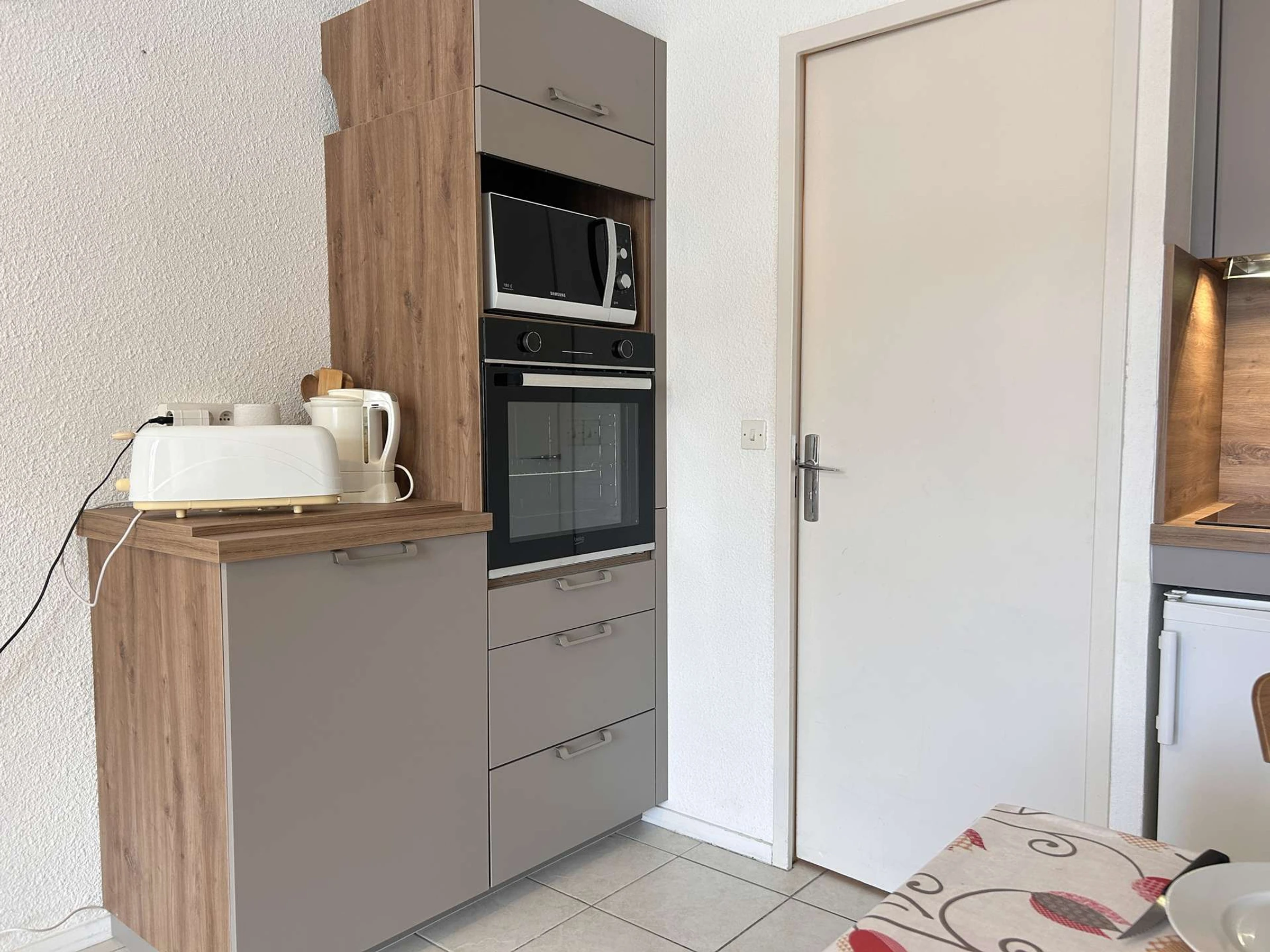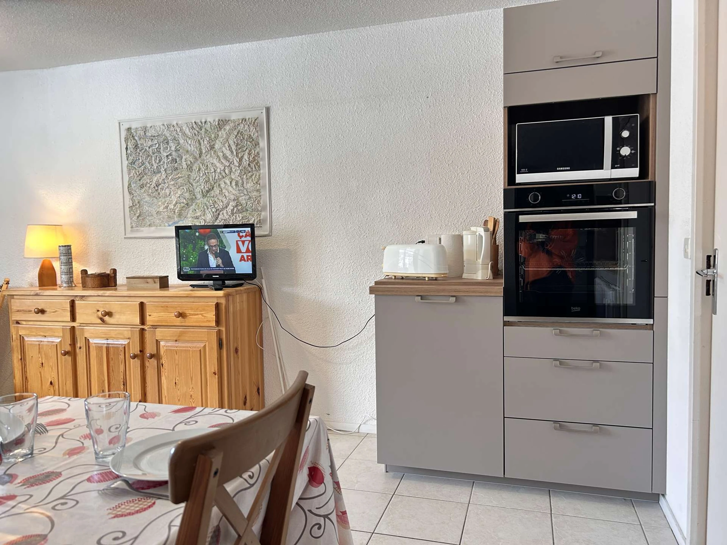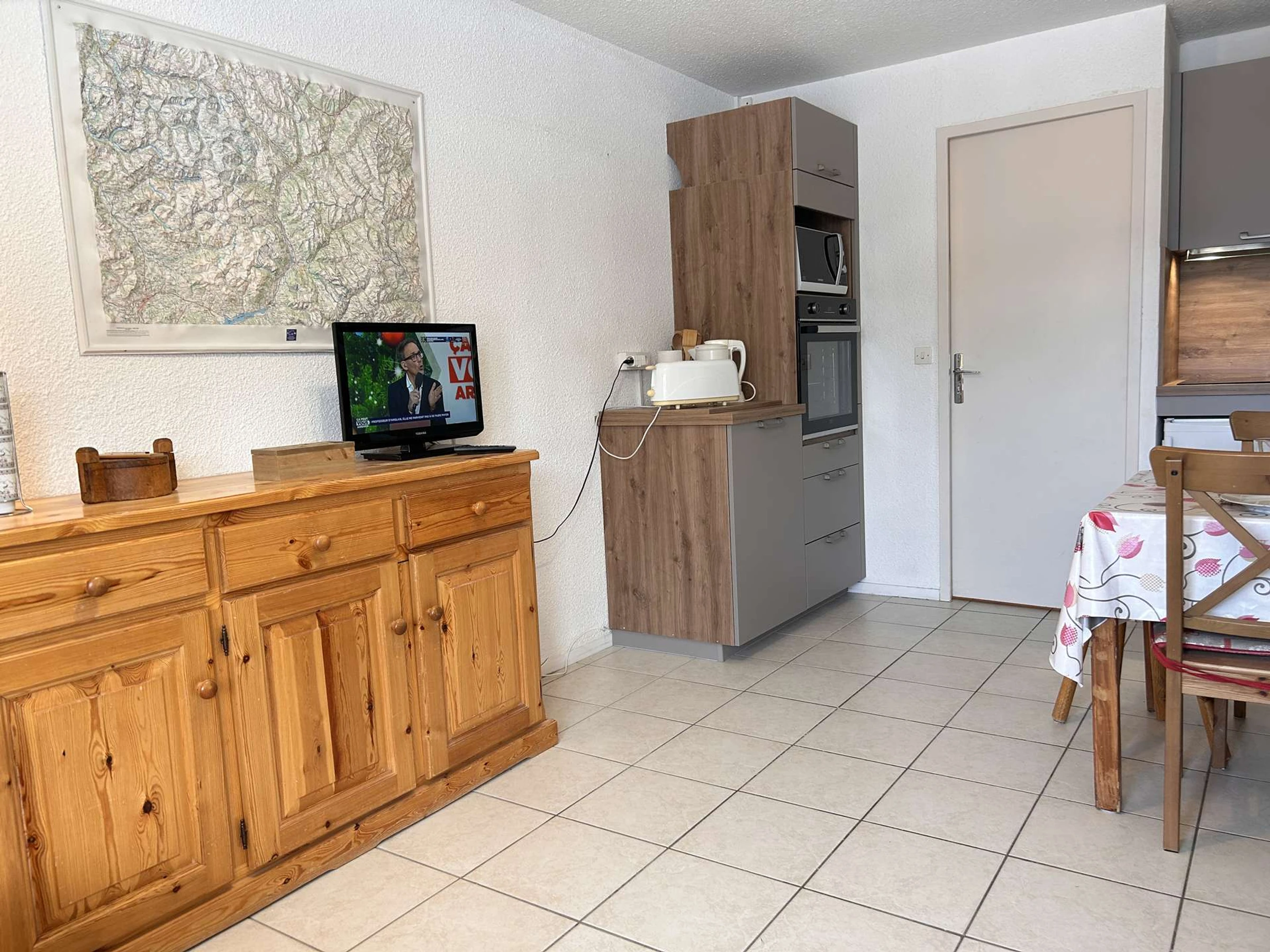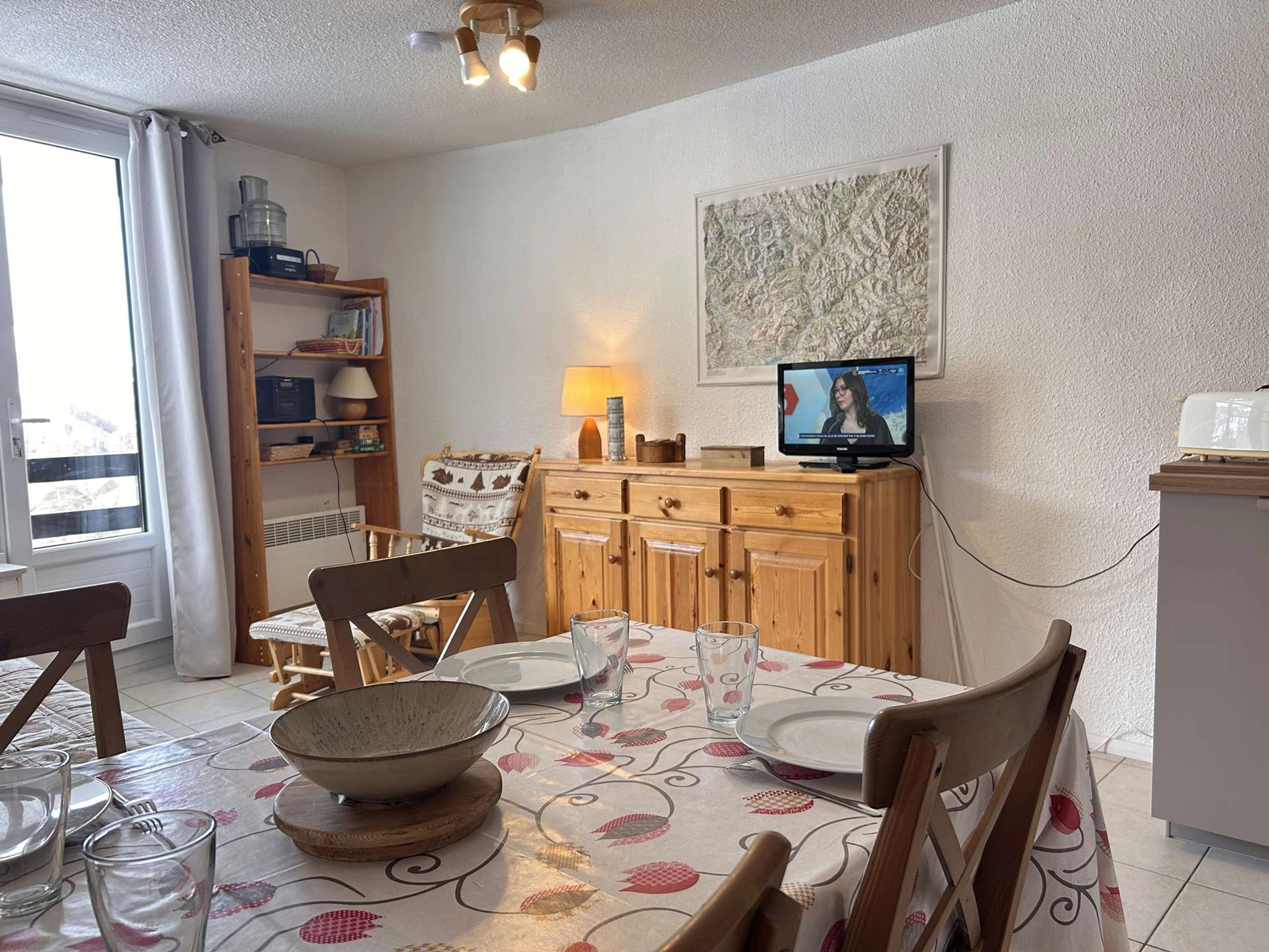 Located in the eastern sector of the resort, this vacation rental, on the 4th floor with elevator, features a sofa bed in the living room, a bedroom with a double bed (140 cm), and two bunk beds in a mountain corner.