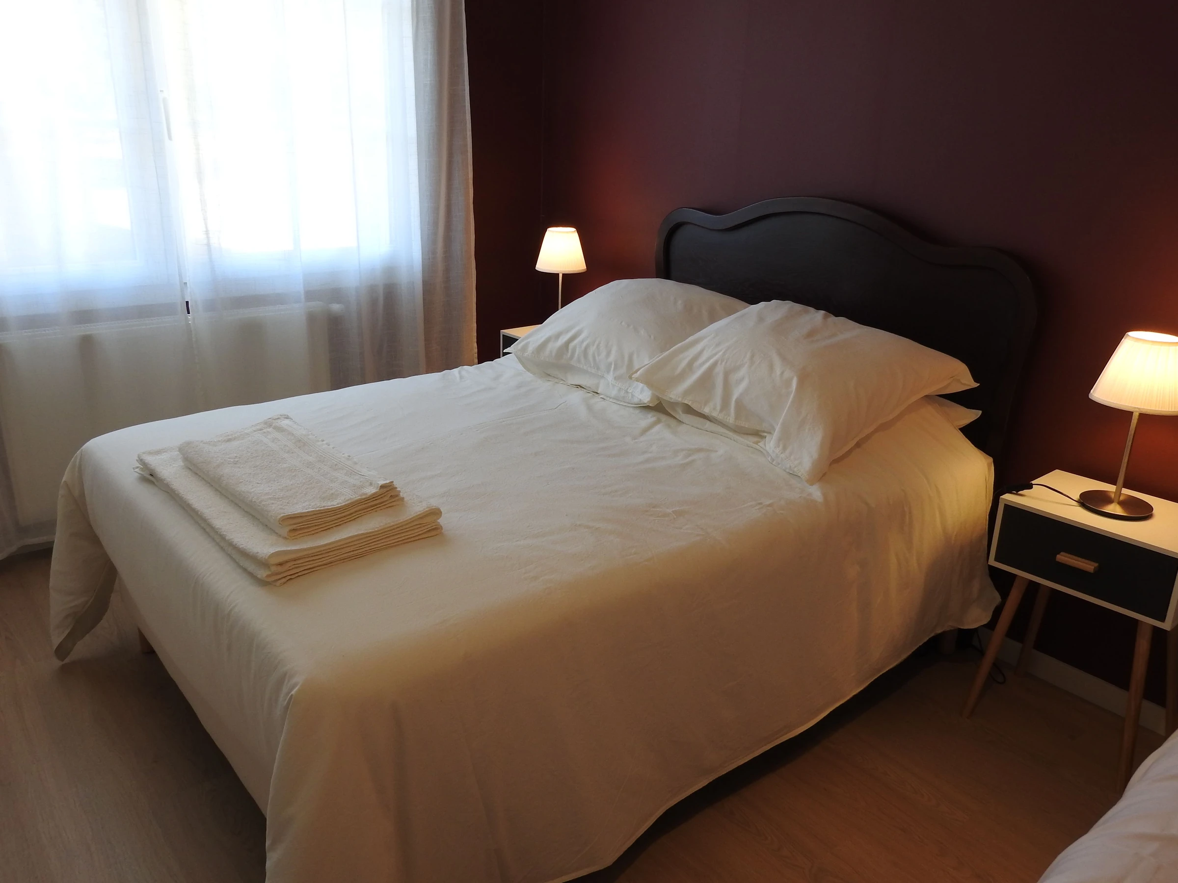 Burgundy room: 22 m², 1 140×200 bed and two 90×190 beds.