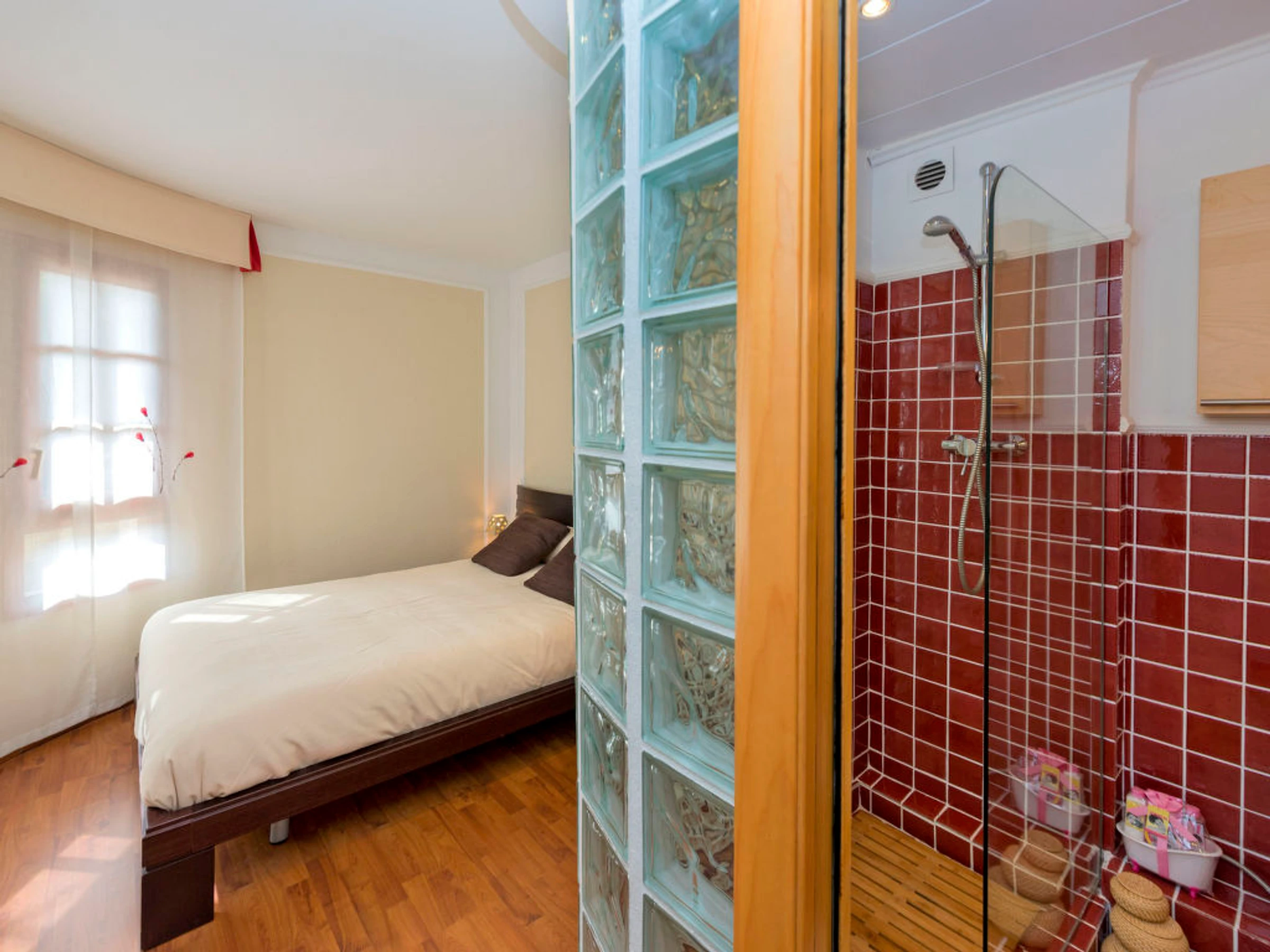 "Bonita", 4-room terraced house. Modern and cosy furnishings: living/dining room with 1 sofabed, dining table and TV. Kitchen (4 hot plates, oven, dishwasher, microwave, freezer) with dining table. Sep. WC. Upper floor: 1 room with 1 french bed and shower/WC. 1 room with 2 beds. 1 room with 1 bed. Bath/bidet/WC. Top floor: Studio. Exit to the terrace. Large patio 20 m2. Terrace furniture, deck chairs (2). Facilities: washing machine, baby cot. Reserved parking (1 car). Suitable for families. House number 7. [hidden]