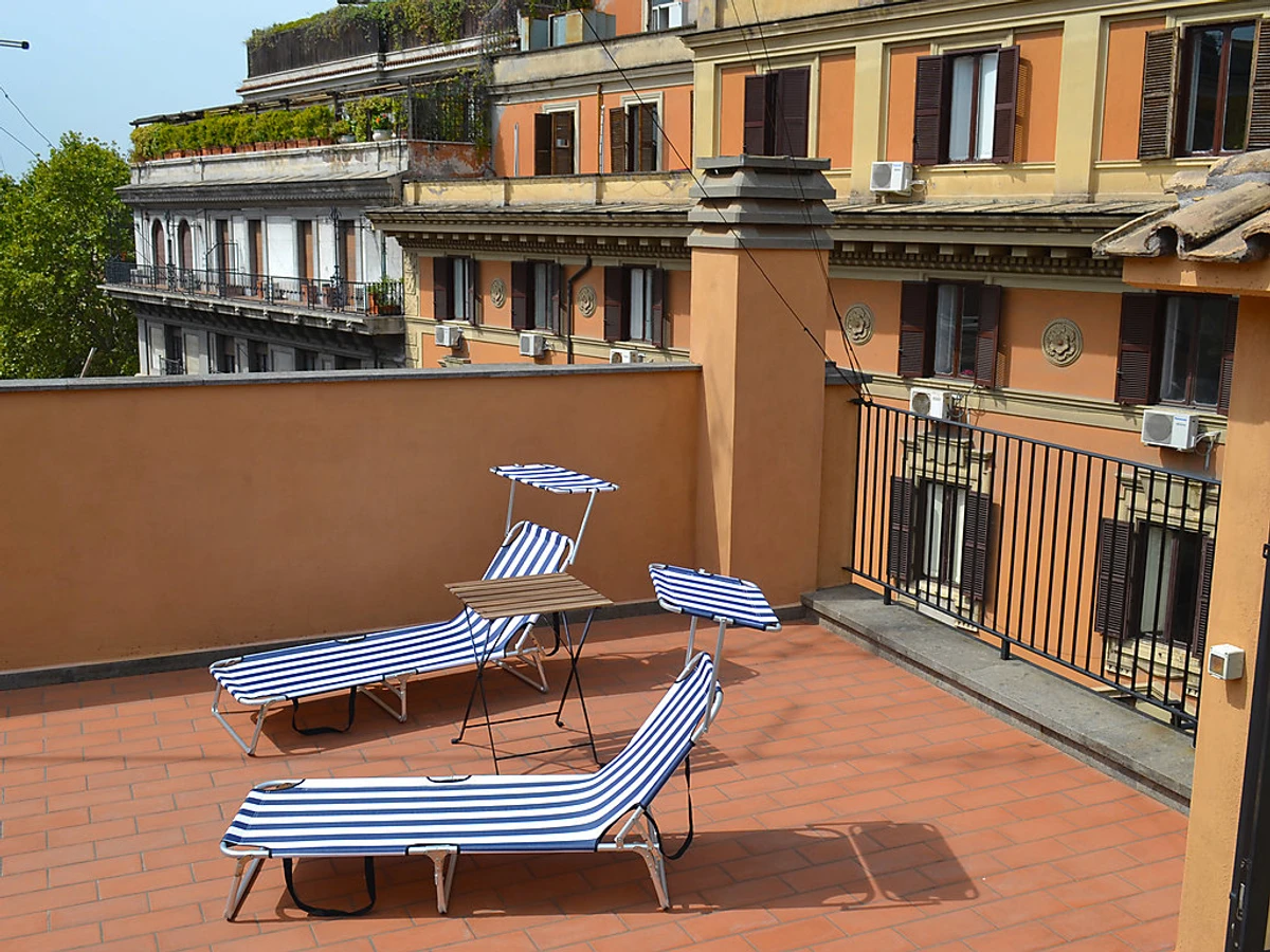 Very historical apartment block "Barberini Luxury Terrace", 5 storeys. In the centre of Roma, in the district Piazza di Spagna, in the heart of the city. In the house: lift, roof terrace. Shop 50 m, grocery 100 m, supermarket 500 m, restaurant 100 m, bar 50 m, bus stop "Barberini" 58 m, railway station "Termini" 1 km, underground station "Barberini" 150 m. Nearby attractions: Piazza di Spagna 800 m, Piazza del Popolo 1.5 km, Piazza Navona 2 km, Colosseo 2.5 km, Vaticano 3 km. Please note: car not advisable. On request: airport transfer to the holiday accommodation. The apartment is located in a zone with limited traffic.