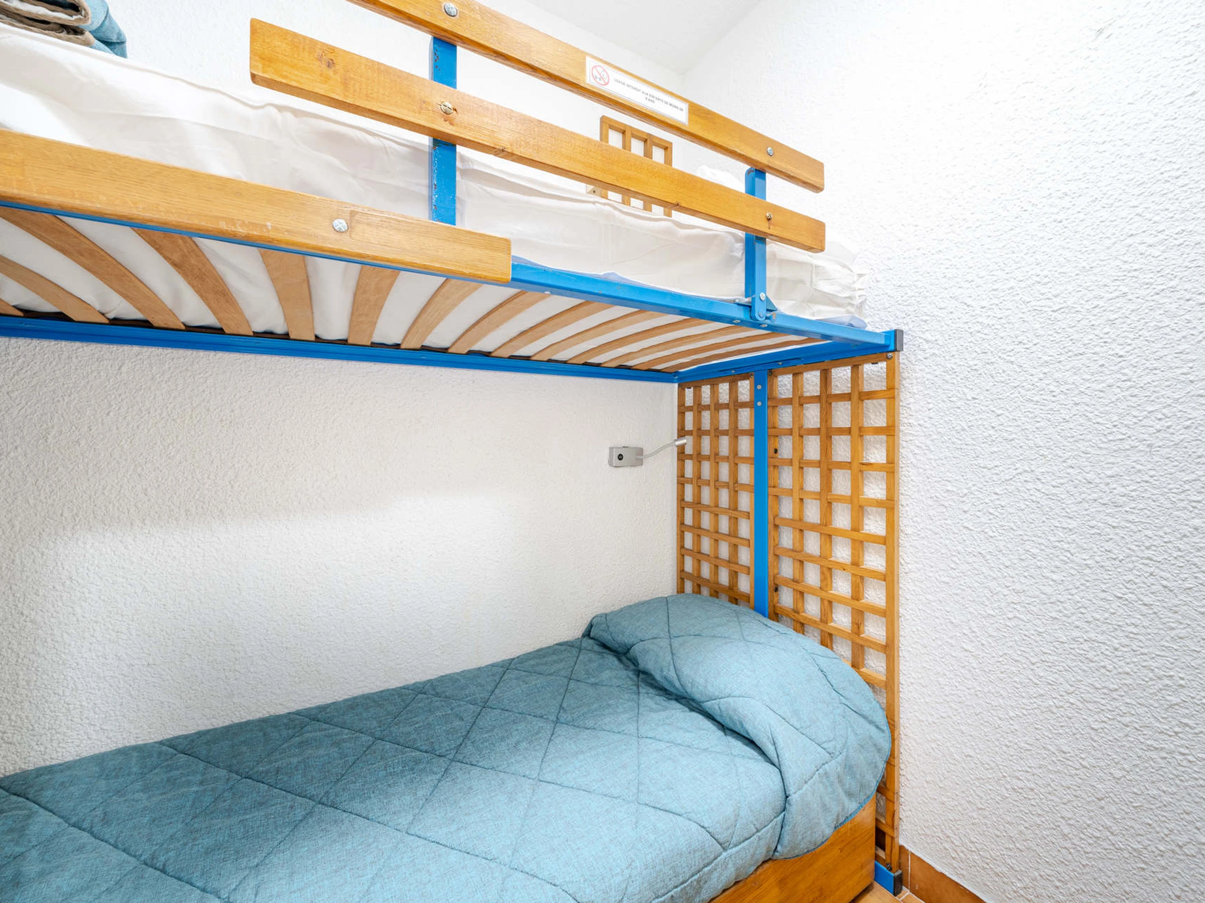 Bunk beds (top bunk) are not allowed for children under 6 years old.