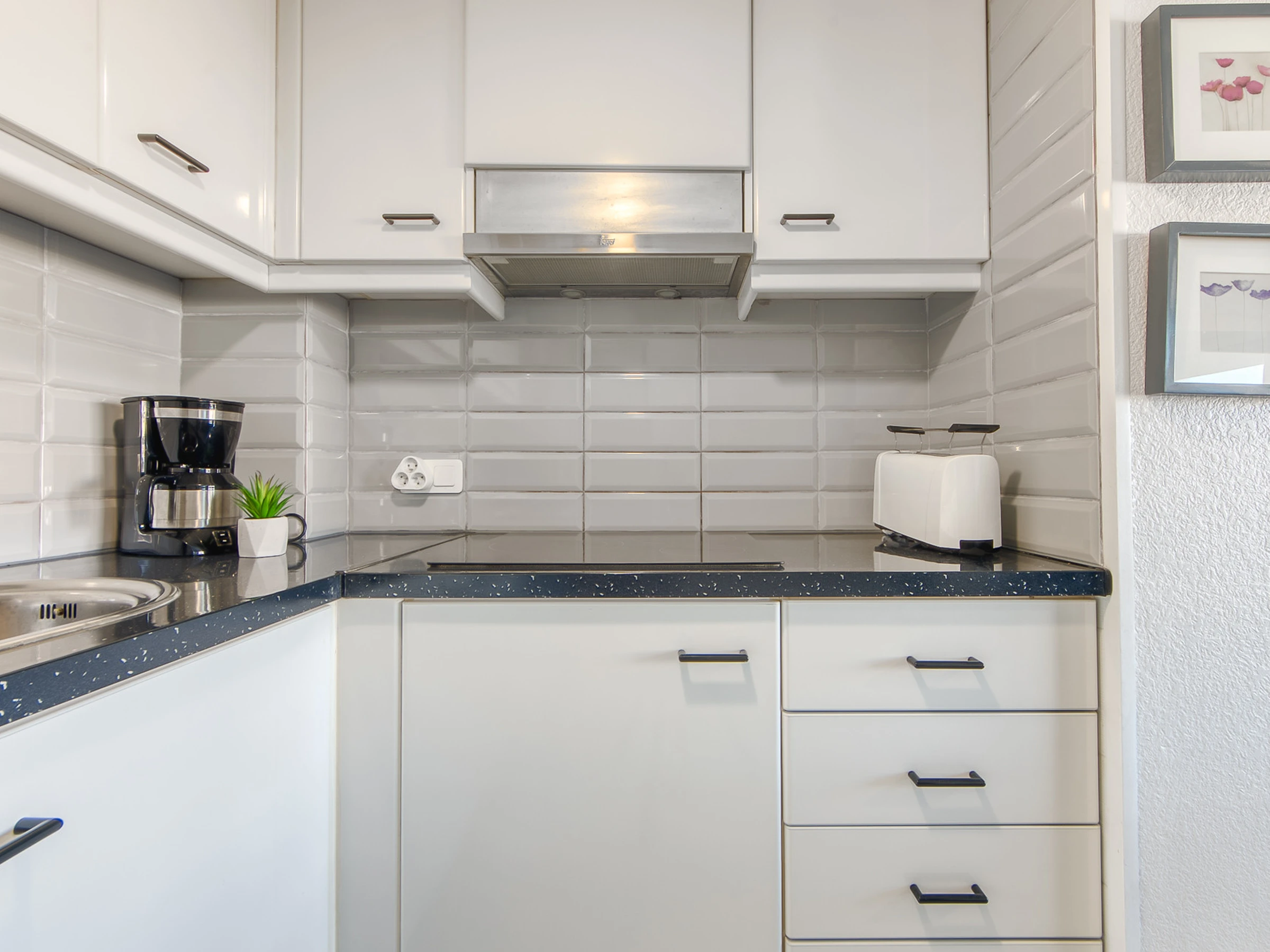 This cozy completely renovated apartment is suitable for 4 people and has an area of 40 m² + 8 m2 of terrace. The room is nice and comfortable. It is equipped with a double bed. The cozy and modern living-dining room has a double sofa bed, living room furniture, satellite TV and dining table with chairs. The open kitchen is equipped with ceramic hob, fridge, microwave, oven, washing machine, dishes, cutlery, kitchen utensils, coffee maker. There is a bathroom with shower.