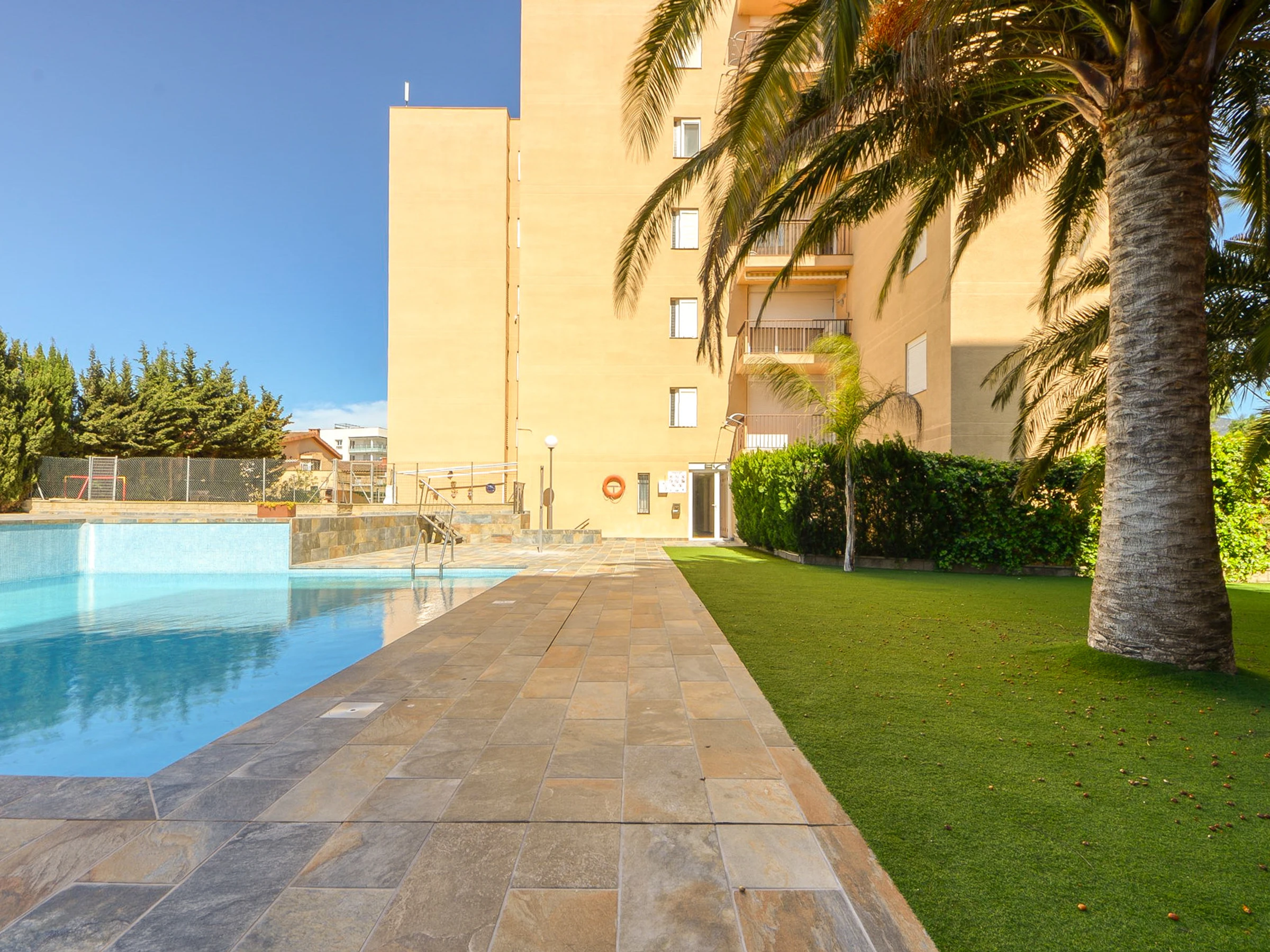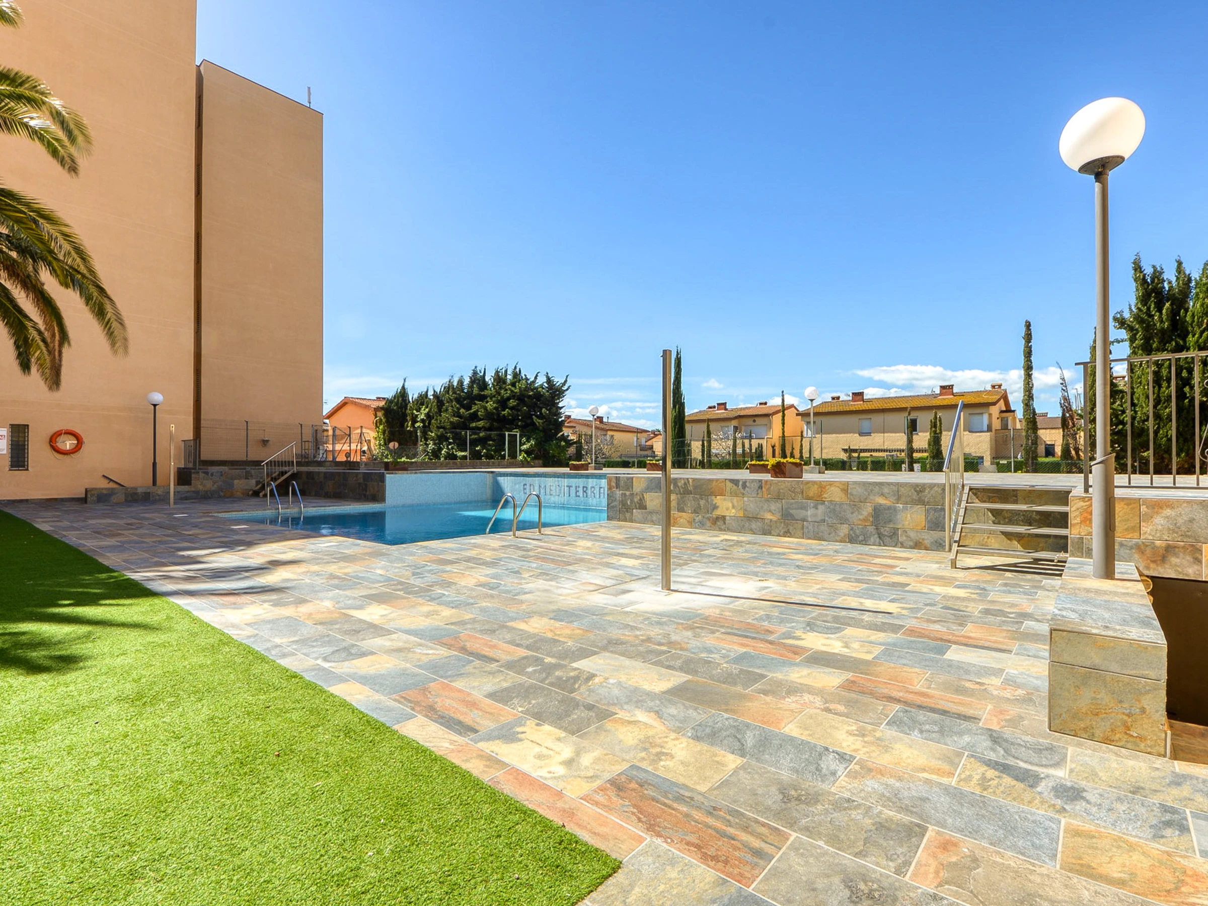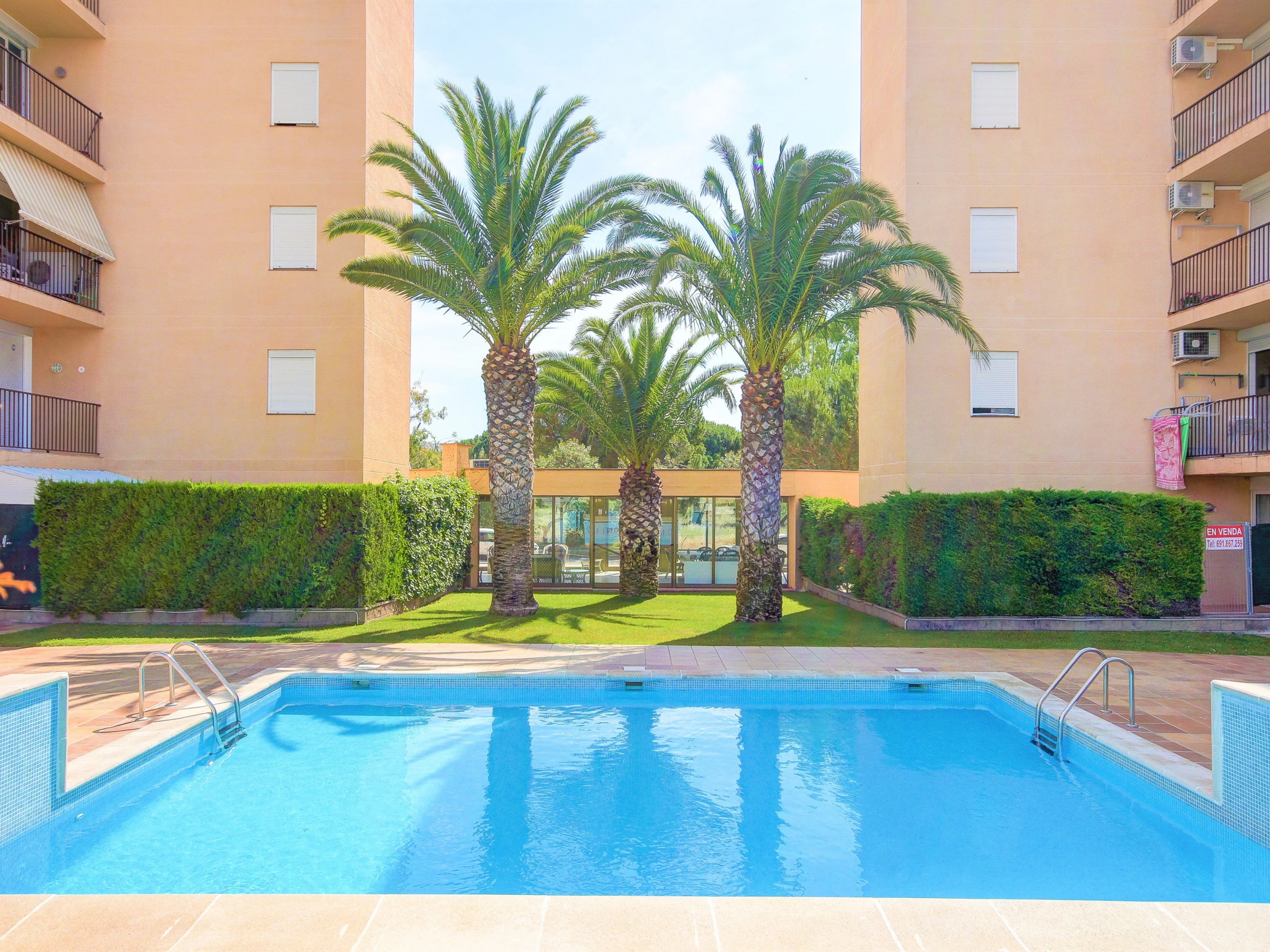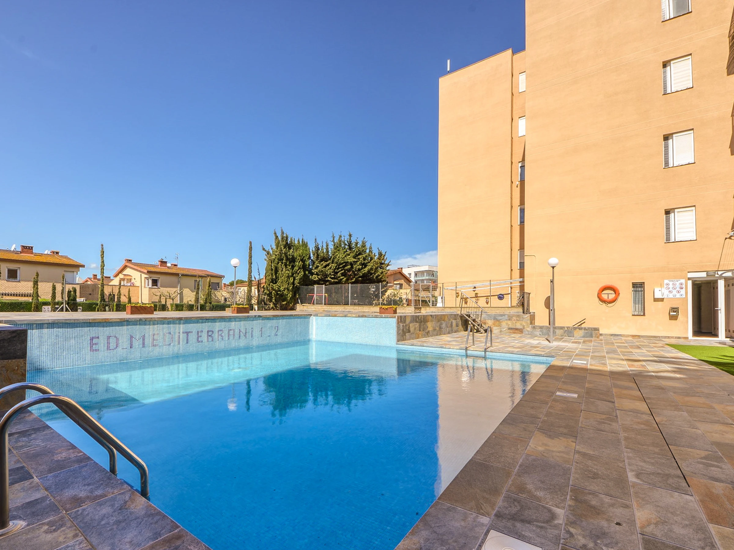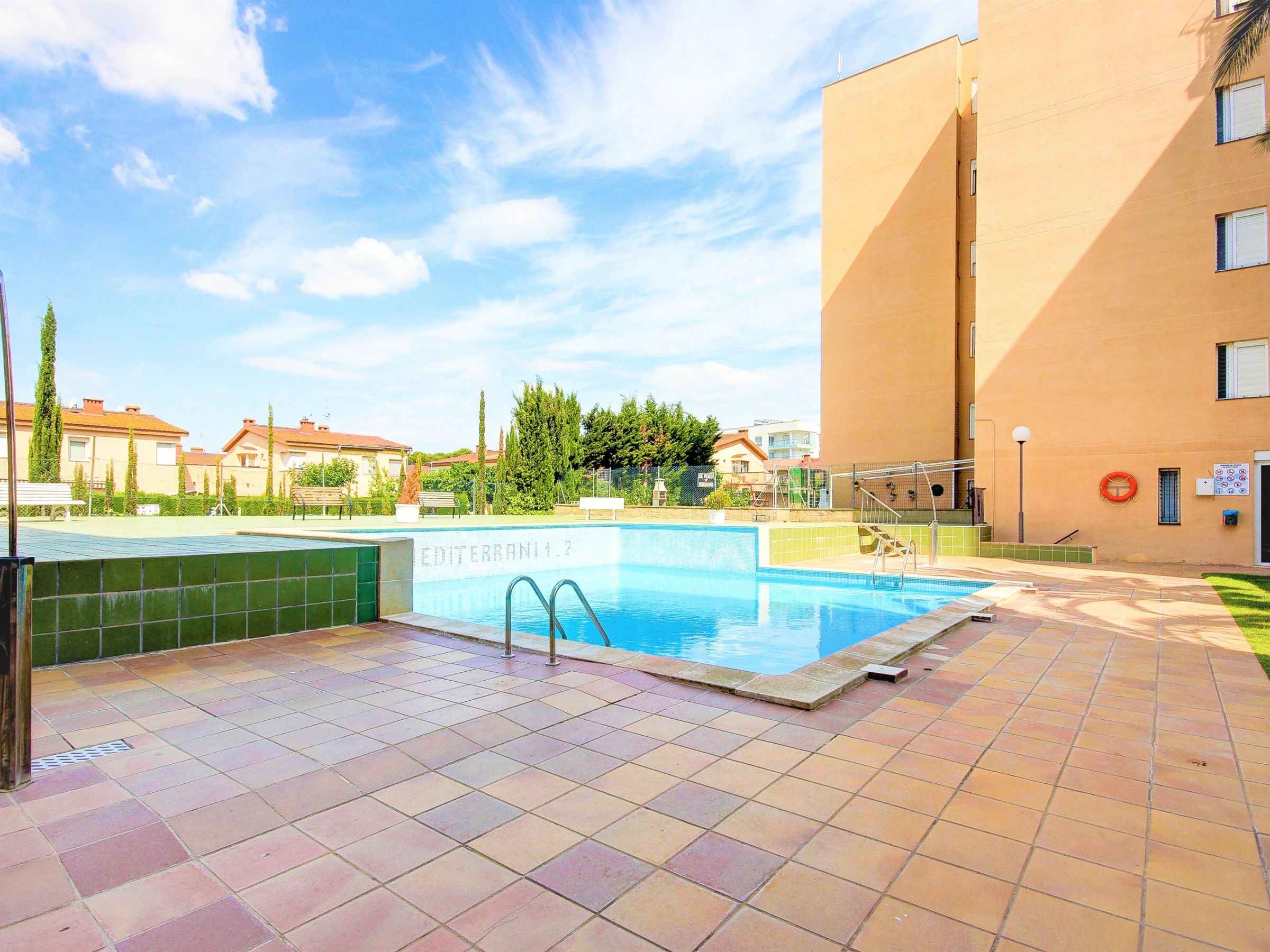 Enjoy the relaxing views of the pool from this bright and well-lit accommodation. Amenities include a lift, garden, terrace furniture where you can enjoy the fresh air and peaceful moments. Dive into the communal pool to cool off and relax on sunny days. The private outdoor parking in the same building adds an extra layer of convenience.