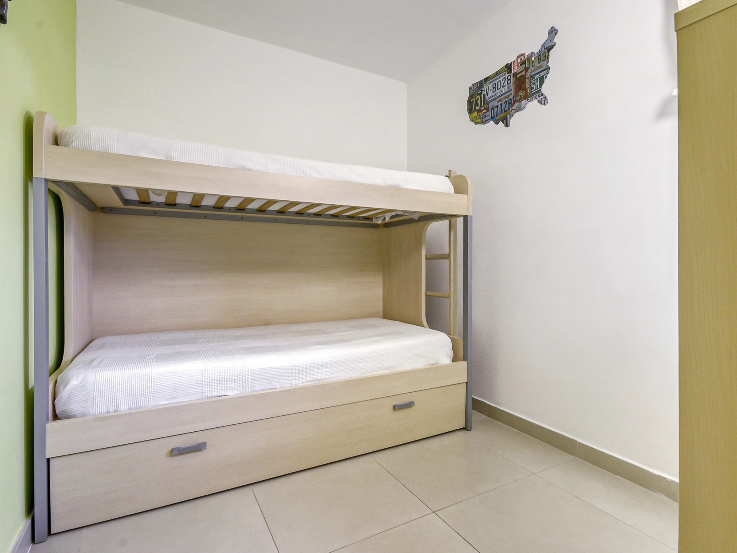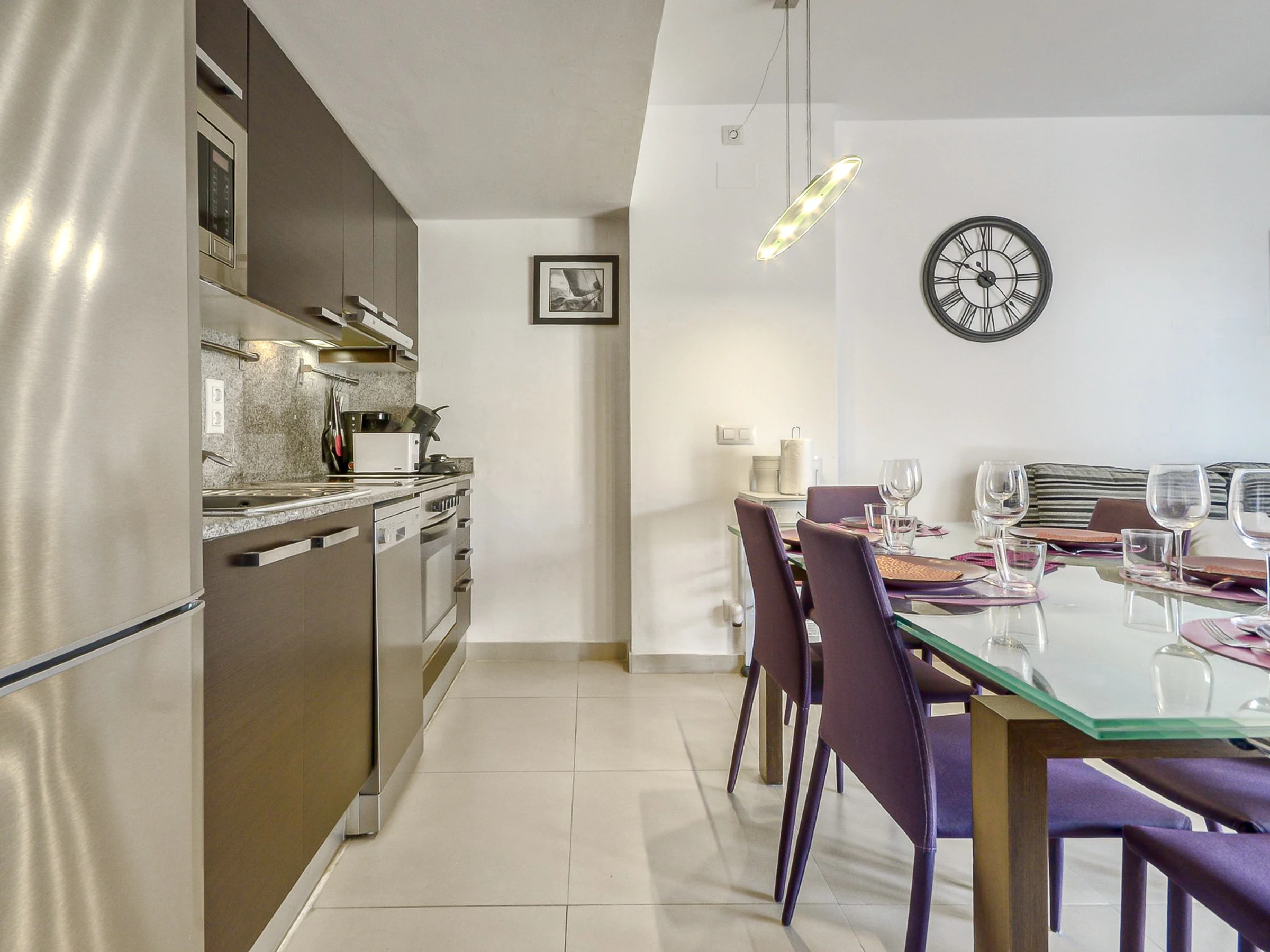 This cozy newly built two-bedroom apartment is suitable for 4 people and has an area of 53 m²+10m2 terrace. The rooms are nice and comfortable. One of them is equipped with a double bed, while the second is equipped with 2 0.90 beds. The cozy and modern living-dining room has a sofa, living room furniture, satellite television and dining table with chairs. The open kitchen is equipped with a ceramic hob, refrigerator, microwave, oven, washing machine, dishwasher, dishes, cutlery, kitchen utensils, coffee maker. There is a bathroom with shower. In addition, the accommodation is equipped with the following facilities: elevator, terrace furniture, iron, air conditioning, communal pool, private covered parking in the same building.