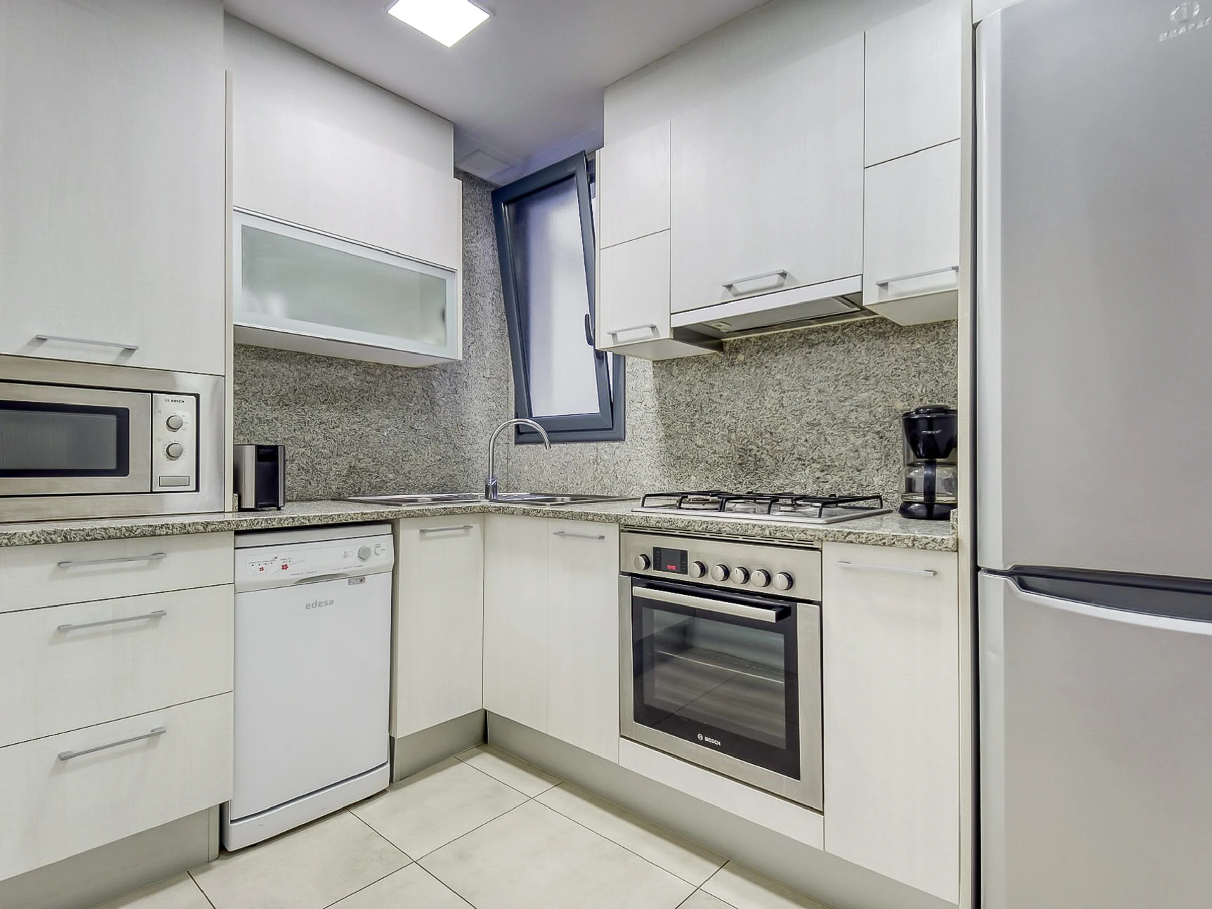 Very modern and fully equipped kitchen: ceramic hob, oven, microwave, washing machine, dishwasher, coffee maker, toaster, fridge, freezer, and all the utensils in the cabinets necessary for cooking and eating (pans, pots..........dishes , spoons...)