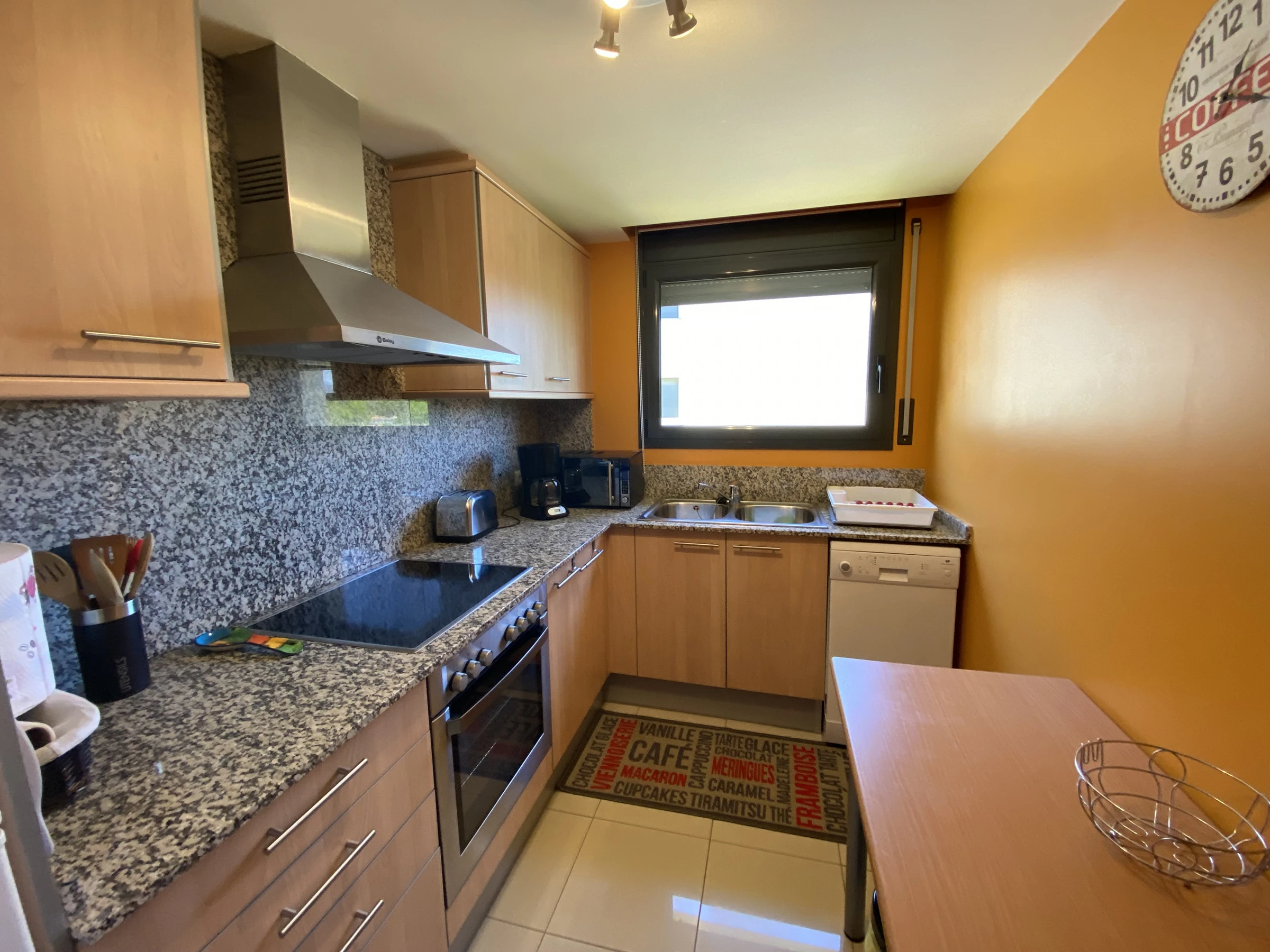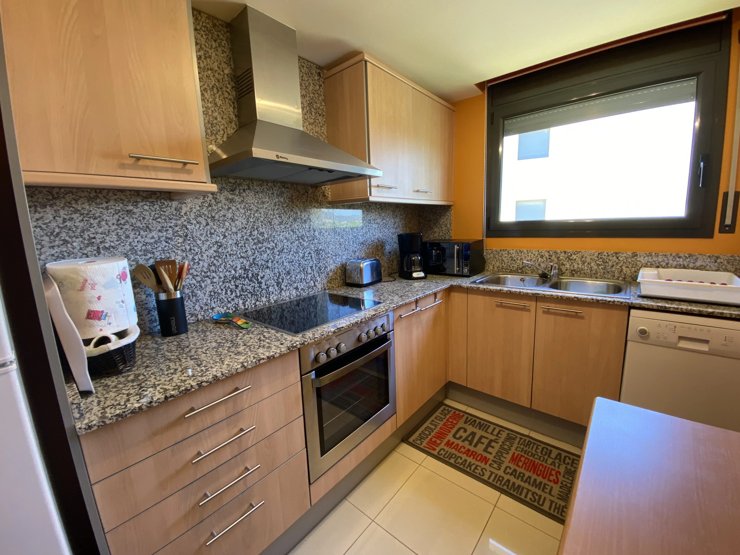 The independent kitchen, of hotplate of glass ceramics, is equipped with refrigerator, microwave, oven, freezer, dishwasher, dishes/cutlery, kitchen utensils, coffee machine and toaster.