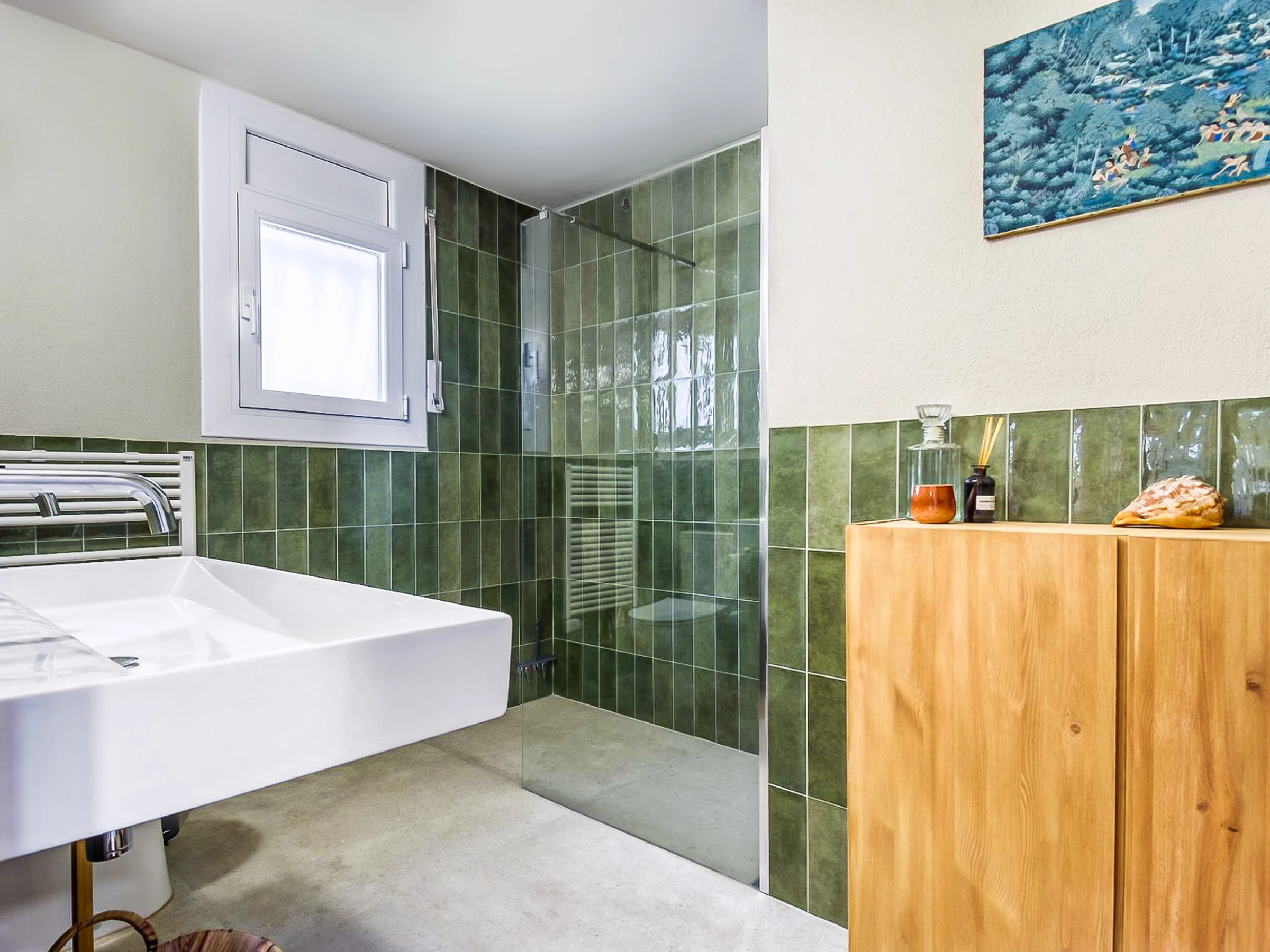 The modern and spacious kitchen is fully equipped with a microwave, dishwasher, washing machine, coffee maker, toaster, fridge, freezer and all the utensils you need to cook and eat, such as plates and cutlery. Everything is decorated with great taste and attention to detail so that you can enjoy your stay to the fullest. It's great to know that there are ceiling fans throughout the accommodation, both in the living room and in the bedrooms. Ceiling fans are a great convenience for keeping things cool and comfortable, especially on hot days. This will surely make the stay at the accommodation even more comfortable for guests