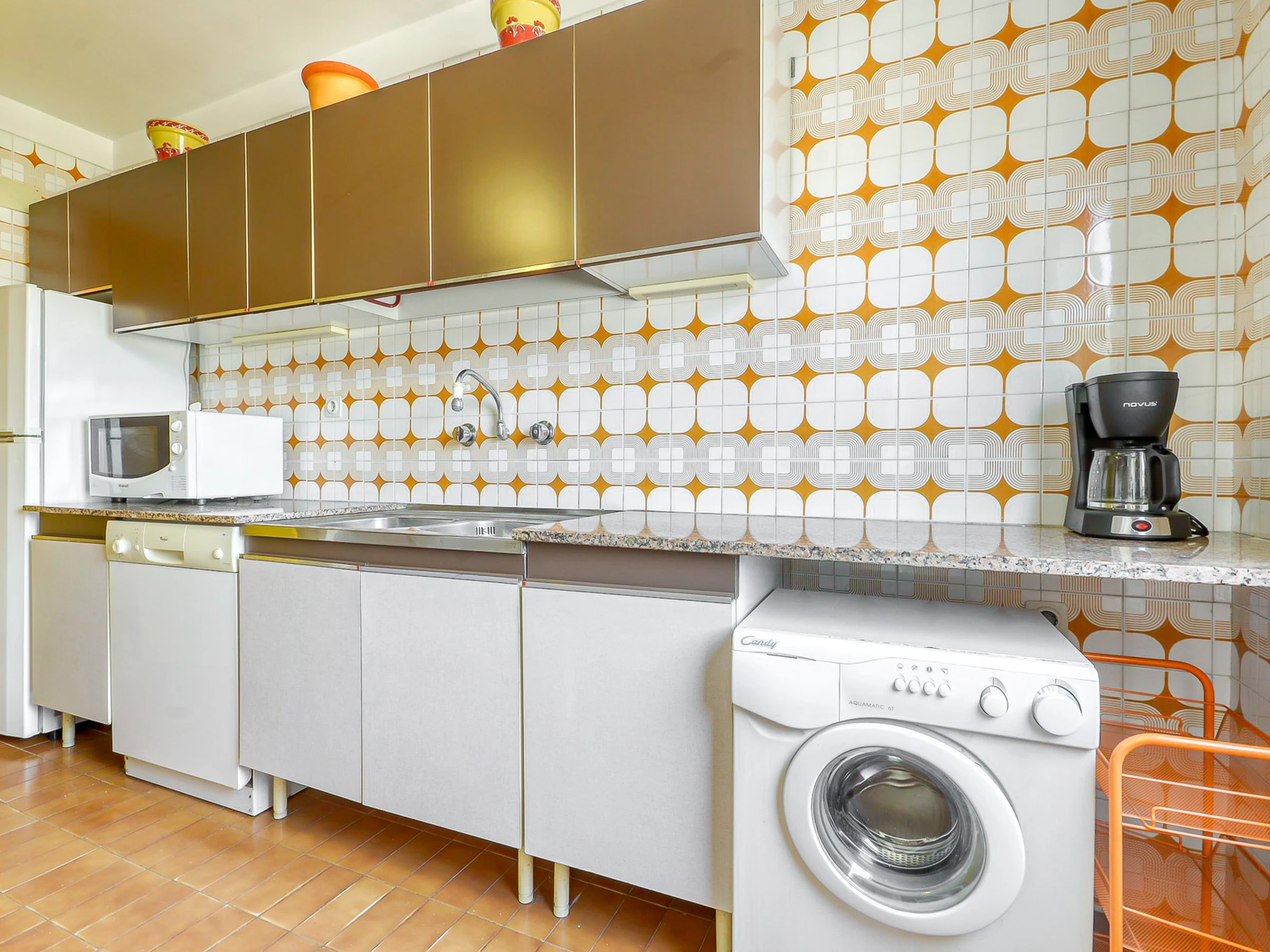 The independent kitchen is equipped with all the modern appliances you might need, including refrigerator, microwave, oven, freezer, washing machine, dishwasher, tableware, cutlery, kitchen utensils, and coffee maker.