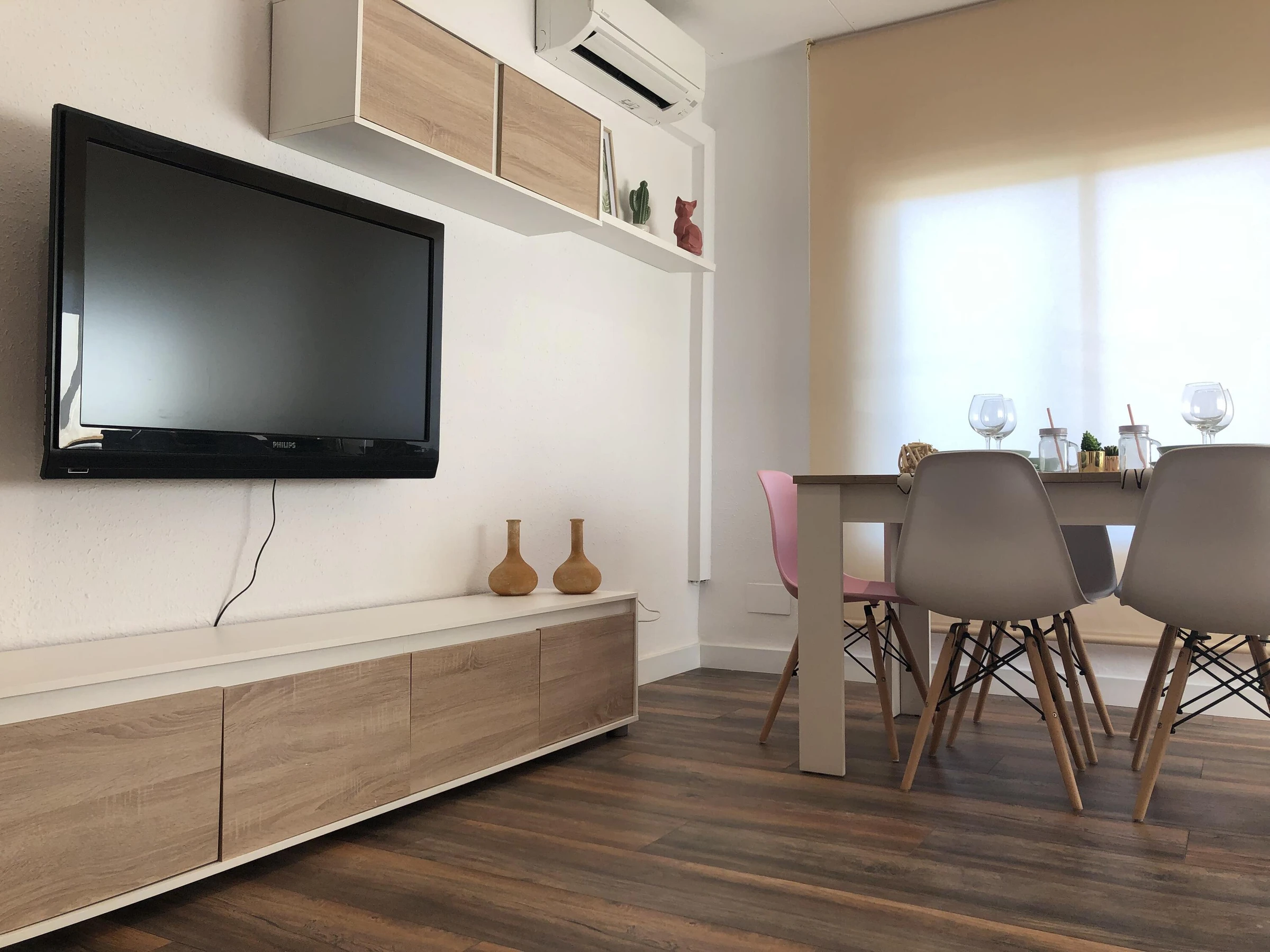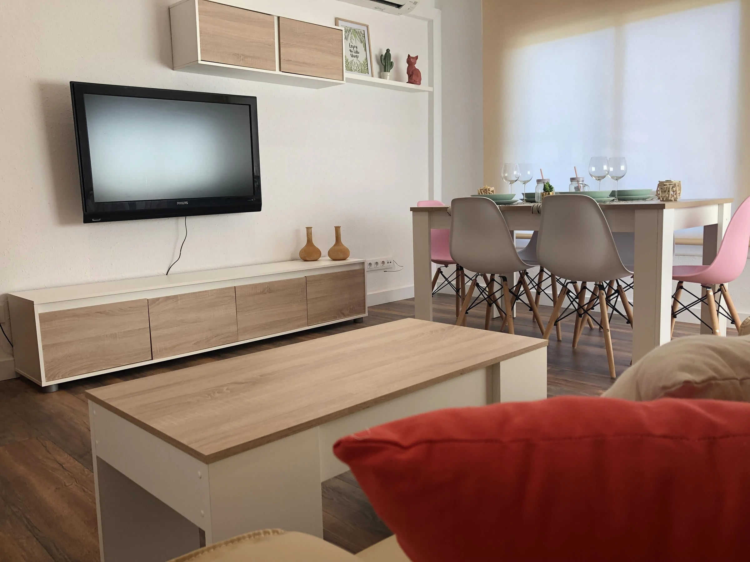 Discover this sophisticated fully renovated apartment, designed to offer an elegant and comfortable stay in a quiet residential area of Roses — perfect for enjoying the Mediterranean lifestyle with complete privacy, with access to a complex with communal swimming pools, padel and tennis courts. The property features a bright and functional layout: • Living area: spacious and light-filled living–dining room with direct access to a pleasantprivate terrace, ideal for outdoor breakfasts, relaxing moments, or peaceful evenings. • Fully equipped independent kitchen, modern and practical, with all appliances and utensils required for a worry-free stay. • Sleeping area: two carefully designed double bedrooms ensuring comfort and tranquility. • Contemporary bathroom featuring a stylish walk-in Italian shower and modern finishes. The apartment is designed for year-round comfort, offering air conditioning, heating, double-glazed windows, and quality furnishings, combining style and functionality throughout. Located in a peaceful residential setting with easy parking and just minutes from beaches, coves, and local amenities, this property is ideal for relaxing getaways or exploring the natural beauty and gastronomy of the Costa Brava. A refined retreat where design, comfort, and location come together to create a memorable stay.