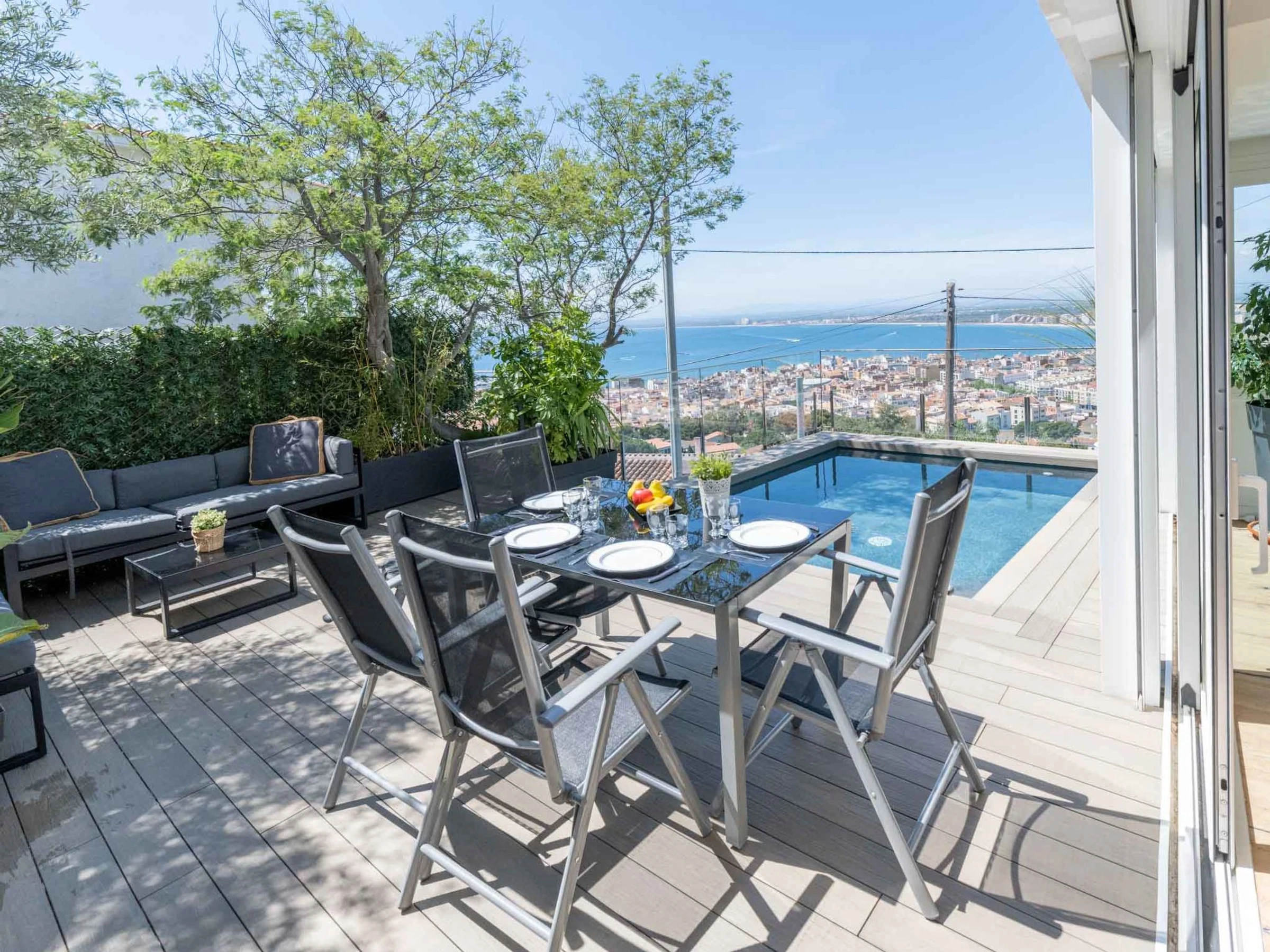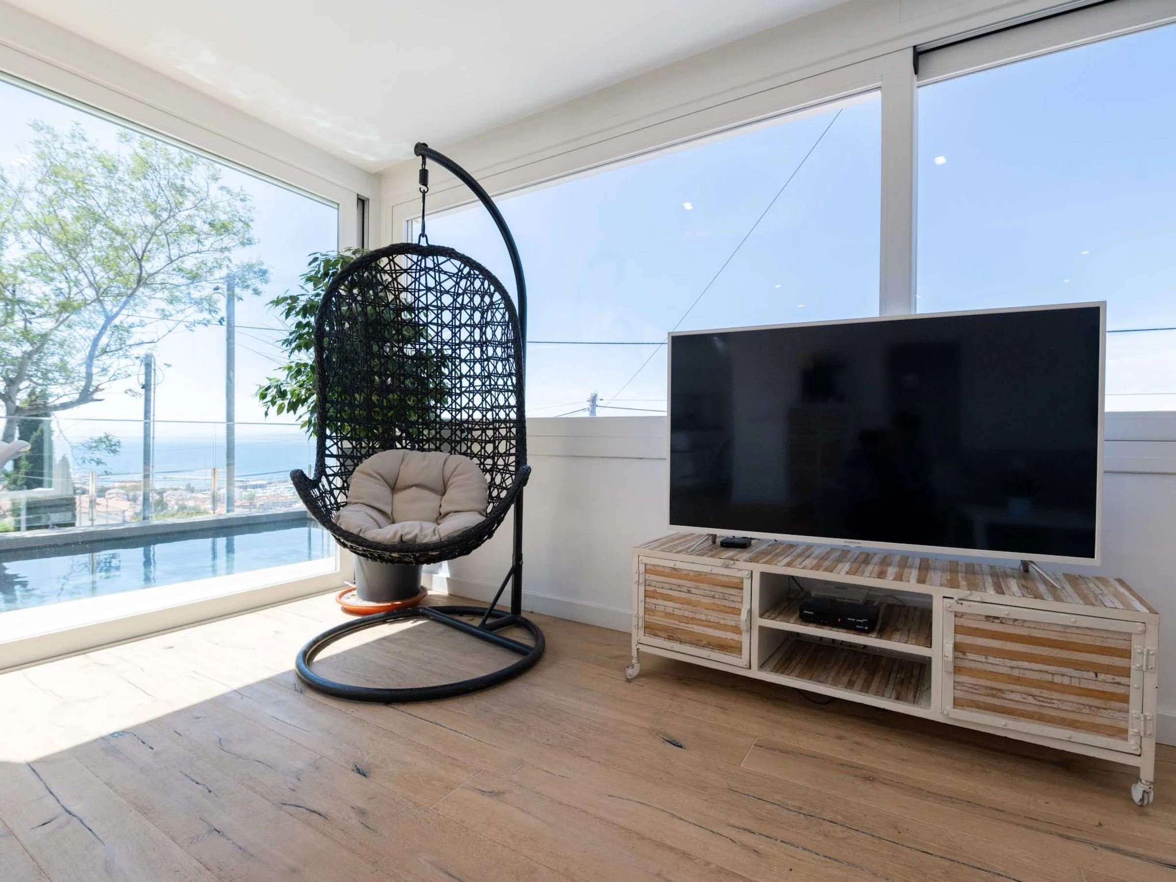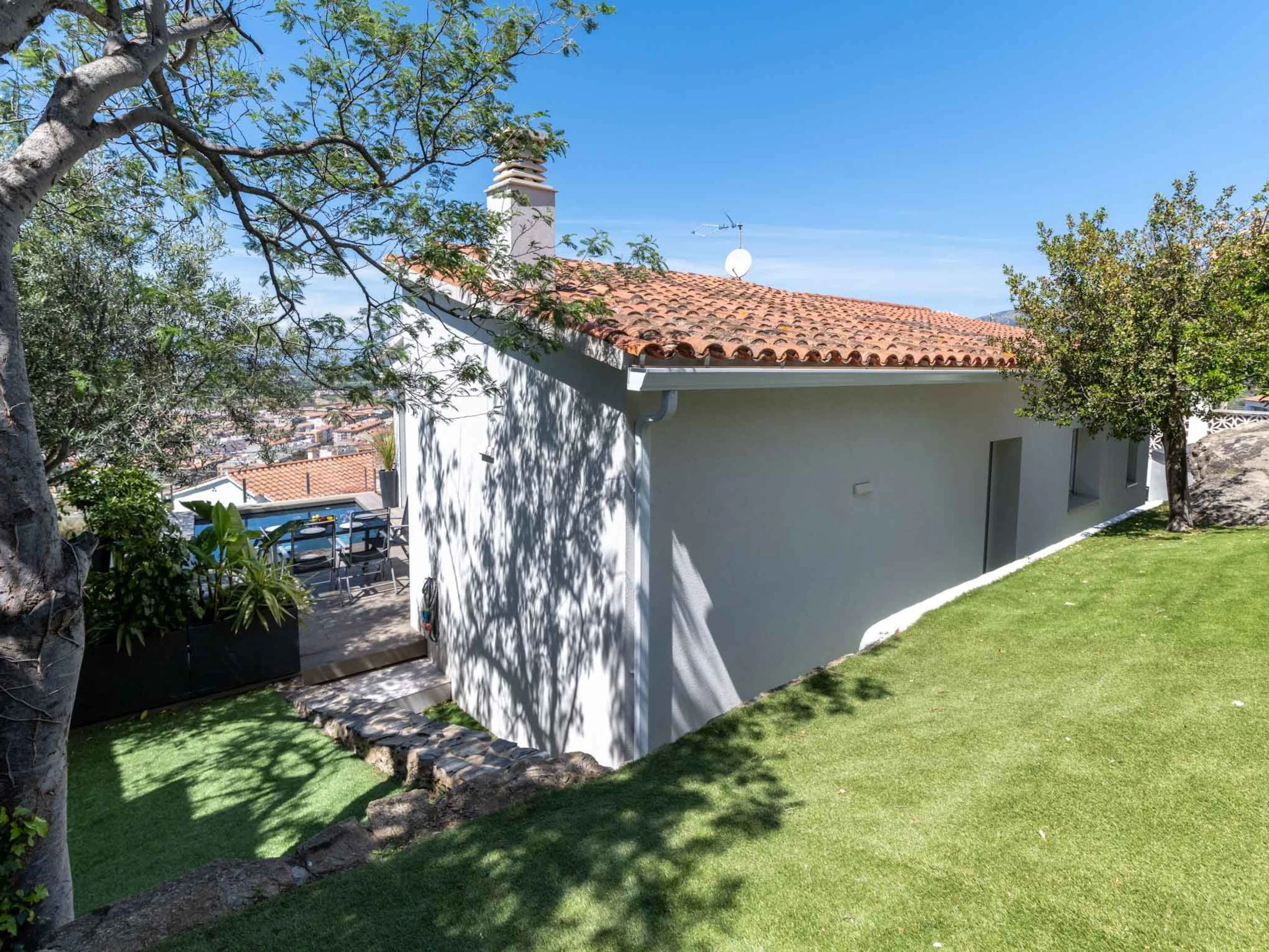 4-room villa 140 m2. Spacious and bright, fully renovated, modern furnishings: living/dining room with dining table and satellite TV. Exit to the patio, to the swimming pool, south facing position and west facing position. 1 open room with 1 double wall-trunk bed (140 cm, length 190 cm). 1 room with 1 french bed (160 cm, length 190 cm), shower/WC, air conditioning and forced-air heating. 1 room with 1 french bed (160 cm, length 190 cm), bath/WC, air conditioning and forced-air heating. Open kitchen (oven, dishwasher, 4 induction hot plates, toaster, kettle, microwave, freezer, electric coffee machine). Patio. Terrace furniture. Marvellous view of the sea and the mountains. Facilities: washing machine. Internet (WiFi, free). Garage (1 car). Please note: non-smoking house. TV only FR. [hidden] // Reg. Nr.: ESFCTU000017019000136091000000000000000000[hidden]6