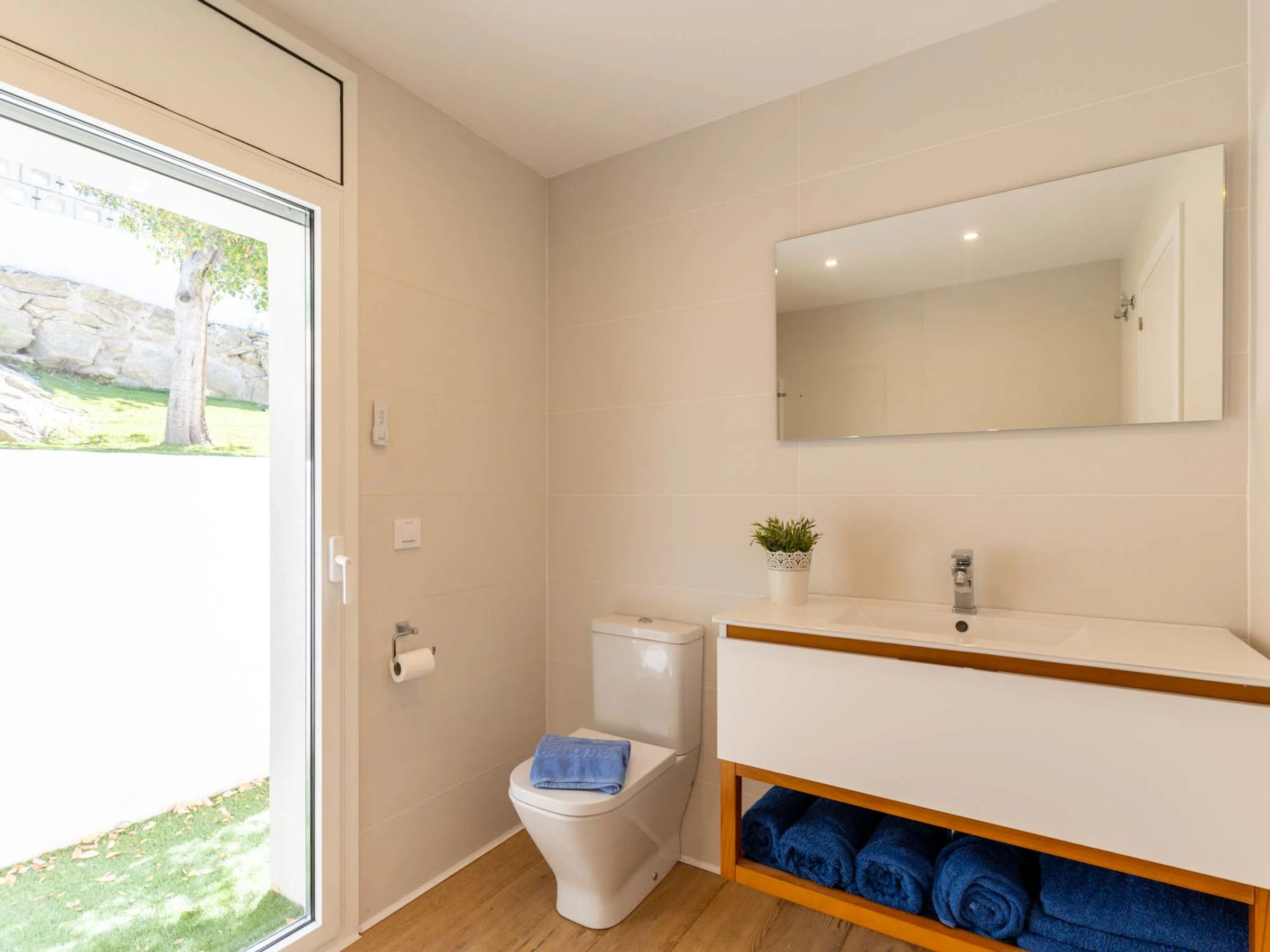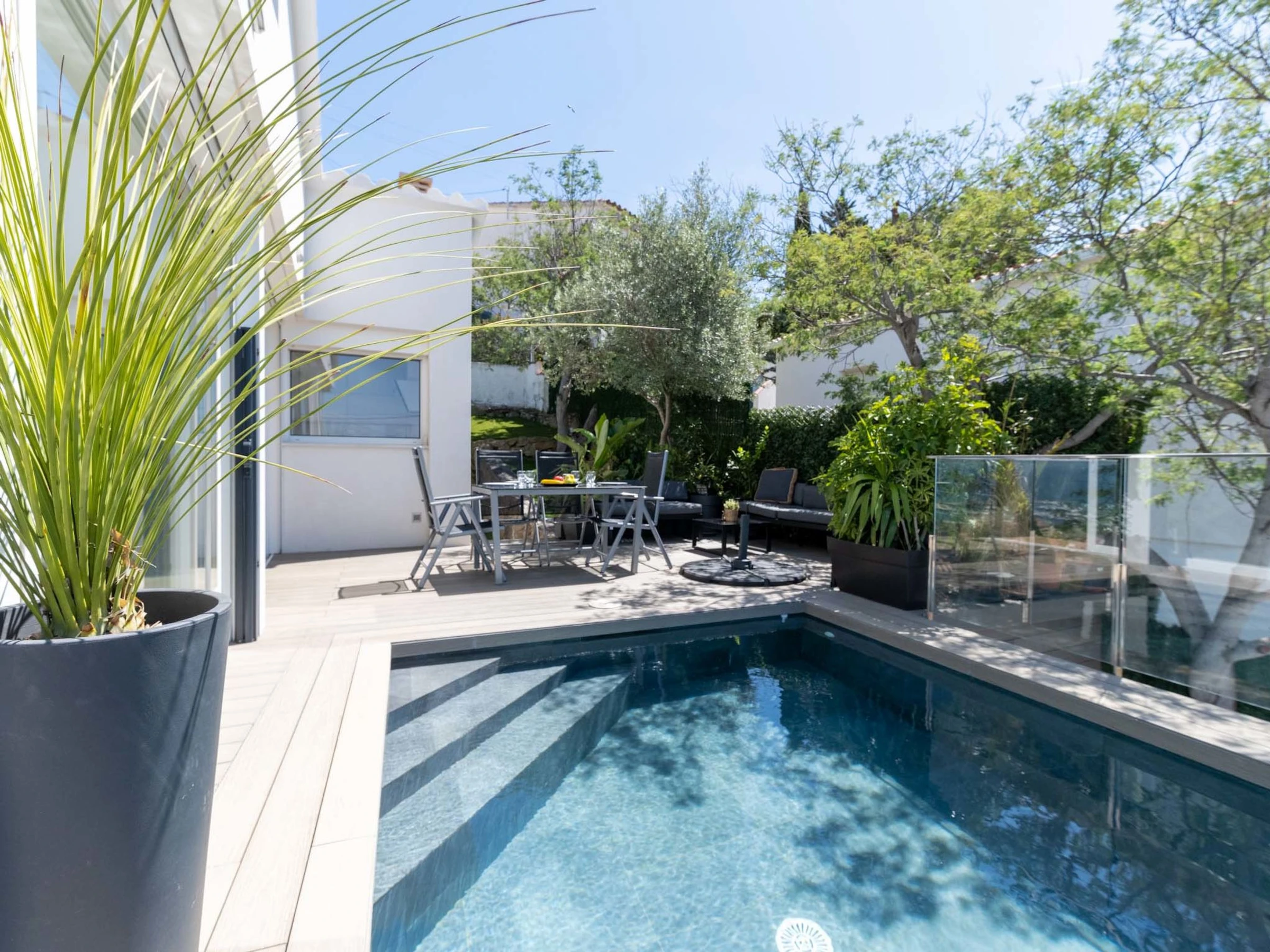 Els Grecs: Simple single-family house "Pitágoras", built in 2021. In the district of Els Grecs 2.2 km from the centre of Roses, in a quiet, sunny, elevated position on top of a hill, residential area (villas), 2 km from the sea, south-west facing position. Private: property with wildlife garden and flowers, swimming pool (4 x 3 m, depth 115 cm, seasonal availability: [hidden] - [hidden] Single garage. Supermarket 2.5 km, shopping centre 2.5 km, restaurant 500 m, bus stop 2.2 km, railway station "Figueres" 23 km, sandy beach 2 km, indoor swimming pool 3 km. Sports harbour 2 km, golf course (18 hole) 20 km, sailing school 2 km, tennis 3 km, minigolf 2.5 km, sports centre 3 km. Nearby attractions: Parque Acuático Aquabrava Roses 4 km, Aerodromo Empuriabrava 9 km, Atracción túnel del viento 9 km, Museo Dalí Figueres 23 km, Castillo y festival de Peralada 22 km, Monasterio Sant Pere de Rodes 22 km. Please note: car recommended. The owner does not accept any groups. The owner does not accept any youth groups. The keys‘ handover takes place by the agency in Roses.