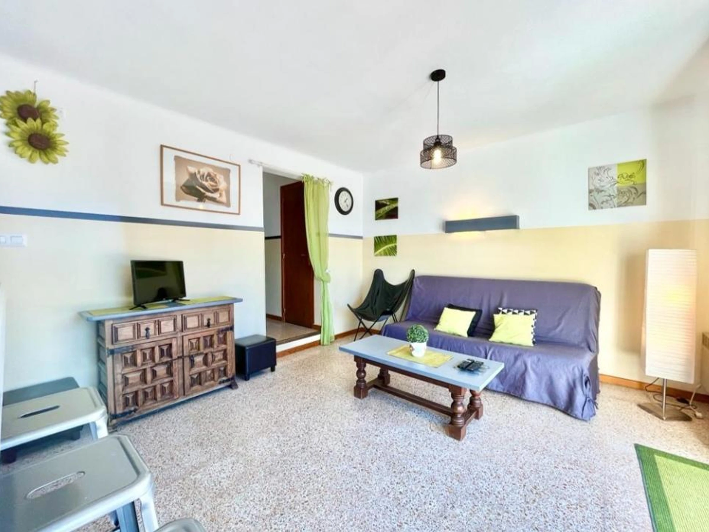 38m2 for 4 pers.: 1 bed x 1.40 + 1 bed 90 + sofa-bed. 15m2 terrace, private
