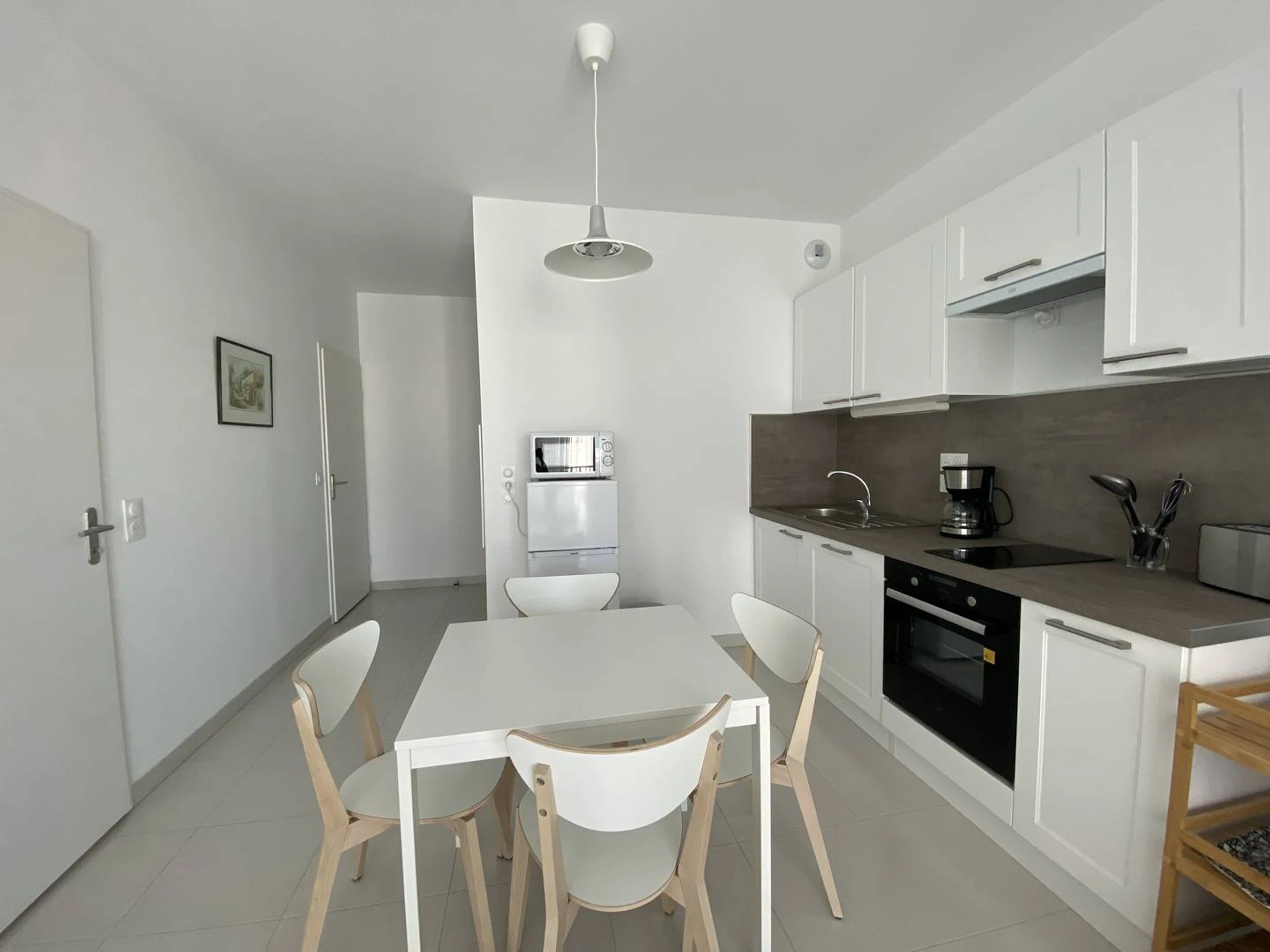 A comfortable 40 m² 2* apartment for a wonderful family vacation. Located 250 meters from Grande Conche Beach and close to the town center, this apartment, which can accommodate 3 people, features an entrance hall with a large closet, an open-plan, fully equipped kitchen (dishwasher, oven, microwave, refrigerator-freezer, 2-burner ceramic hob, extractor hood, kettle, toaster, coffee maker), a living room opening onto a balcony (140x190 sofa bed), flat-screen TV, a spacious 11 m² bedroom (140x190 bed, chest of drawers) opening onto a balcony, a beautiful en-suite bathroom (walk-in shower), vanity unit, and a separate toilet with washing machine.