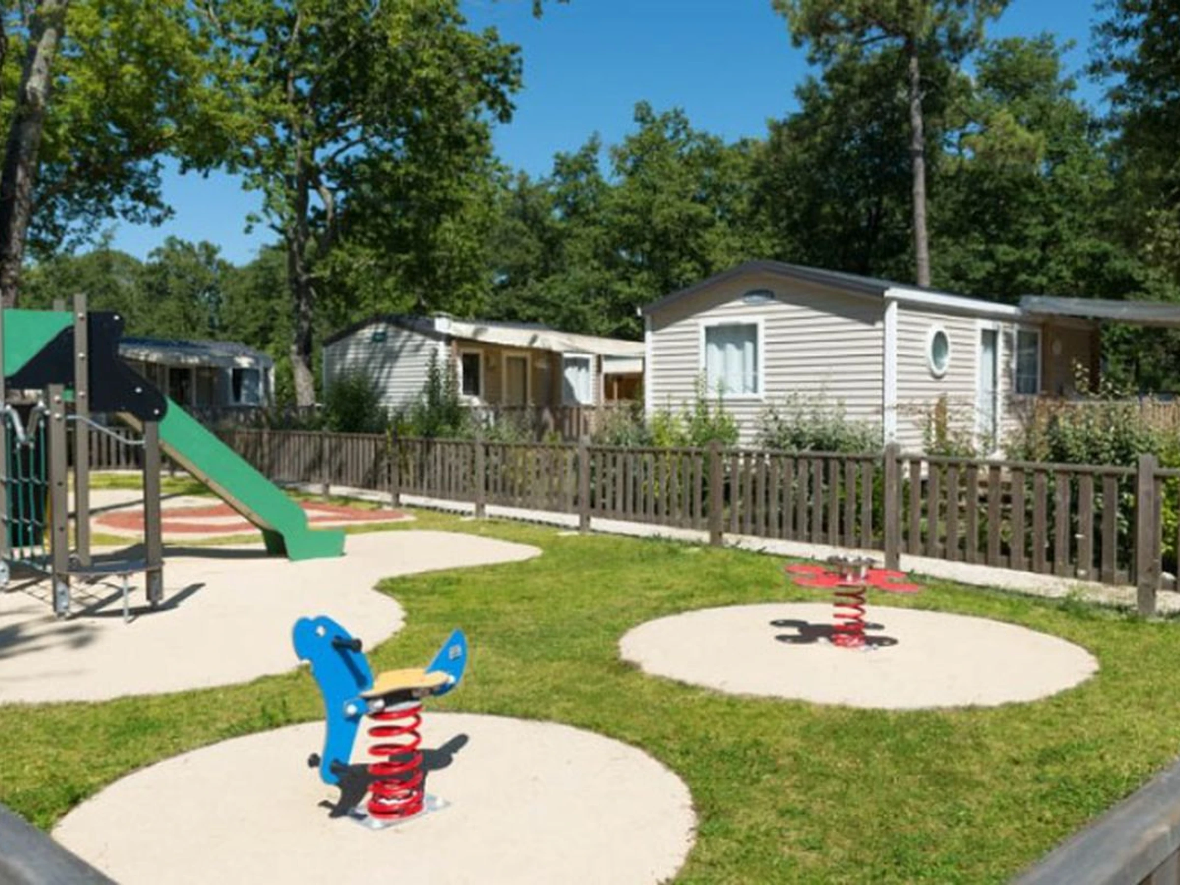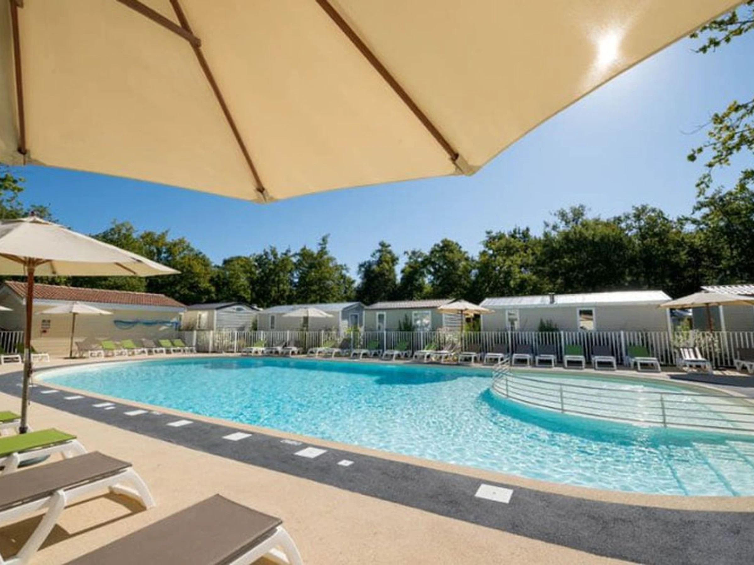 The 4-star Camping Les Chèvrefeuilles is located in Royan, in the Poitou-Charentes region. Situated less than 10km from the sea, Camping Les Chèvrefeuilles offers a pleasant holiday with quality amenities: supermarket/grocery store, entertainment, kids' club, swimming pool, etc. An ideal starting point for exploring the Poitou-Charentes region, you will be charmed by the beautiful landscapes and rich heritage. For your camping holiday, book your comfortable mobile home at Camping Les Chèvrefeuilles and enjoy guaranteed fun!