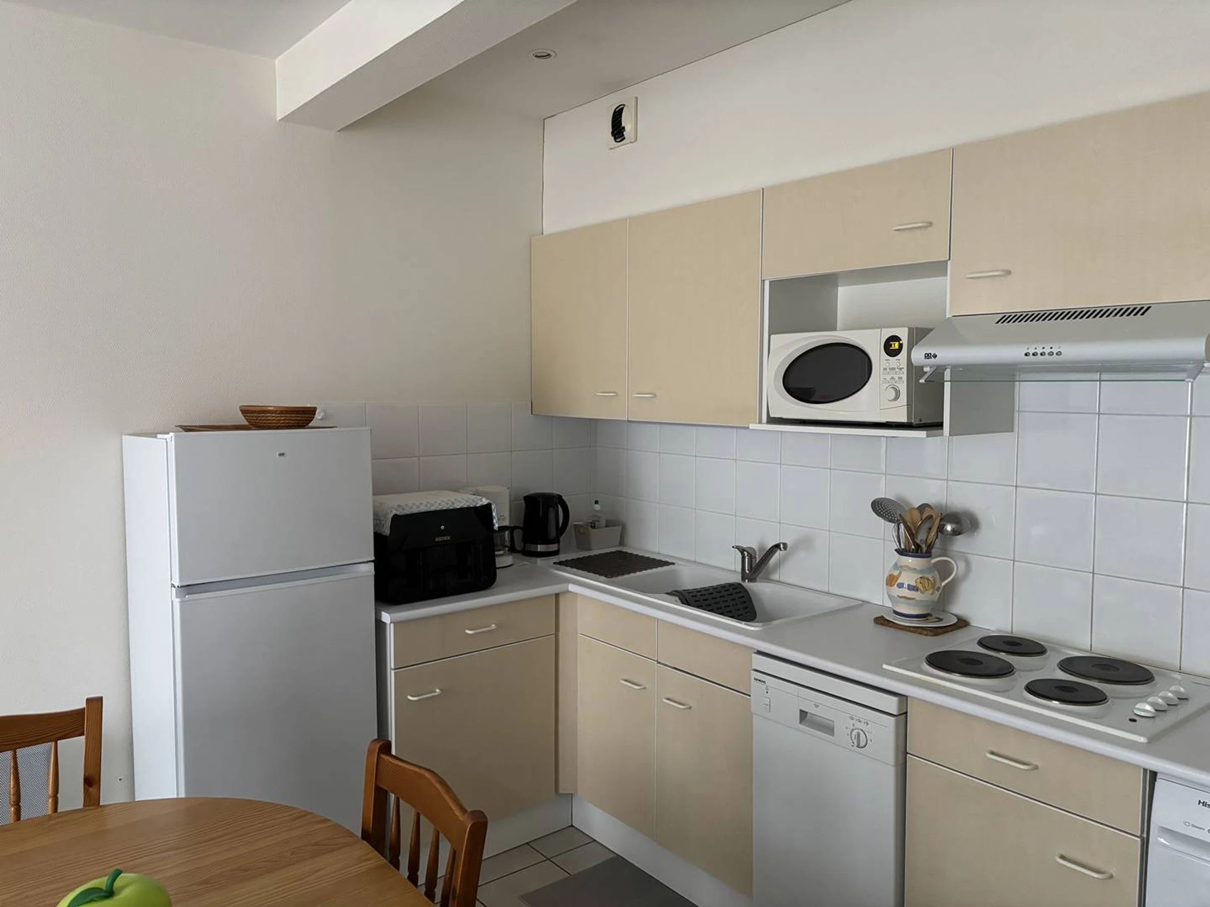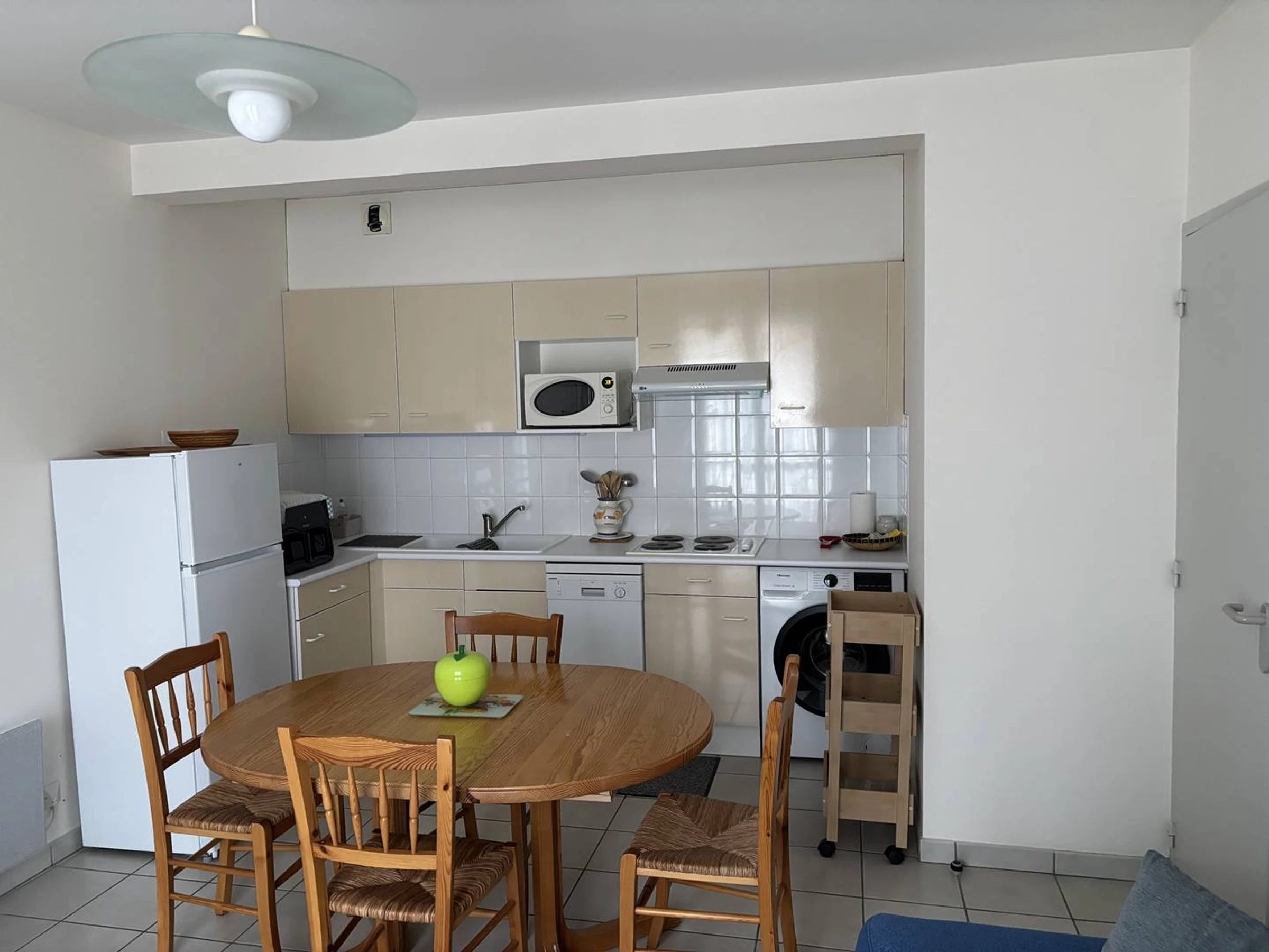 Beautiful apartment located in the heart of Royan on the 1st floor of a small, quiet, and secure building. This apartment comprises an entrance hall with storage unit, a shower room (with a small 10cm step), a separate toilet, a bedroom with a wardrobe (double bed 140x190cm), and a fully equipped kitchen (fridge-freezer, washing machine, dishwasher, microwave, kettle, filter coffee maker, toaster, air fryer, etc.) opening onto the living/dining room (flat-screen TV, sofa bed). A private parking space is provided. This apartment is perfect for a relaxing holiday with all shops and the beach nearby. Leave your car in the parking lot and explore everything on foot!