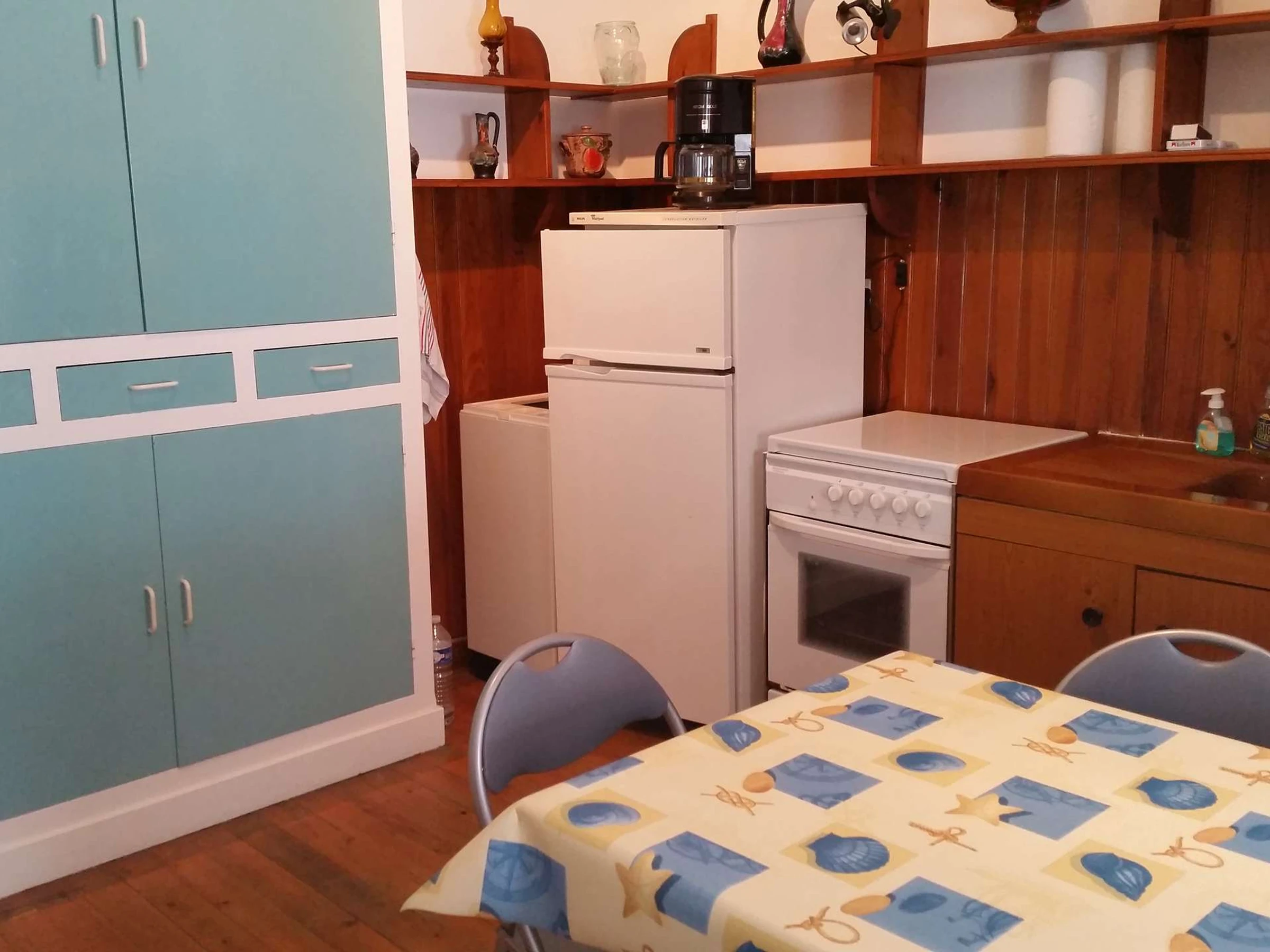 - a kitchen equipped with a gas store 4 gas fires, a refrigerator. part freezer, gas oven, sink, washing machine