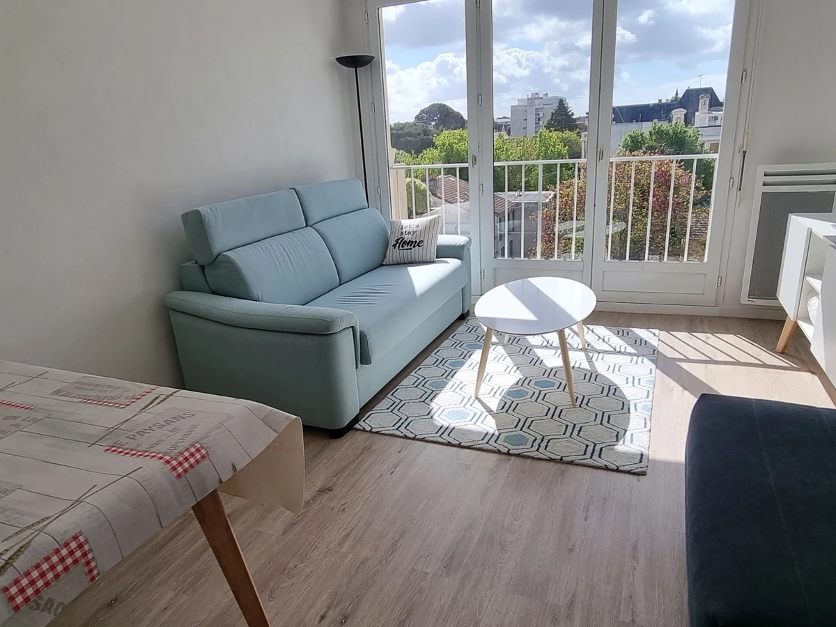 Charming 25 m² studio 50 m from the large sandy beach of Royan located on the 4th floor with elevator including an entrance/kitchenette, a living room with a double sofa bed and a single armchair bed, a bathroom/wc . A bicycle storage room. Possibility of end-of-stay cleaning (40 euros).