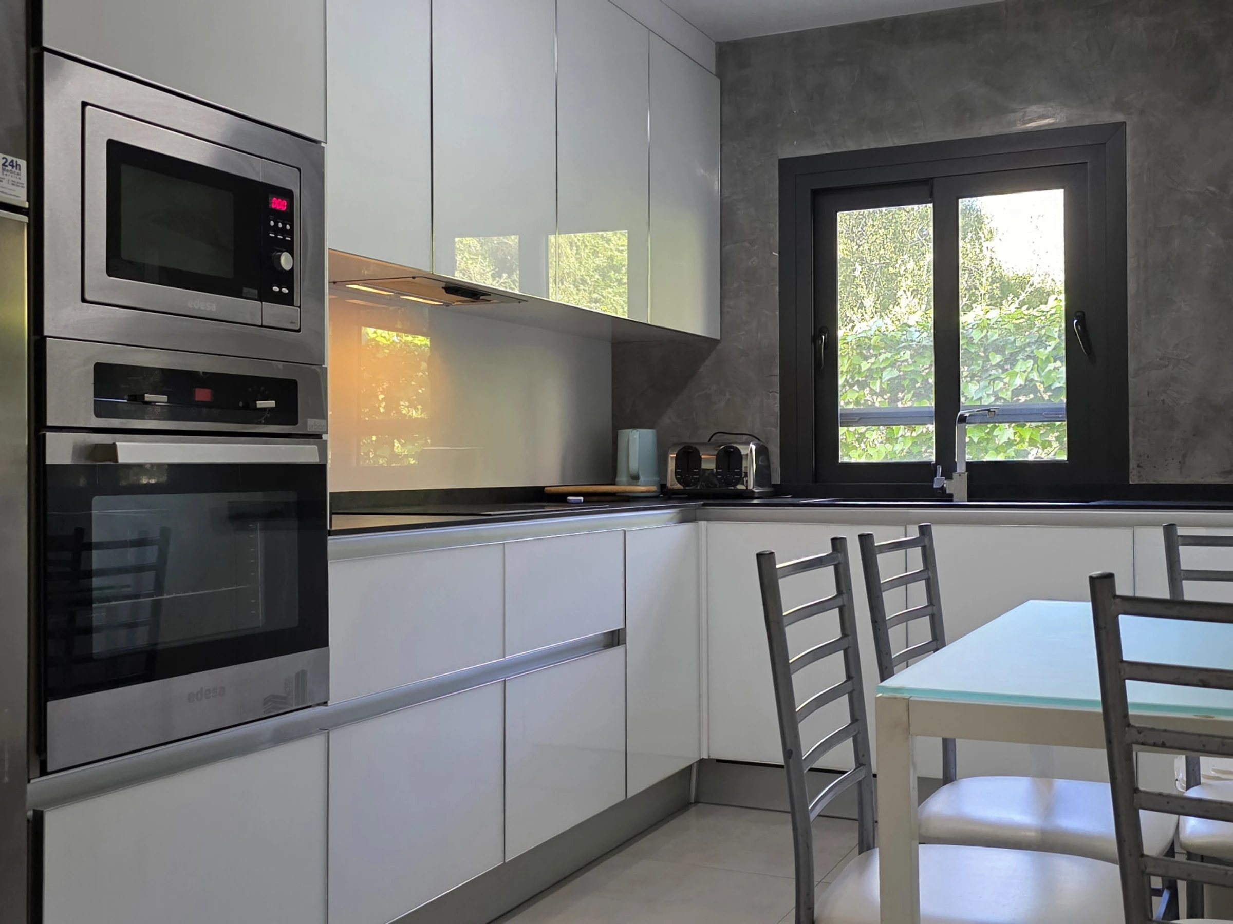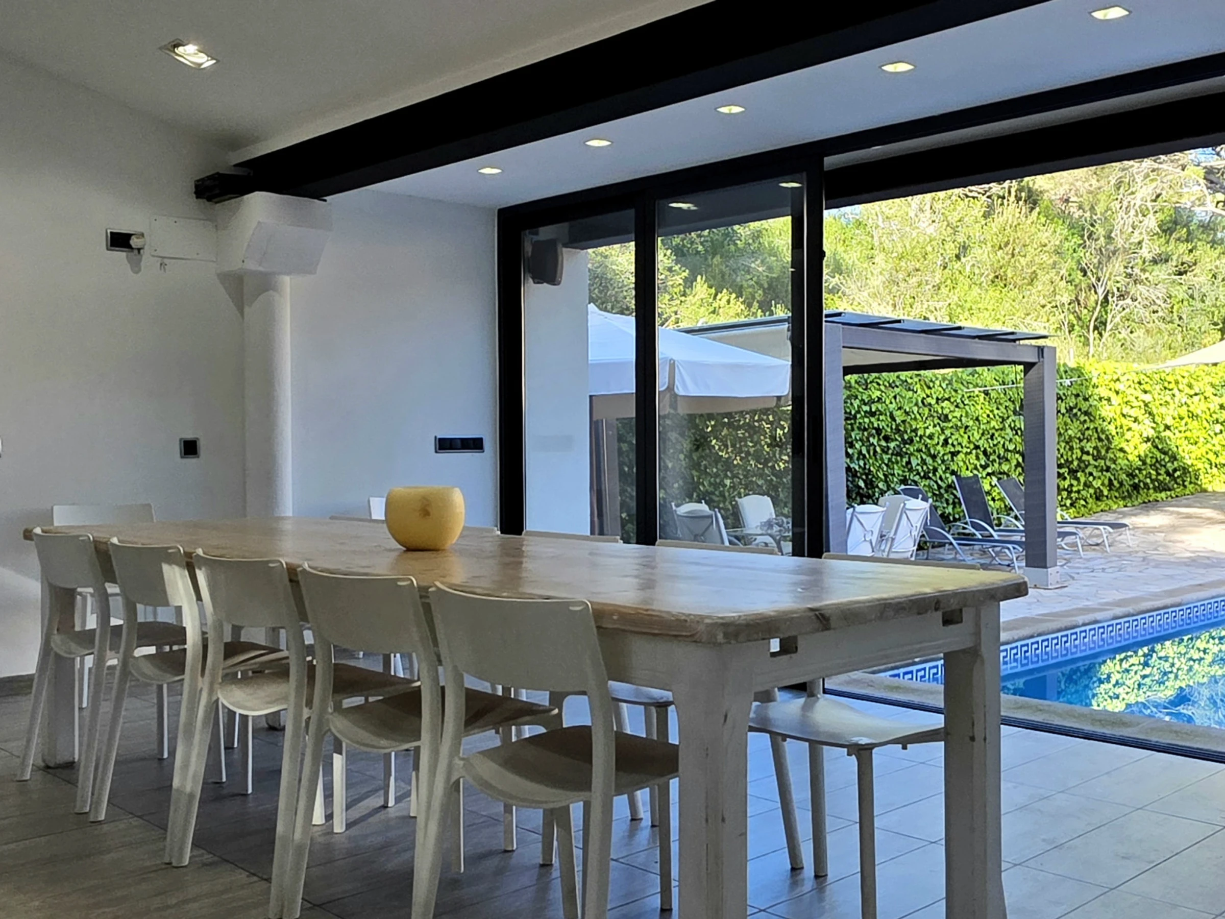 You can enjoy the sun on the sun loungers available and enjoy delicious lunches and dinners cooked in the outdoor kitchen, which features an induction stove, refrigerator, and gas barbecue (the wood-burning oven is not available). The outdoor area also includes a restroom, a volleyball area, gardens, and a porch where you can enjoy a good book or spend time with friends or family.