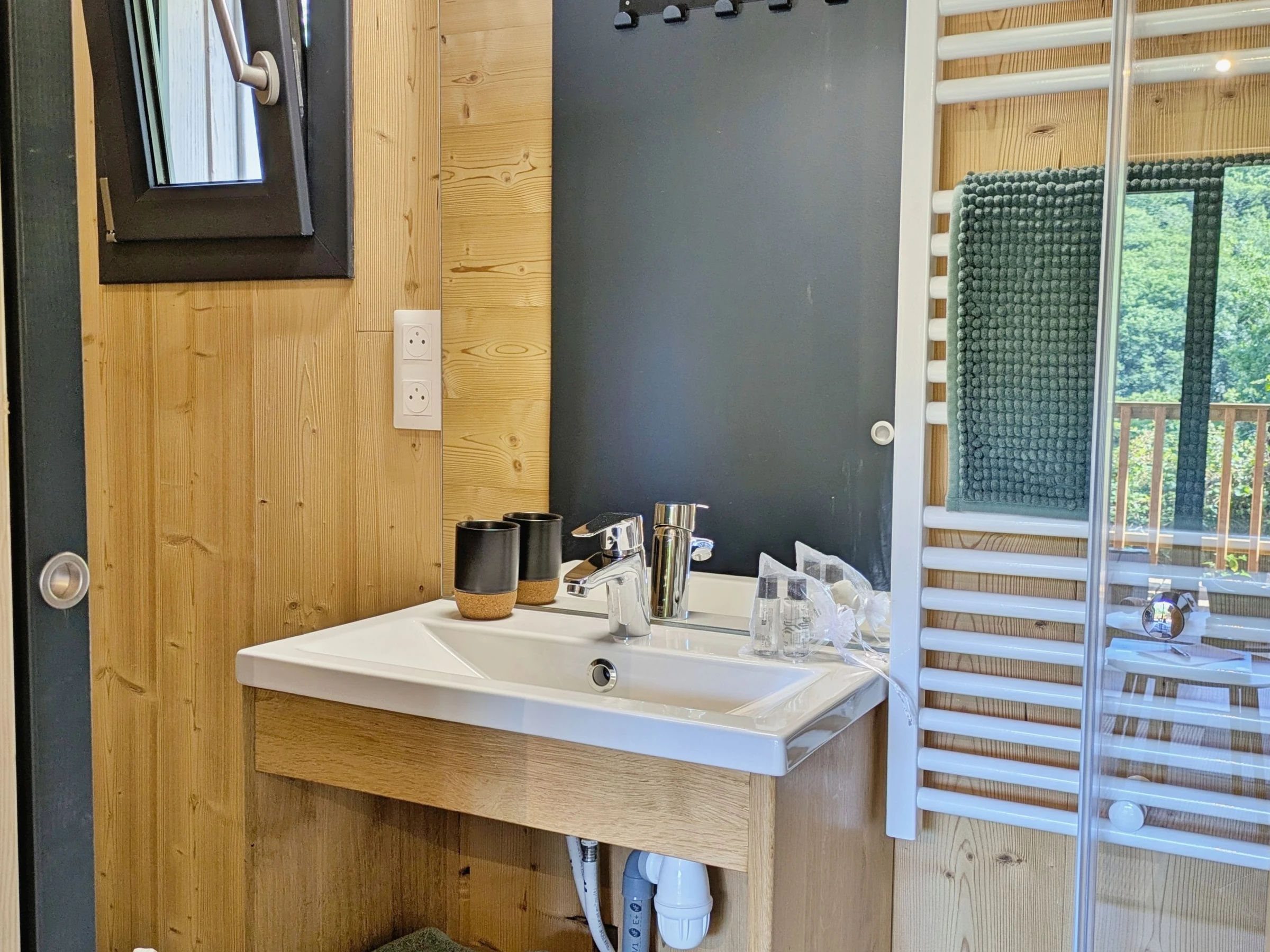 Located 5 km from Laval, the Coupeau campsite offers this unique and comfortable chalet, ideal for families or travelers seeking peace and nature. Perched above the Coupeau woods and overlooking the Vicoin river, it offers a relaxing setting and beautiful panoramic views. The chalet comprises a covered terrace, a living room with a fully equipped kitchen, two bedrooms (4 twin beds), and a bathroom with a toilet. Nearby amenities include a shop selling local products on-site, and all shops, restaurants, and services within 700 m. Activities at the campsite and in the surrounding area: Table tennis - In the woods: children's playground, climbing wall, pétanque court, picnic tables, cave - Fishing possible with a federal permit (available for purchase on the federation's website) - Trail running, hiking, and cycling routes. Practical information: Campsite reception: open from April 11 to October 5, from 9:00 am to 12:30 pm and from 3:00 pm to 7:30 pm. To discover in Laval (5 km): A dynamic city of art and history, Laval offers throughout the year: Theatre and music festivals - Exhibitions, sporting events - Christmas lights - Espace Mayenne: cultural and sporting events - Laval river stop (7 km): boat and bicycle rentals - L'Arche Desnoë animal park (5 km) - La Cité du Lait (7 km): the largest dairy museum with fun activities for the whole family. Come and discover the beauty of the Mayenne region and enjoy an unforgettable stay at Camping de Coupeau!