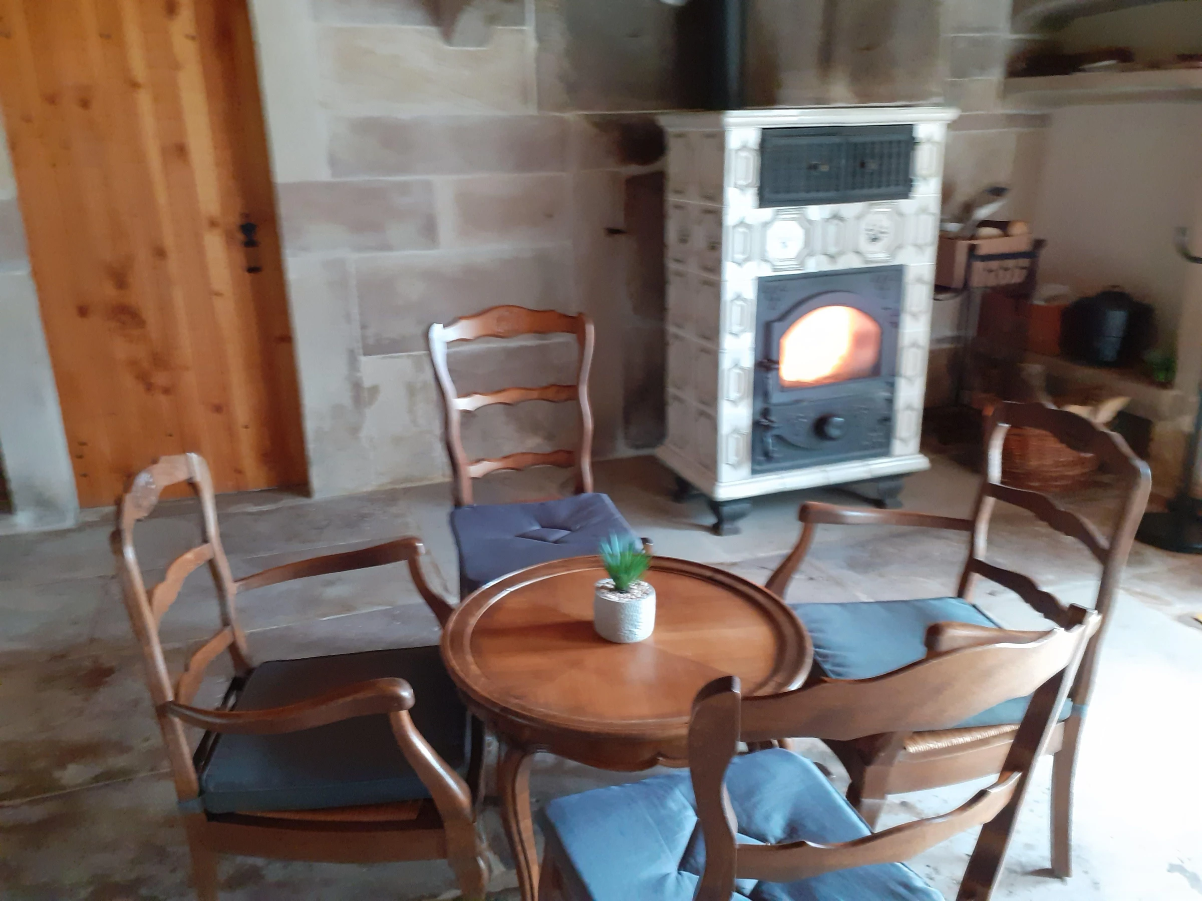 The wonderful setting at the "Chez Didion" cottage, in the hamlet of Fouillies de la Goutte in Saint-Bresson, overlooks the Vosges Saônoises mountains. It offers a magnificent view, where the beautiful Vosgiennes mountain ranges graze peacefully. You'll want to escape on the many hiking trails or simply admire nature in peace. This spacious, detached former farmhouse has been renovated with respect for its traditional architecture: you'll rediscover the charm of the cut stone, cornices, and beams typical of the farms of the Vosges-Saônoises. On the ground floor: entrance with an Alsatian wood-burning stove, fitted kitchen with dining area, a beautiful living/dining room with a mezzanine, a bathroom (walk-in shower), toilet, 1 bedroom (1 double bed), and a garage for bicycles or motorcycles with a washing machine. Upstairs: 1 bedroom (1 double bed), 1 bedroom (1 double bed, with private toilet and sink). Large, unfenced outdoor lawn. In the former charri, enjoy the view from the beautiful covered terrace.