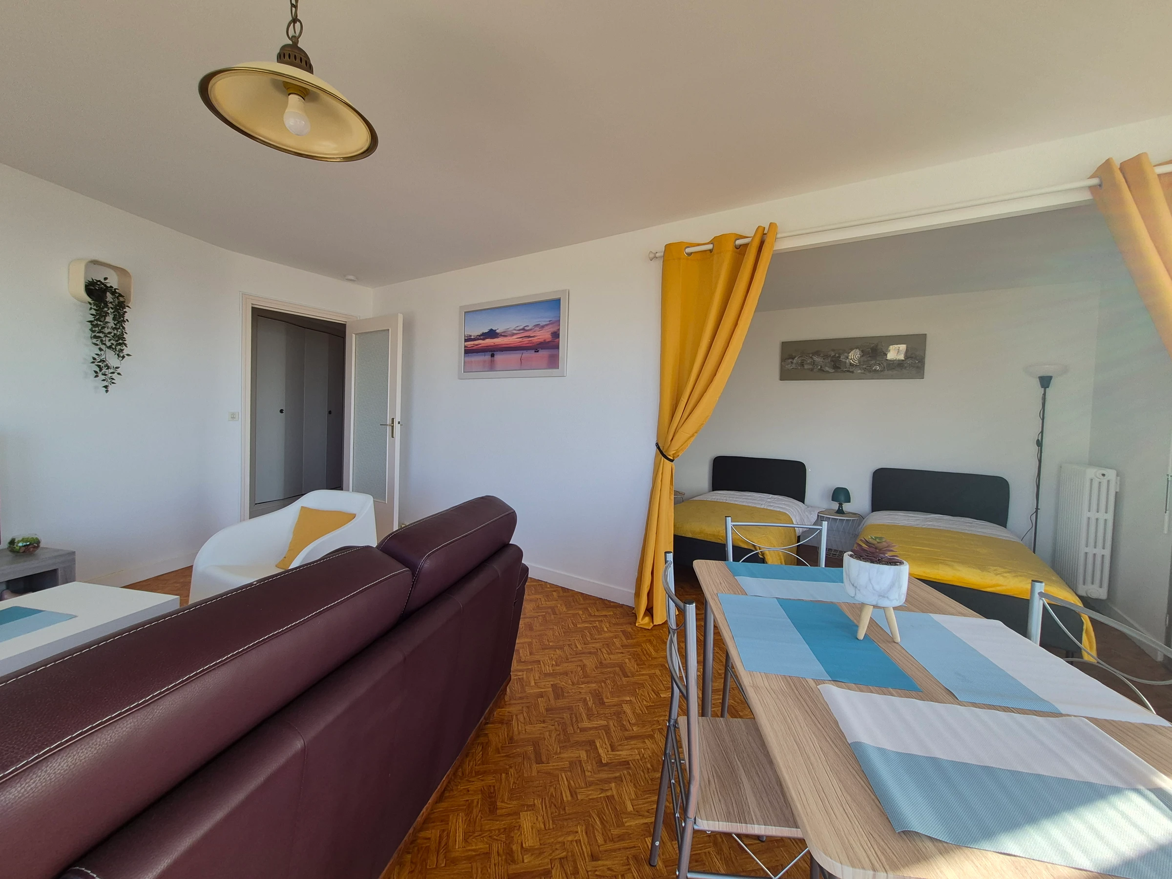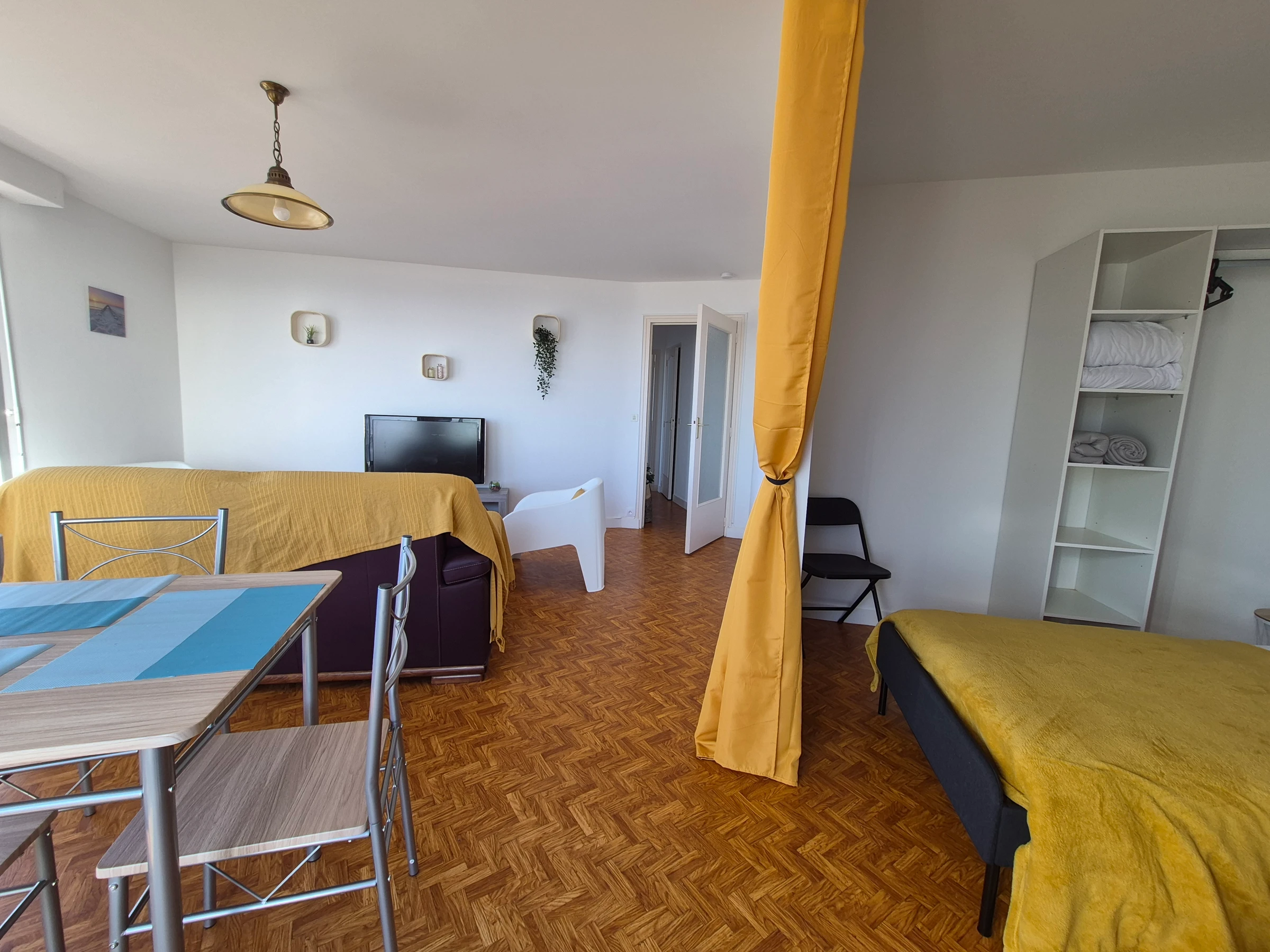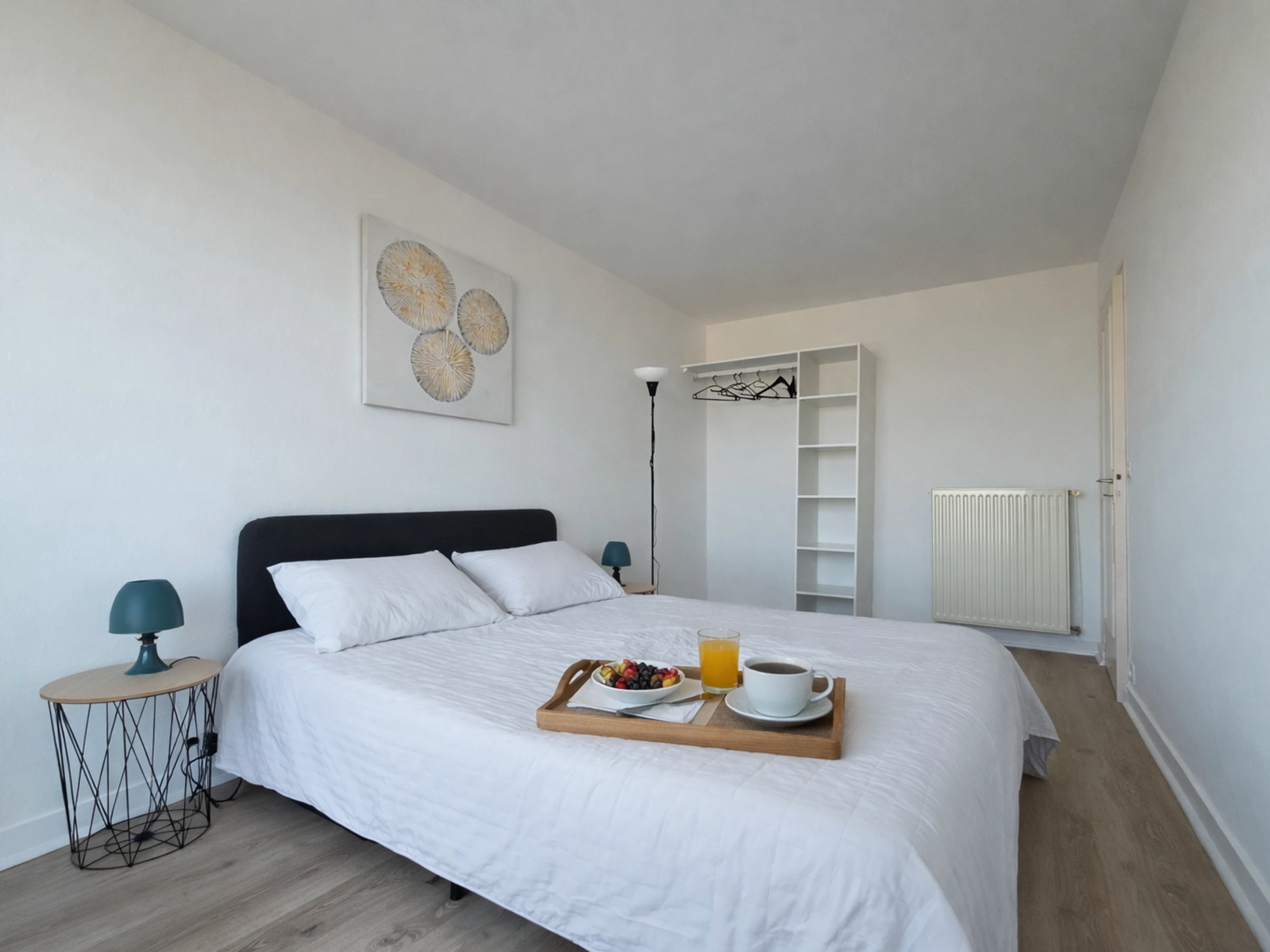 Master bedroom with double bed (160 cm) and direct access to terrace with views of Boulevard Padioleau and the sea