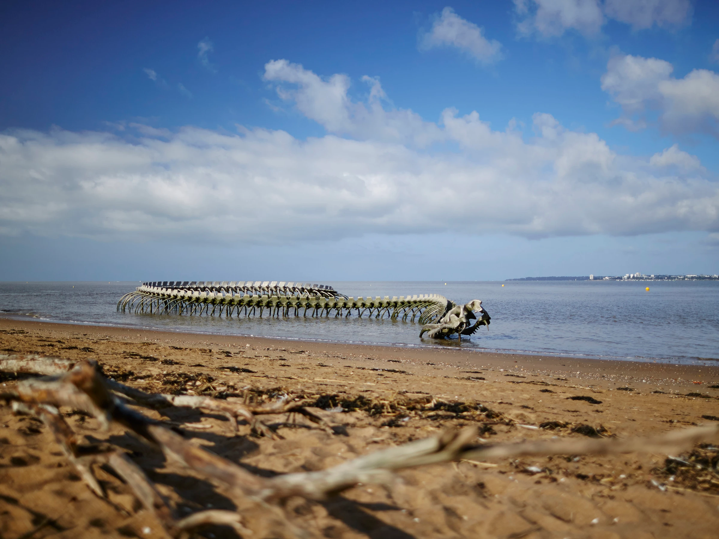 Explore the mysterious Serpent d'Océan, a monumental aluminum sculpture that emerges with the rhythm of the tides. This contemporary artwork is located on the Mindin headland.