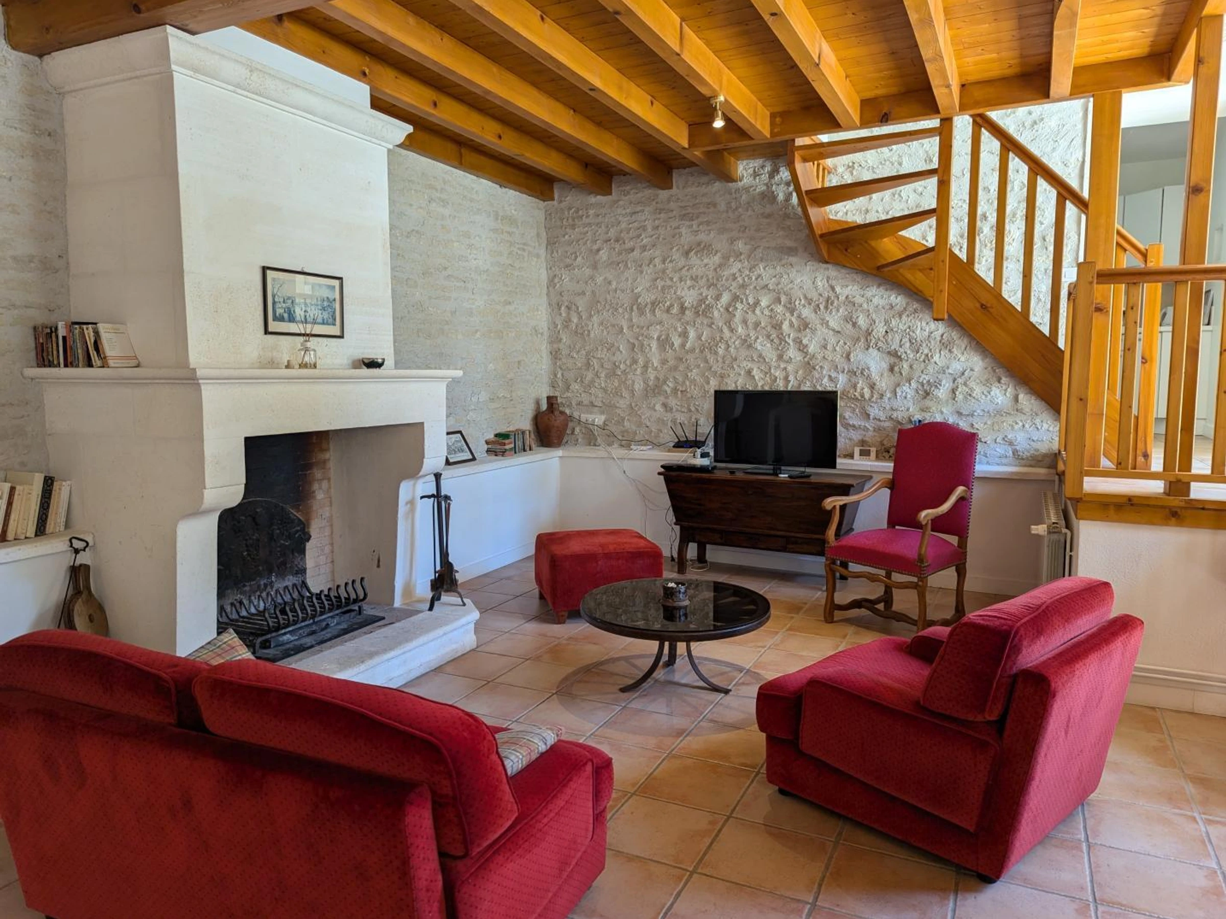 TV with Chromecast, radio, fiber optic internet connection with Wi-Fi.