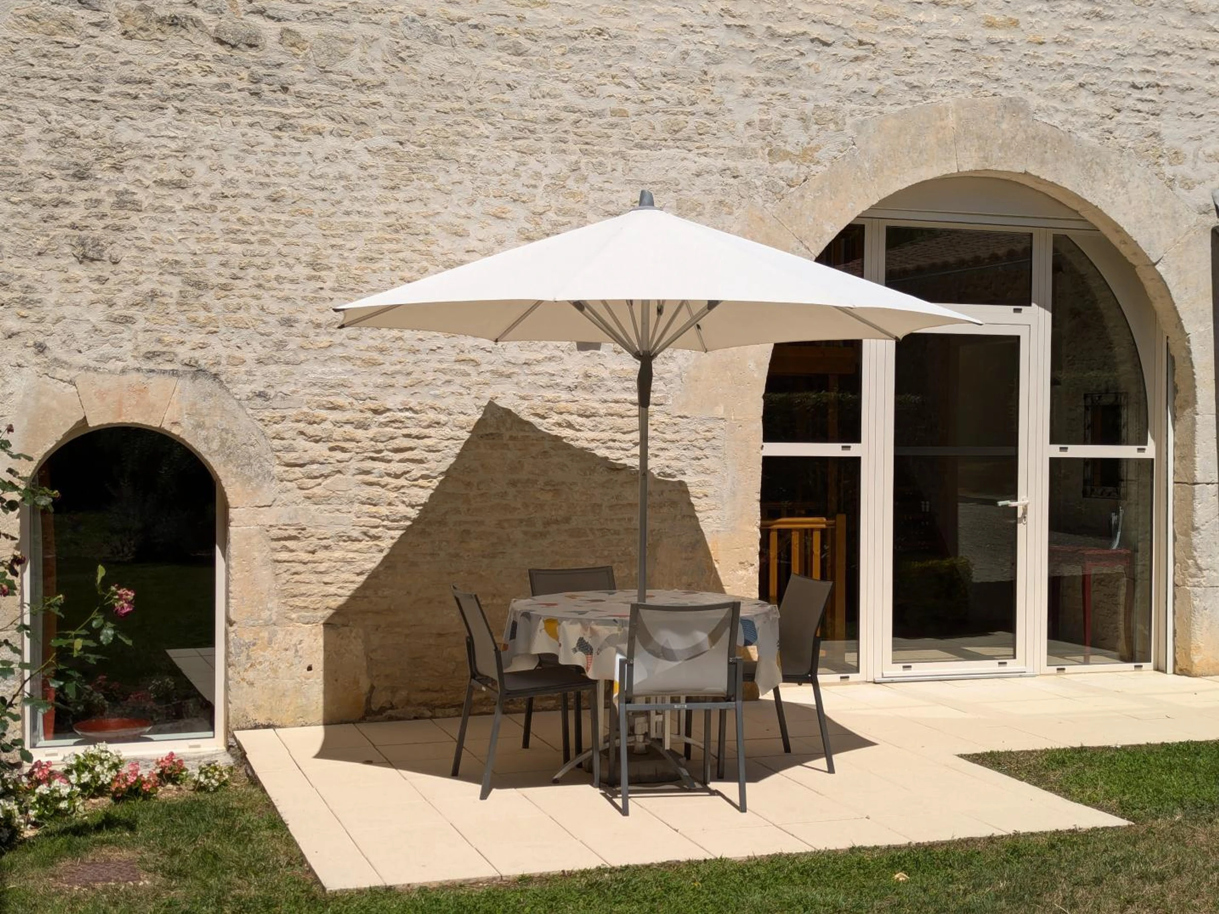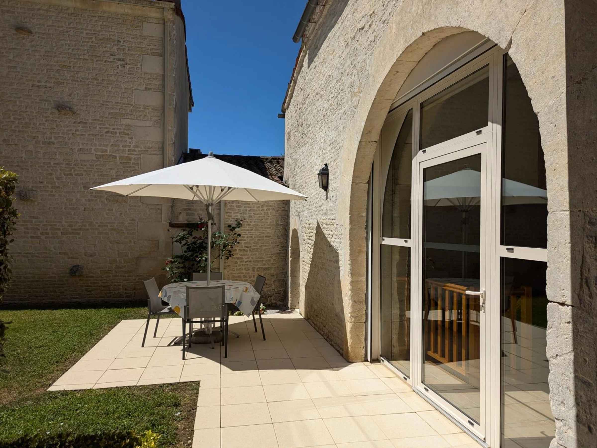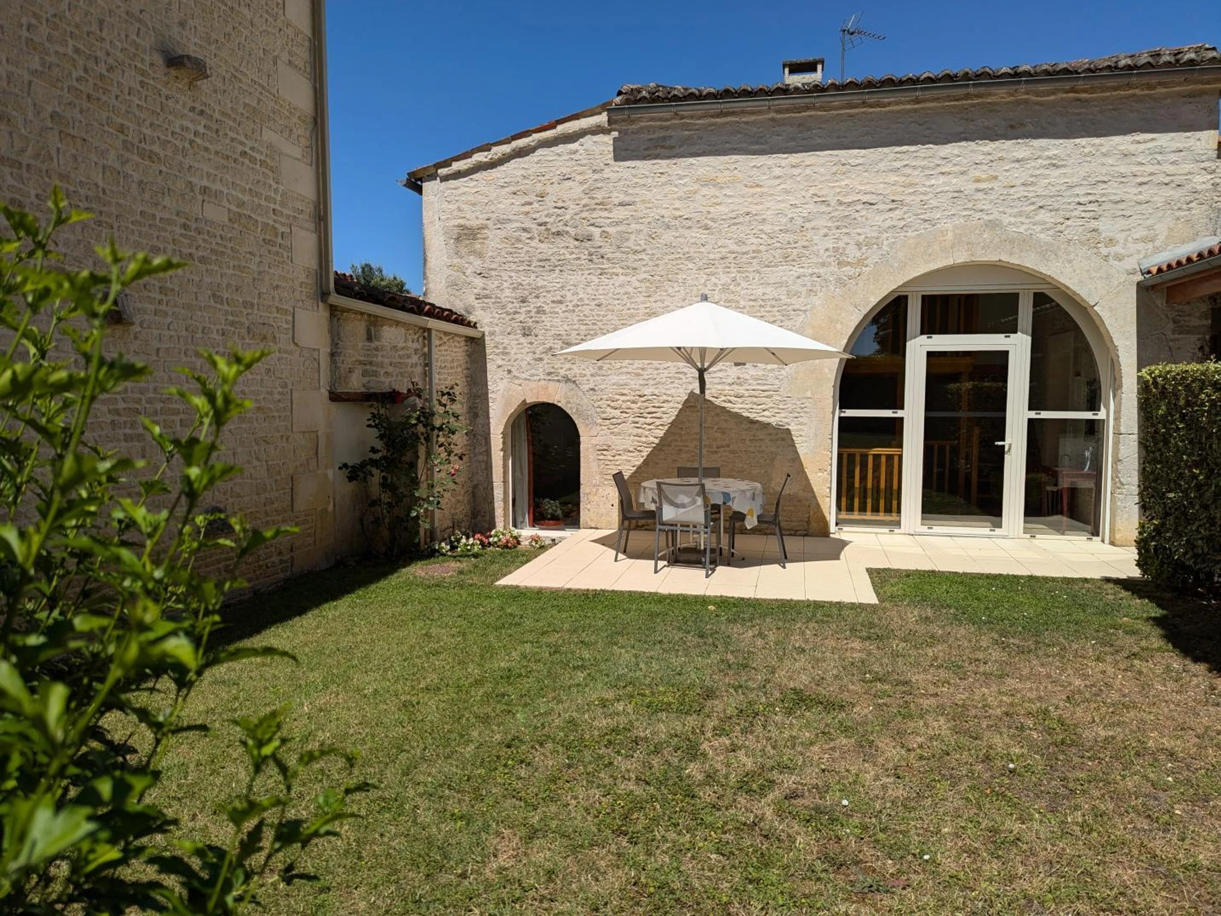 30 m² carport. 15 m² terrace and 200 m² private enclosed garden. Shared swimming pool with disabled access (11x7 m, safety barrier, and cover), heated in mid-season, open from late May to mid-September. 4,000 m² garden with swings, table tennis, and badminton net, shared by all 3 cottages.