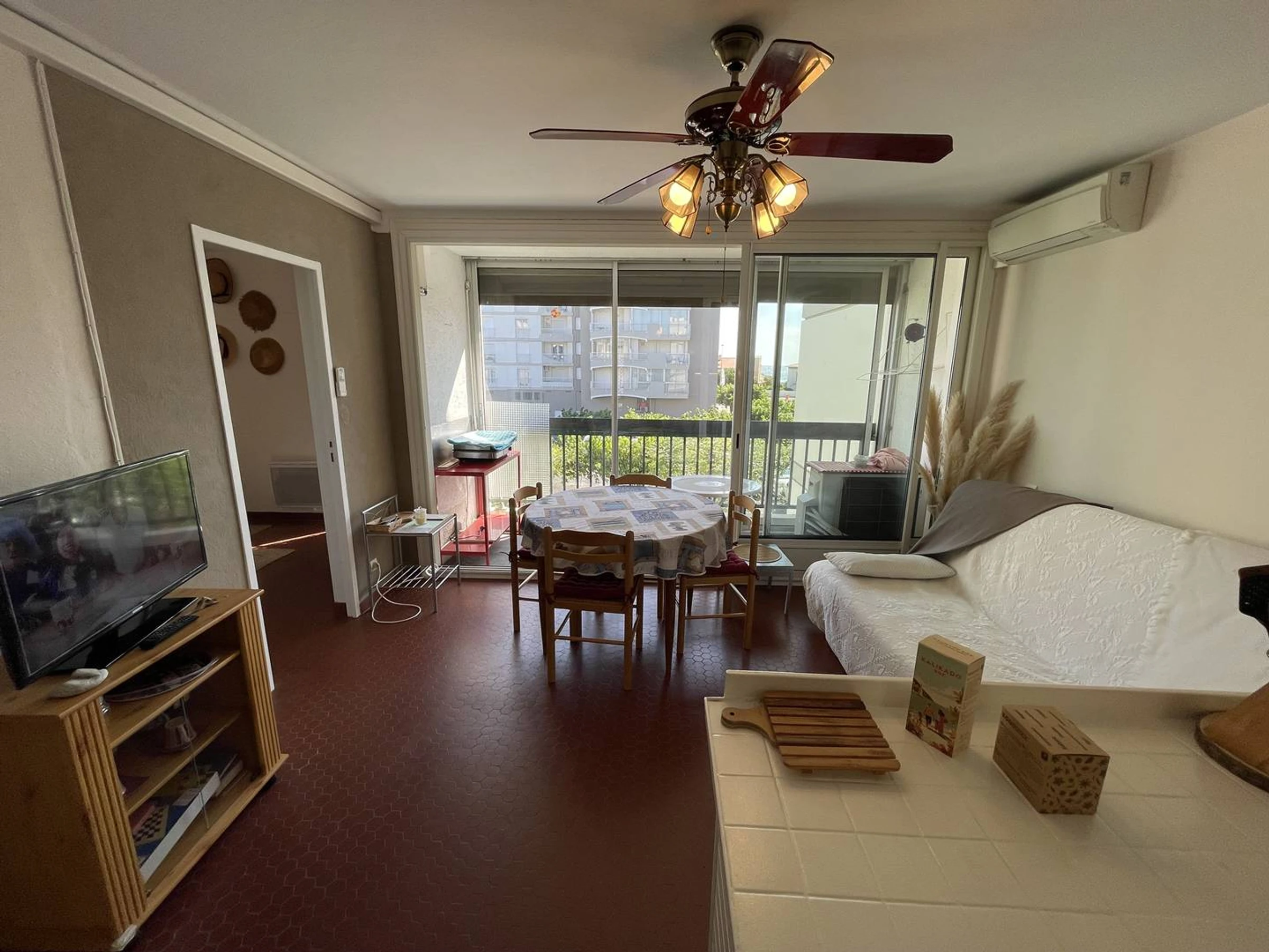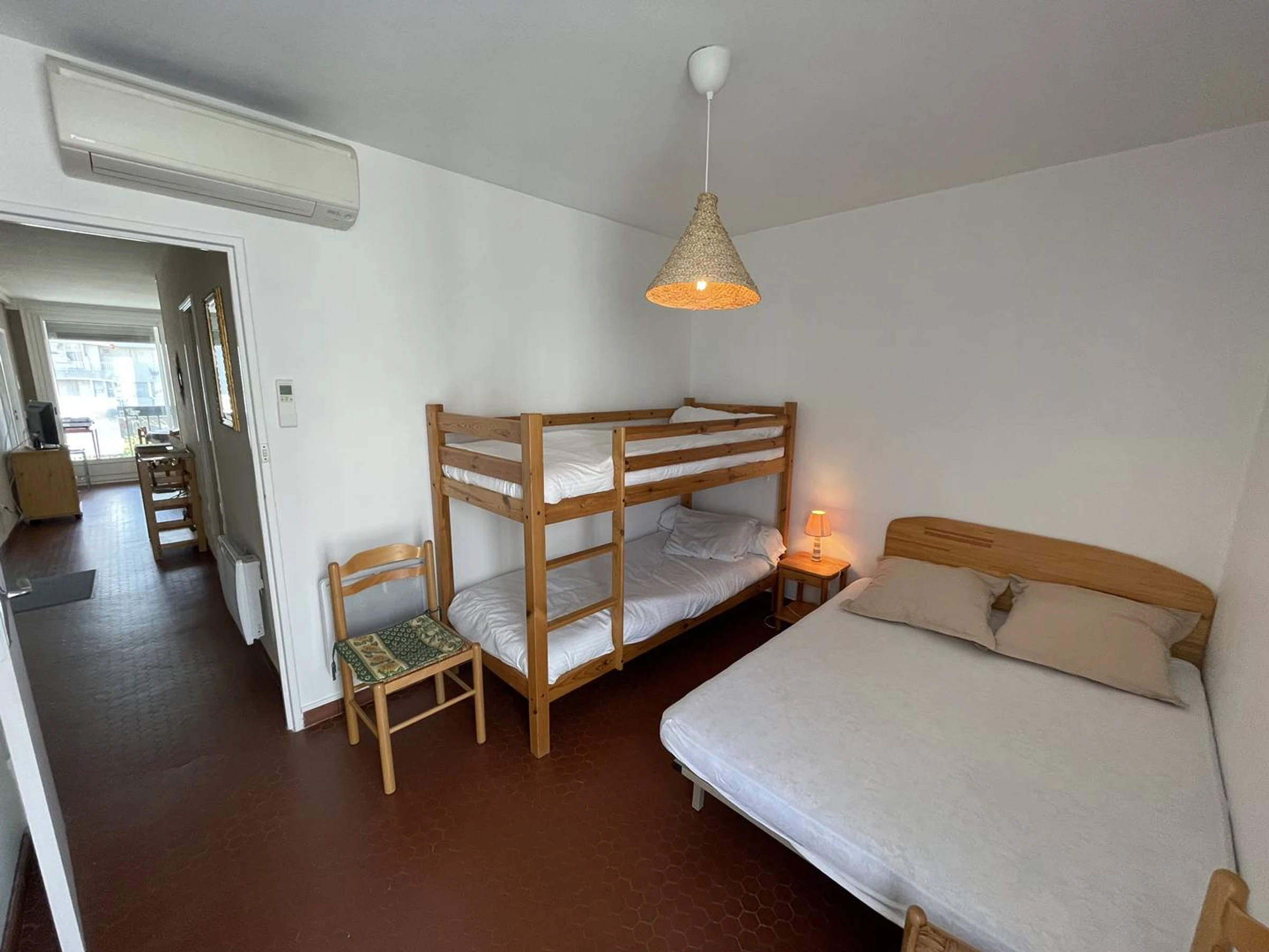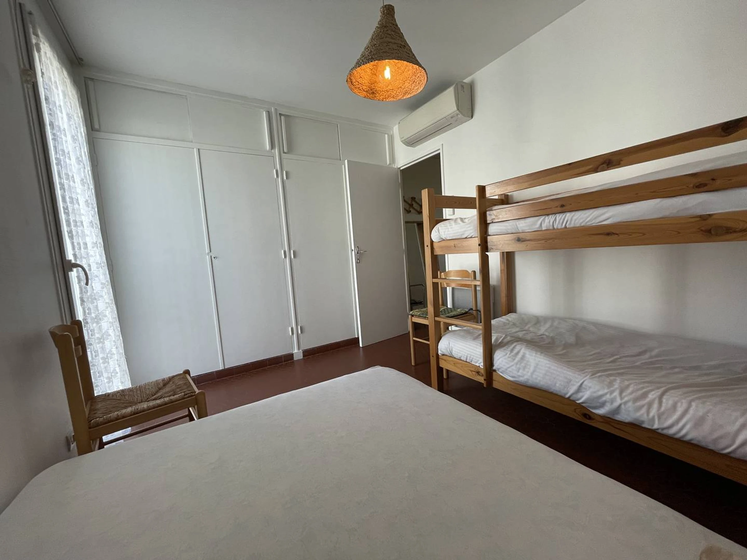 Port area, 200m from the beach, 100m from shops and entertainment. Large air-conditioned T3 apartment of approx. 60m² with a small "sea view", equipped for 6 people, located on the 2nd and last floor (no elevator). Comprising: entrance hall, air-conditioned living room with 160cm sofa bed, LED TV. Kitchen area with fridge-freezer, combi cooker (3 gas burners + 1 electric hob, oven, dishwasher), extractor hood, electric coffee maker, microwave, kettle.... Adjoining the living room, an air-conditioned bedroom with 1 140cm bed and large cupboards. Corridor leading to a 2nd air-conditioned bedroom with 2 90cm beds and a 140cm bed and large cupboards overlooking the garden of the residence. Shower room with shower cubicle and washing machine, separate toilet. Spacious apartment with plenty of storage and wardrobes. Private parking n°122 in rue Marcel de Saint Amant (approx. 100m). PETS ALLOWED.