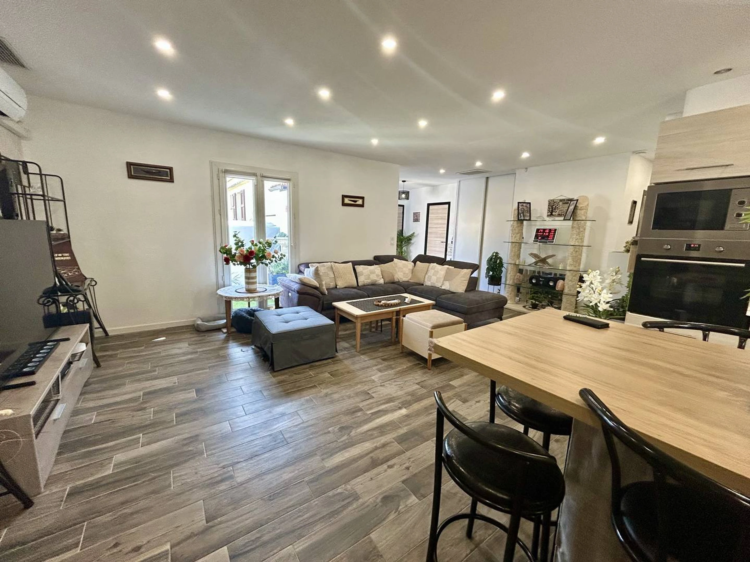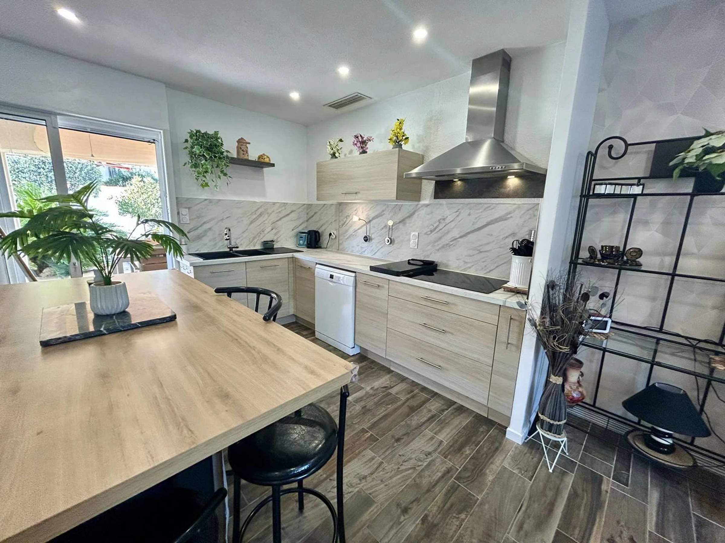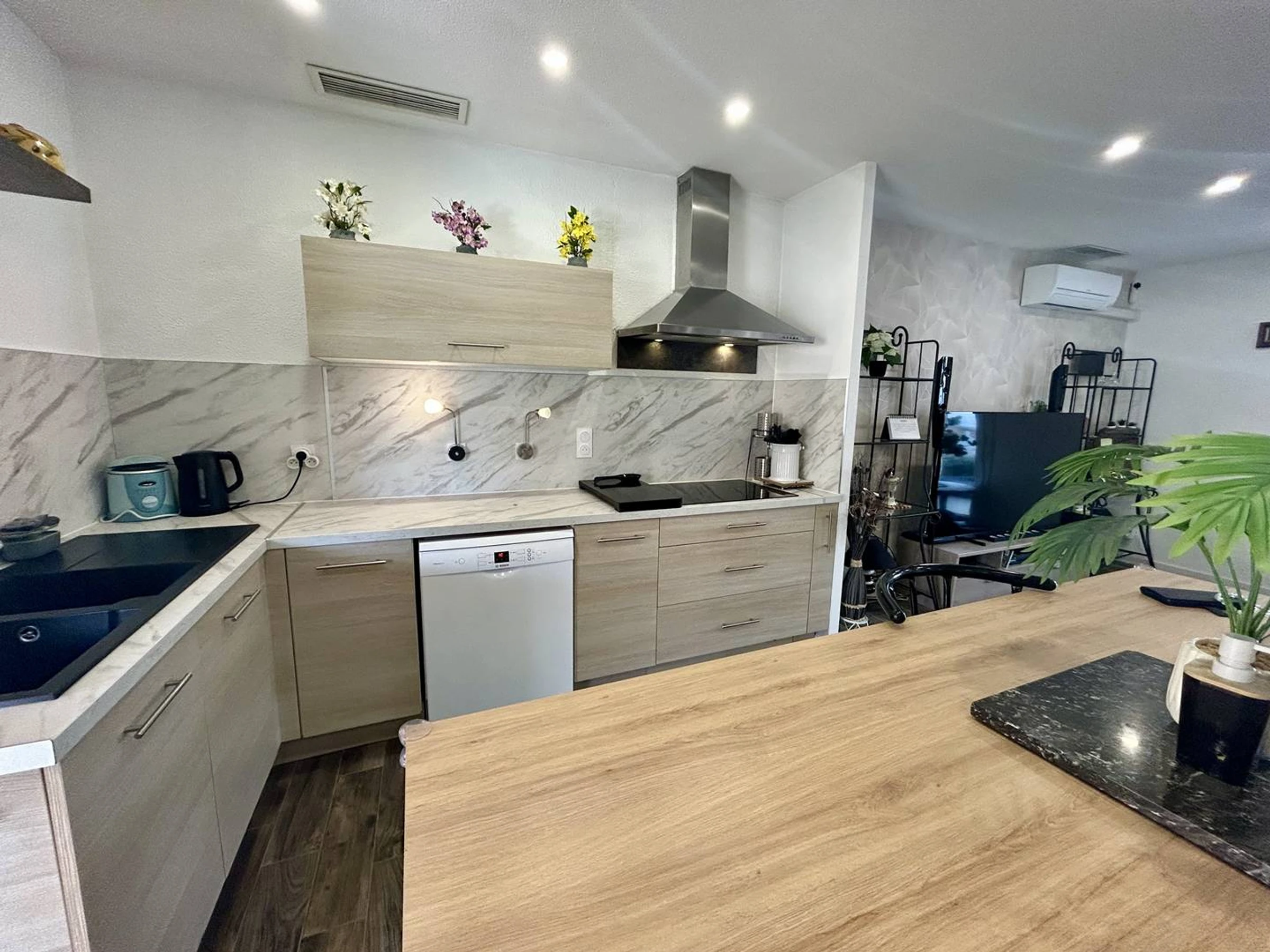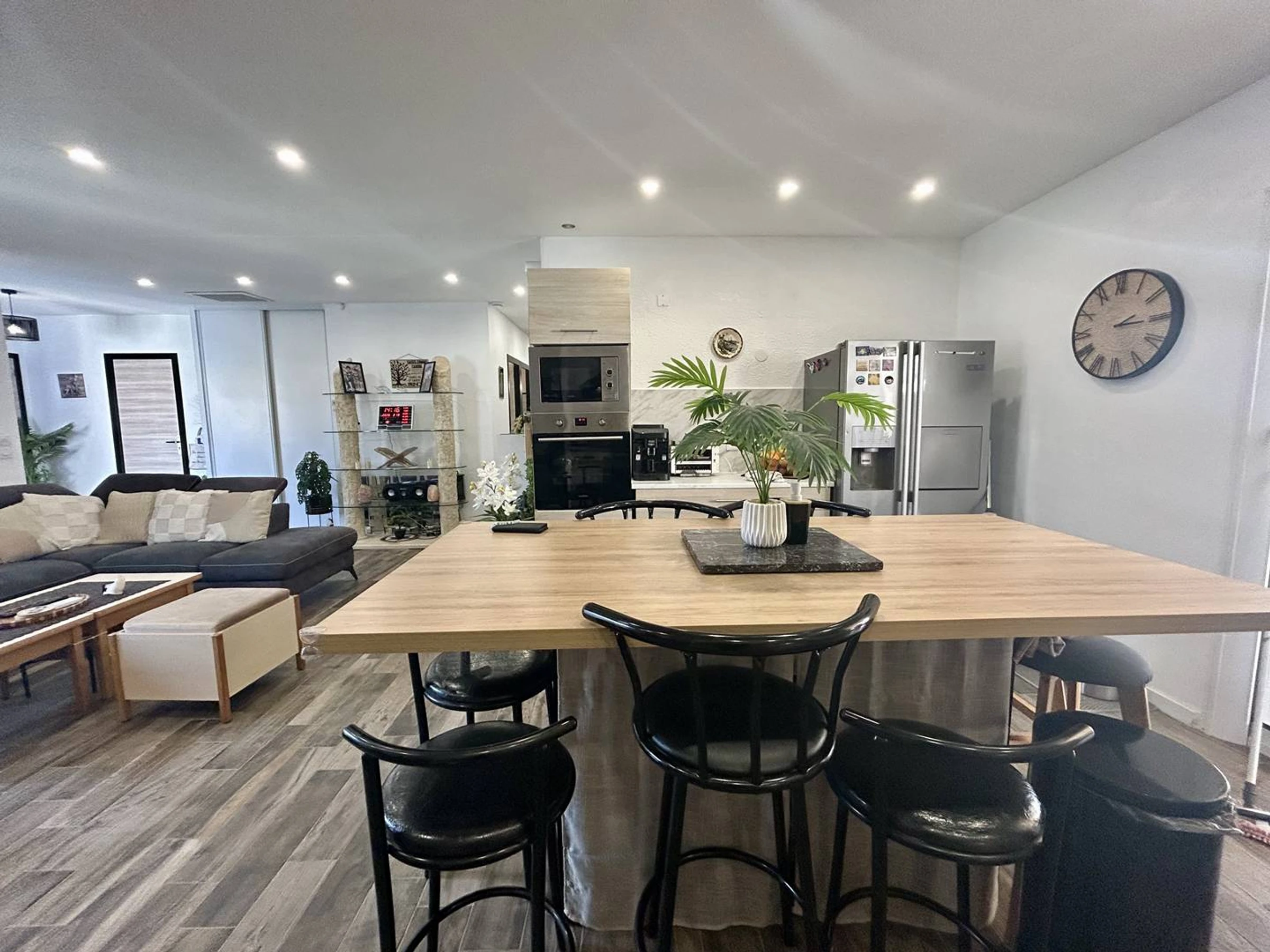 Notre maison de vacances, climatisée, de plain pied comprend, un séjour avec un grand espace cuisine bien équipée, un salon climatisé, avec grand canapé et grand écran plat, un lit simple d'appoint pour enfant. La partie nuit comprend une chambre avec un lit double en 160, et une seconde chambre avec deux lits en 140 superposés, une salle d'eau avec douche et WC, un deuxième WC indépendant.
