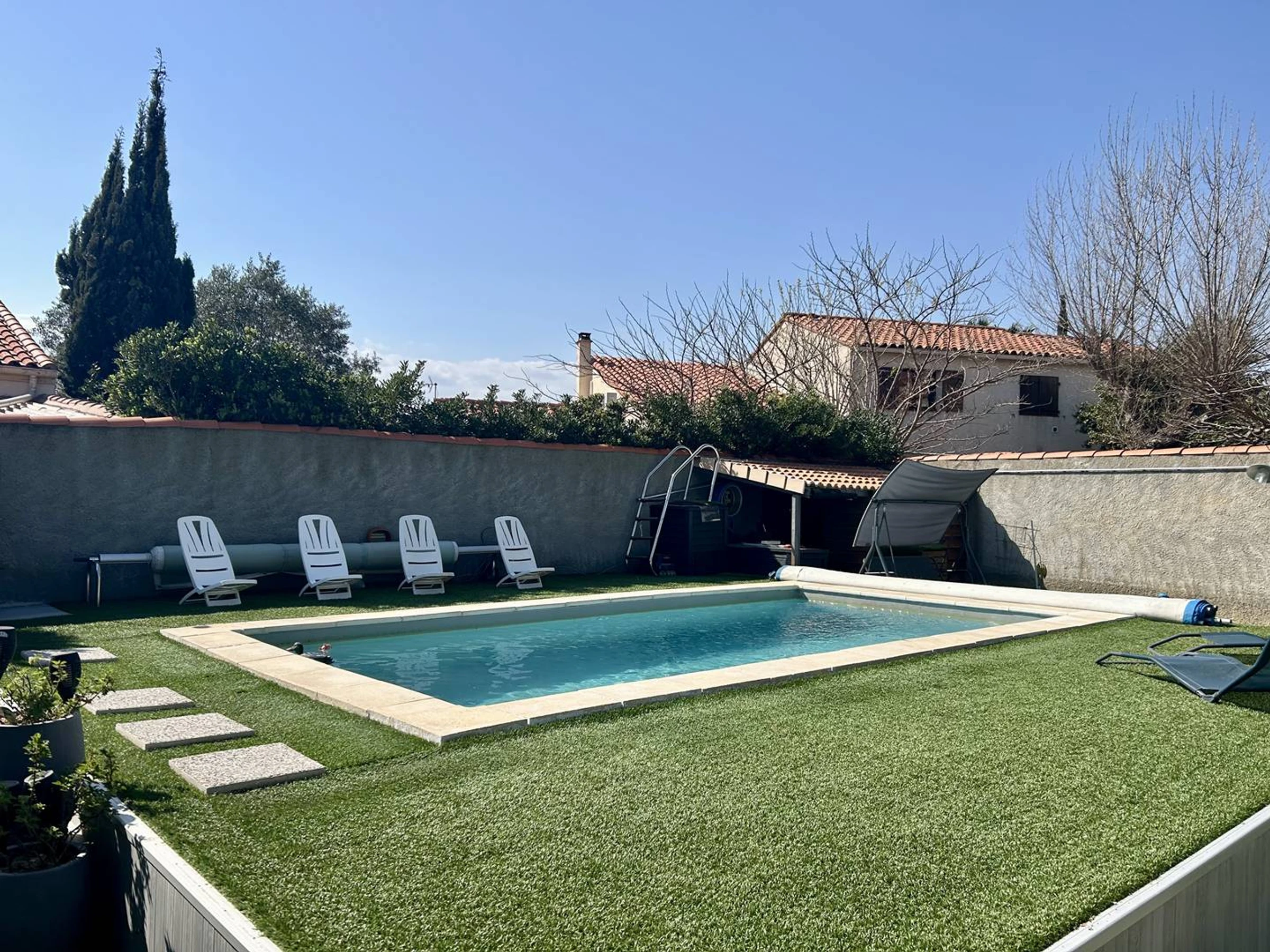 Cette maison à la mer dispose d'une belle terrasse spacieuse et ombragée, tables et chaises pour les repas et une belle piscine privée sécurisée (6mx3mx1.5m).