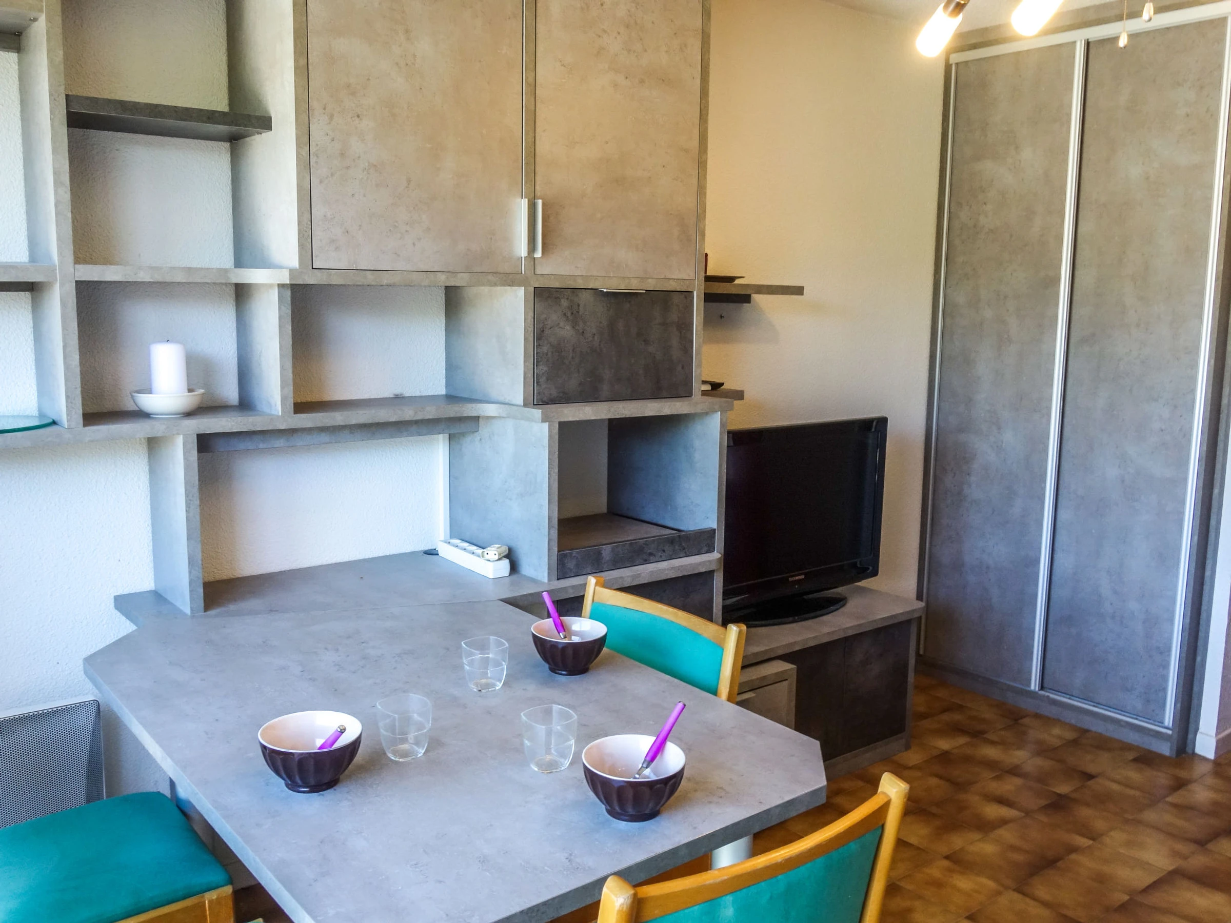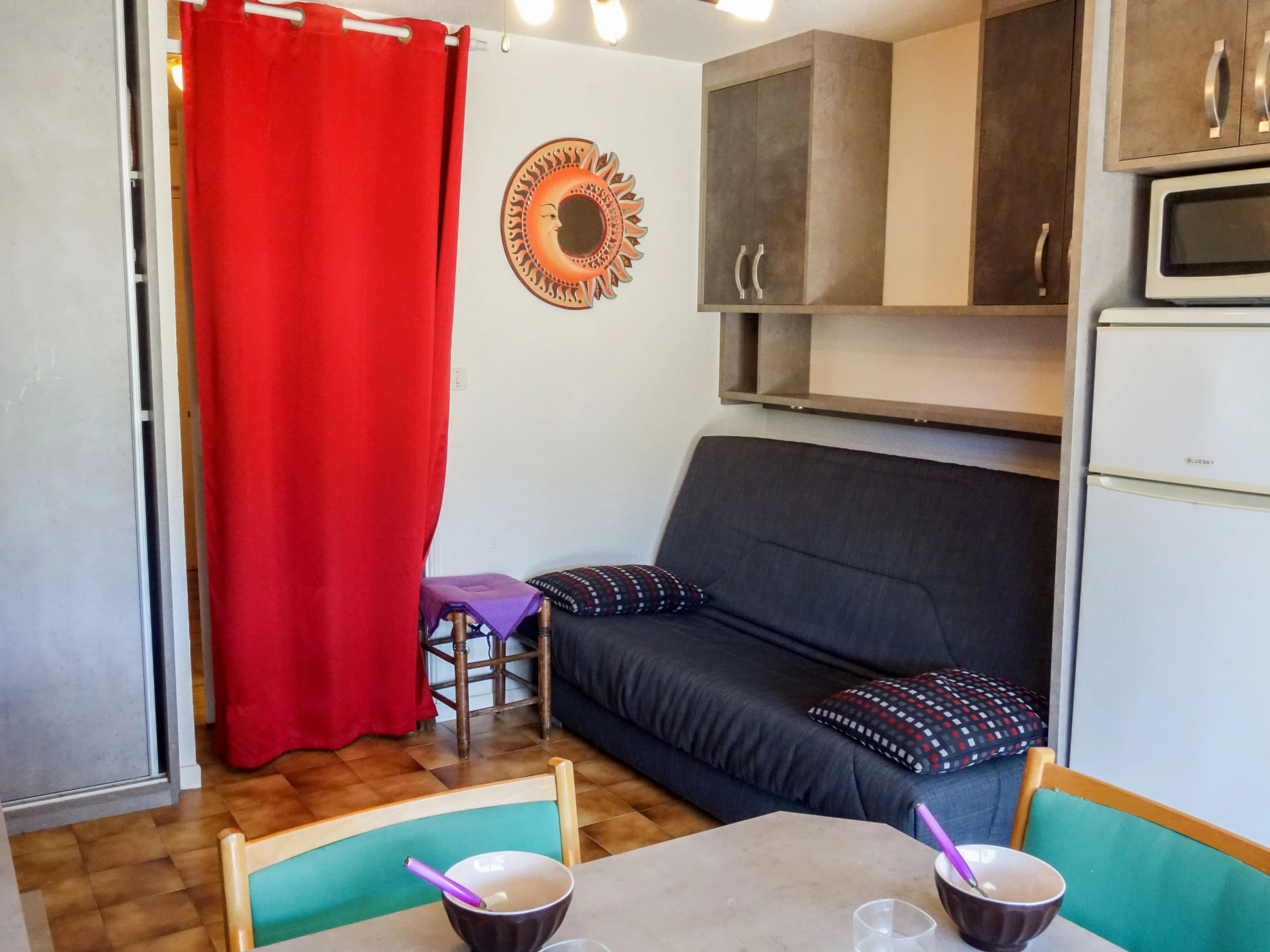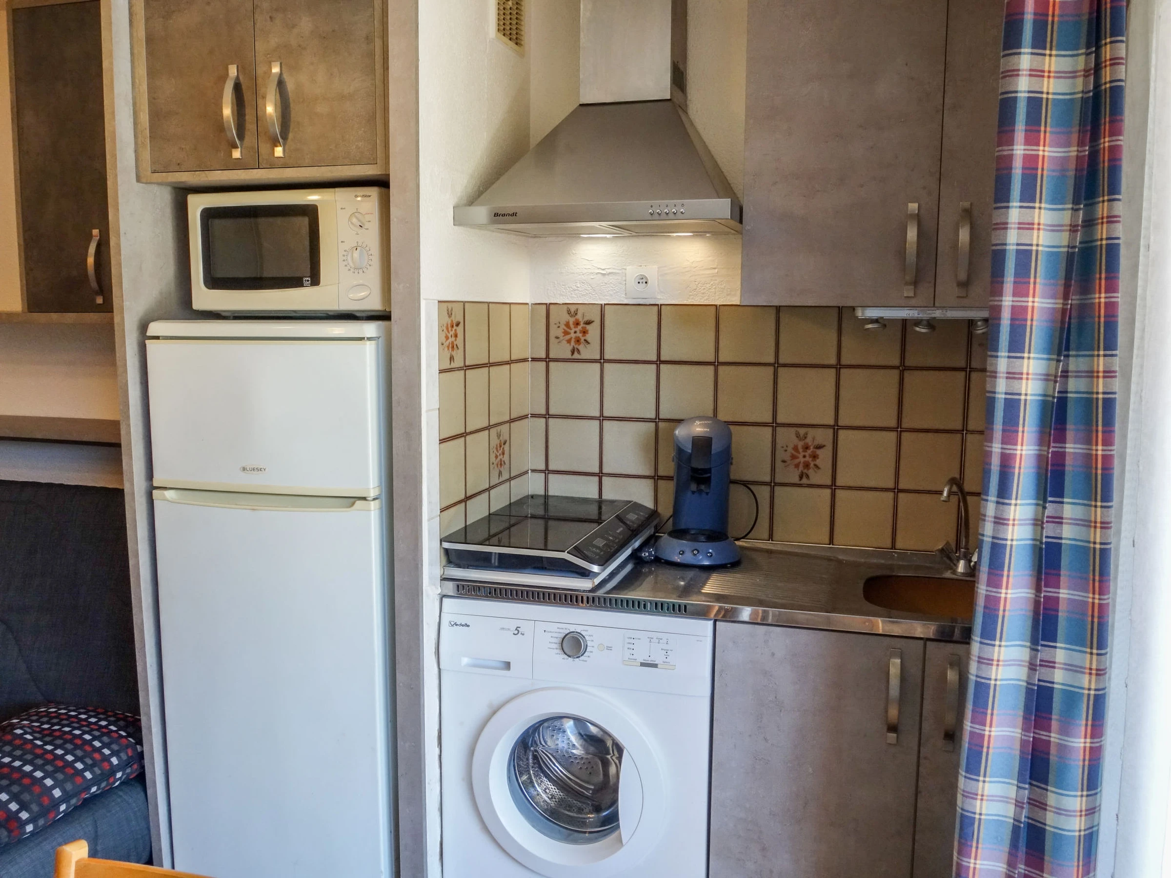 1-room studio 20 m2, on the ground floor. Entrance hall with 1 bed (90 cm, length 190 cm). Living/dining room with 1 double sofabed (130 cm, length 190 cm), TV (flat screen). Exit to the terrace. Kitchenette (2 induction hot plates, microwave, freezer). Shower, sep. WC. Electric heating. Terrace 20 m2. Terrace furniture. View of lagoon. Facilities: washing machine. Internet (WiFi, extra). Reserved parking space n 38. Maximum 1 pet/ dog allowed.