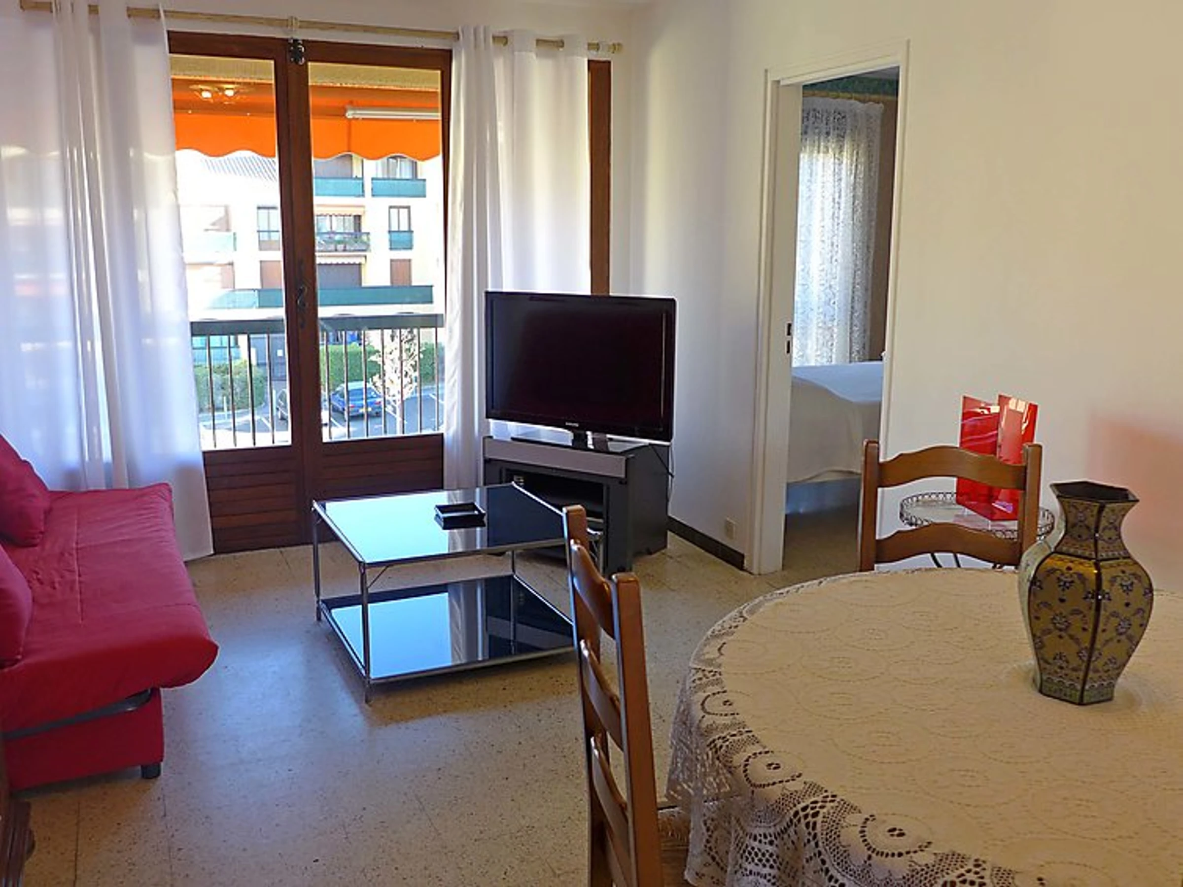 4-room apartment 80 m2 on 2nd floor. Renovated in 2015, comfortable and beautiful furnishings: living/dining room with dining table and TV (flat screen). Exit to the terrace. 3 rooms, each room with 1 french bed (140 cm, length 190 cm). Open kitchen (4 hot plates, oven, dishwasher, microwave, freezer, electric coffee machine). Exit to the terrace. Bathroom, sep. WC. Electric heating. 2 terraces 7 m2, covered. Terrace furniture, electric barbecue. Facilities: washing machine, iron. Internet (WiFi, free). Reserved parking space n 11. Please note: TV only FR. Smoke alarm. Mandatory extra services on site: Final cleaning 23.0EUR per person, Local tax 0.83EUR per person/day, Local tax babies (0-2) (per person/day), Local tax children (per person/day), Final cleaning 21.0EUR per person