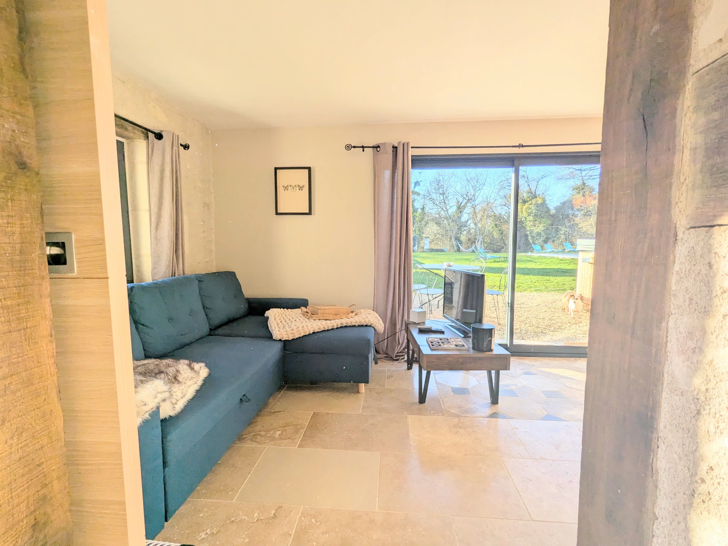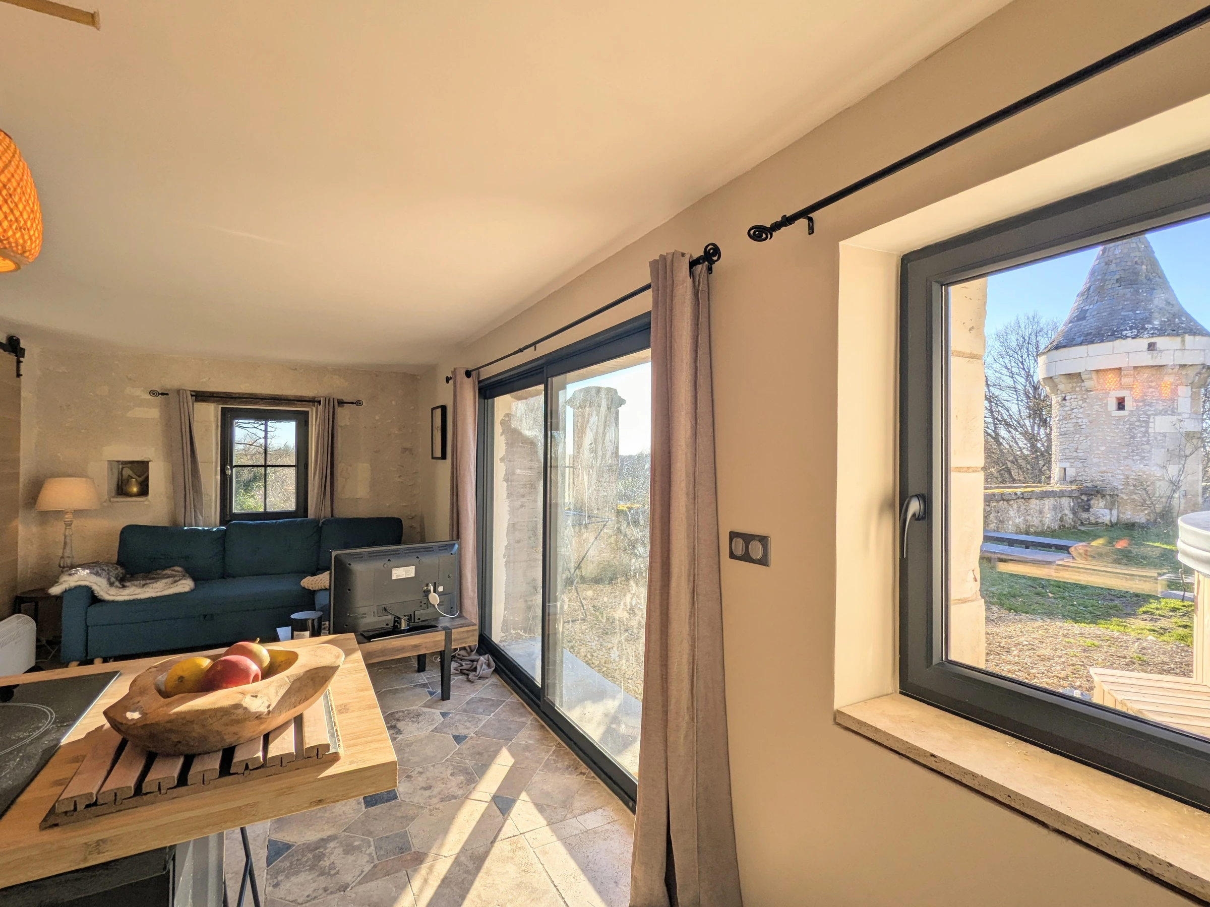 Near the Beauval ZooParc, Touraine, and the Brenne Regional Natural Park. The living area features a kitchen, lounge, and dining room. The sofa bed can accommodate two additional guests upon request.
