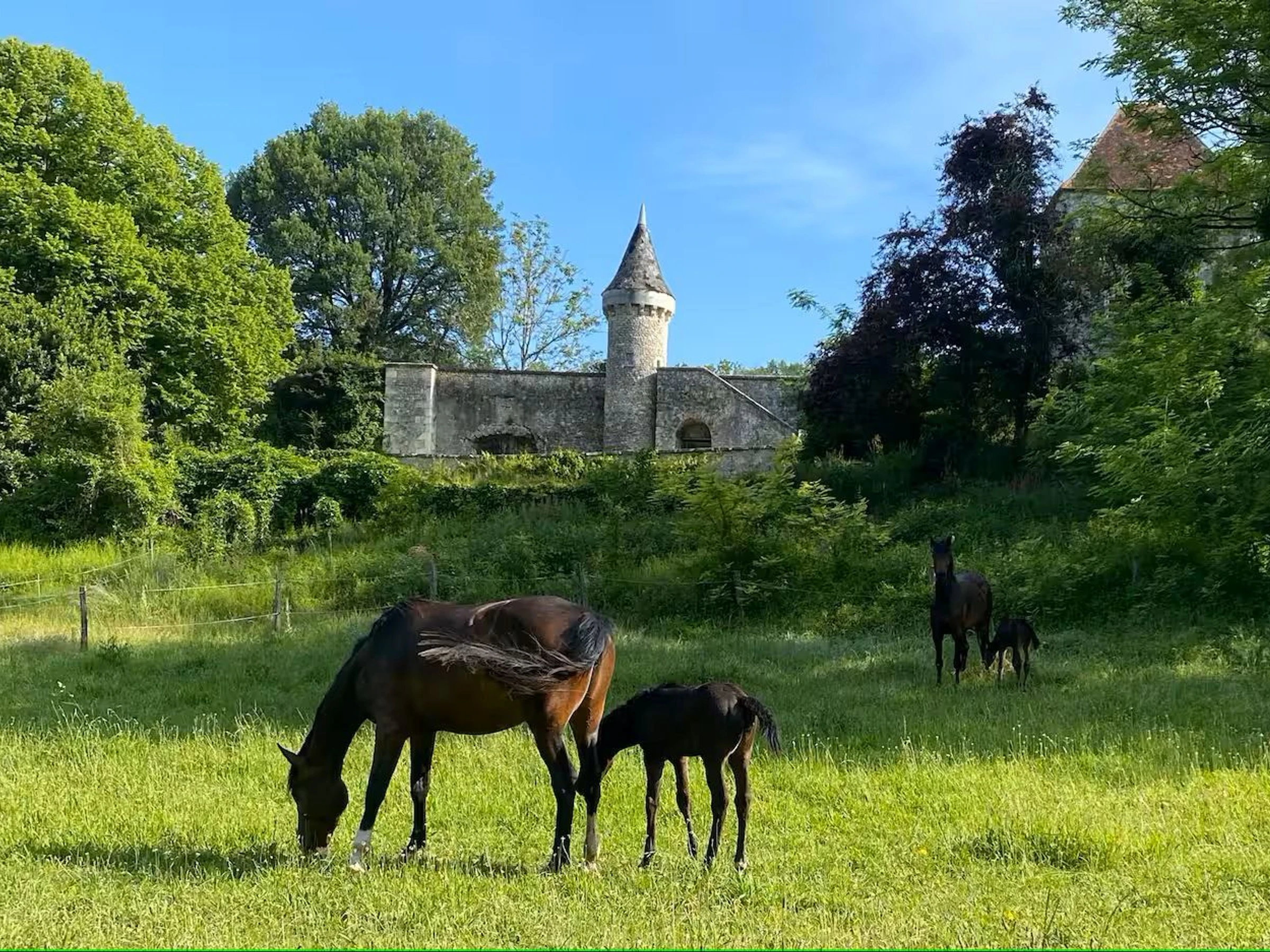 In the castle grounds, you'll find a riding arena, stables, and meadows where you can accommodate your horses or admire the estate's horses.