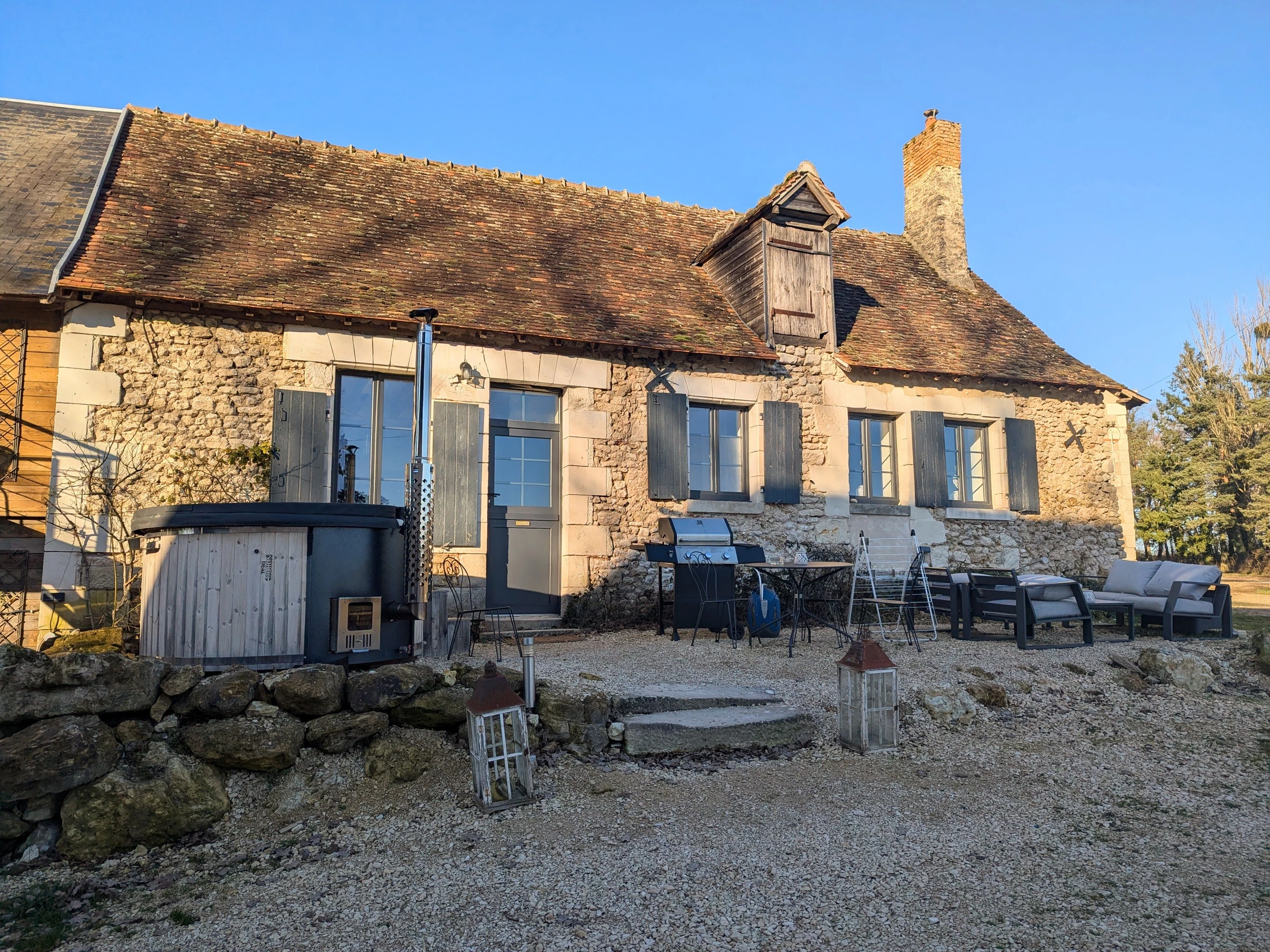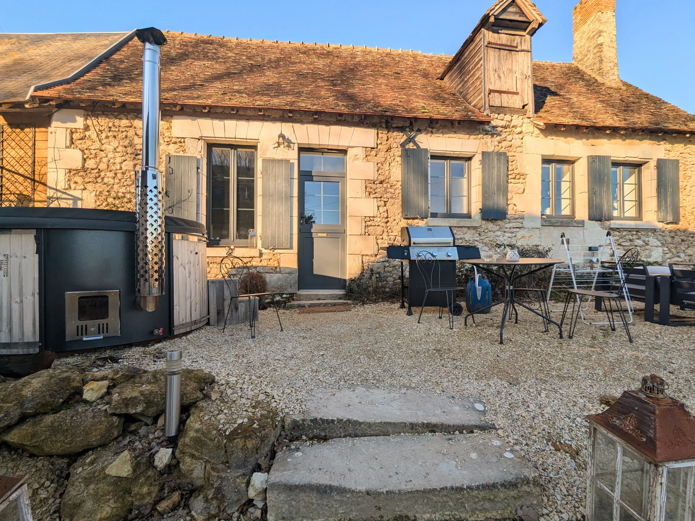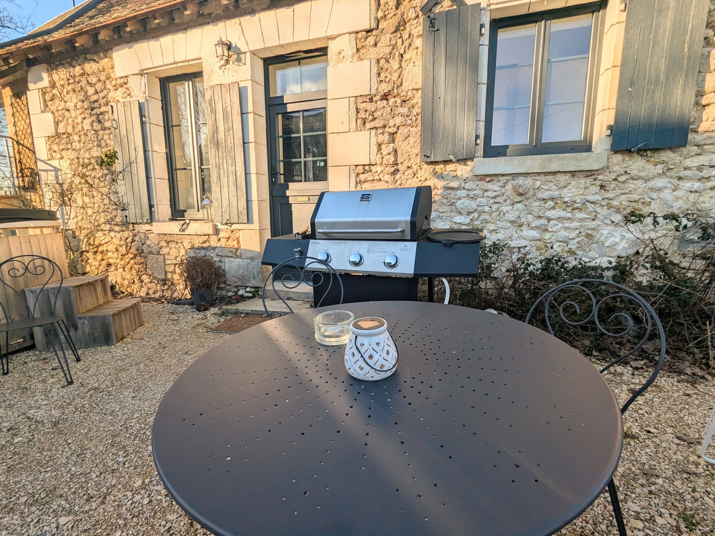 Outside, there's a terrace with garden furniture, a gas barbecue, and a private hot tub. Shared with the owners and two other gîtes, there's a heated swimming pool, a spa, and a lounge area equipped with a fire pit.