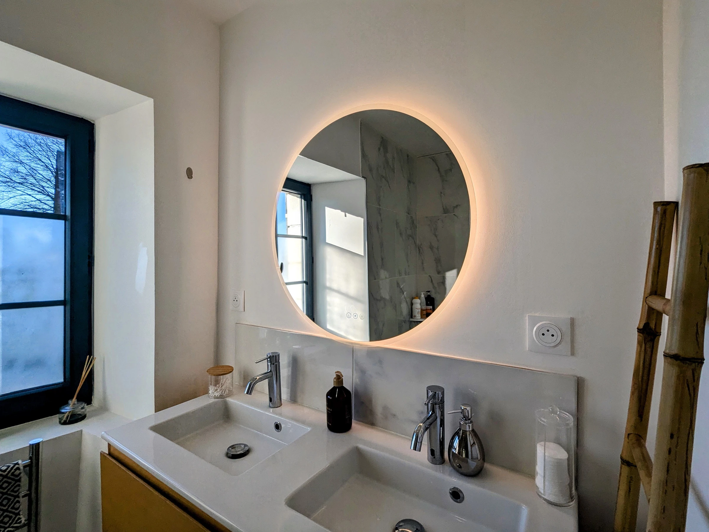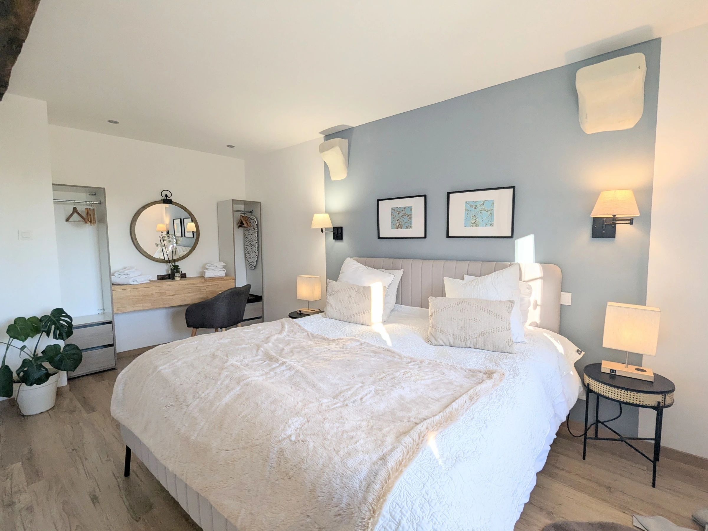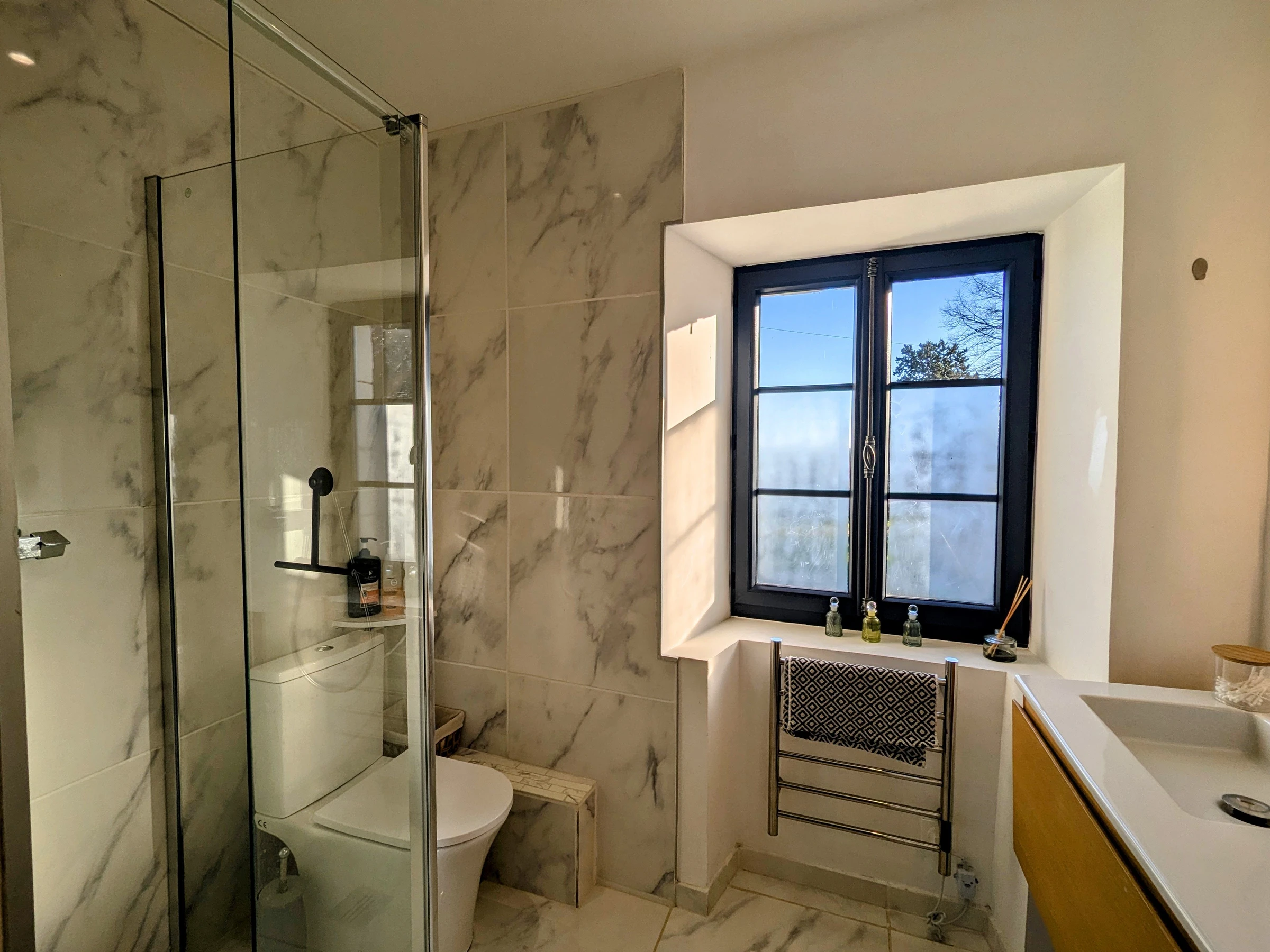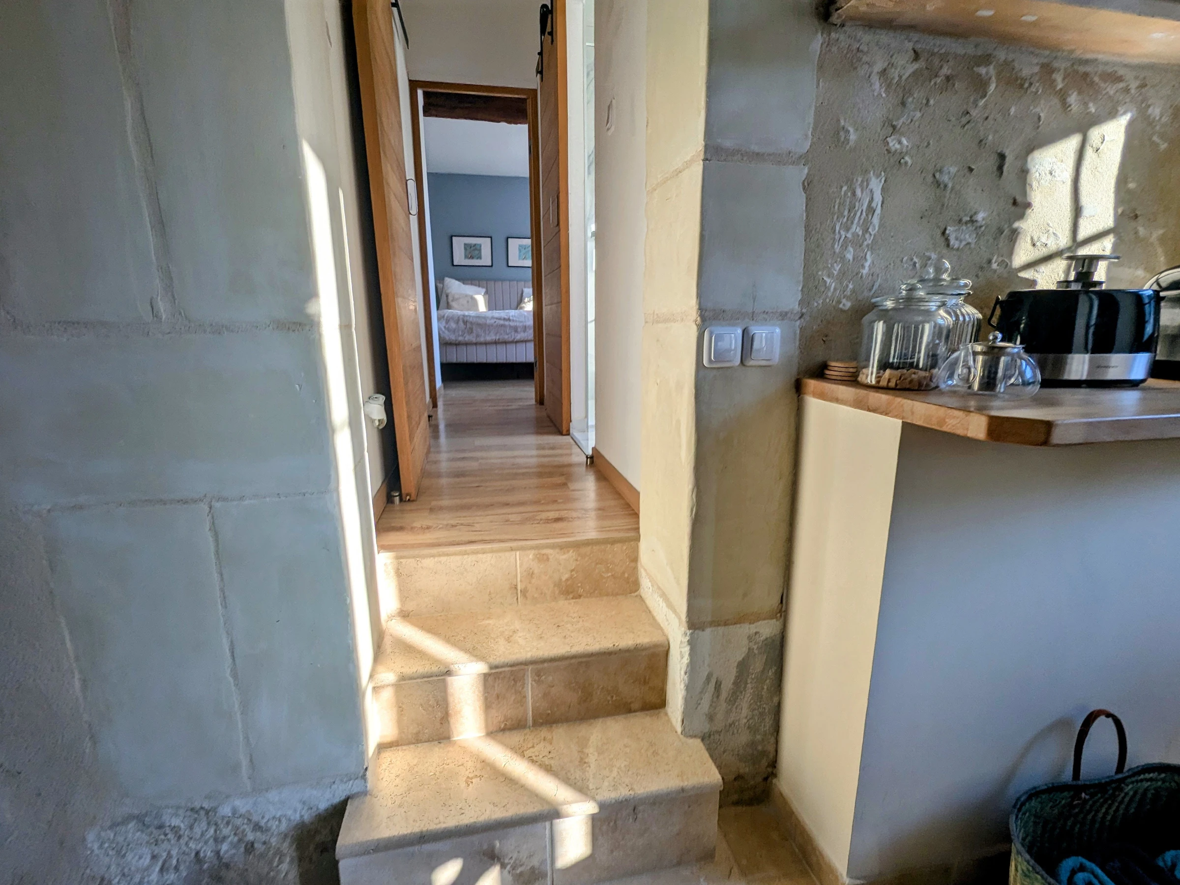 Outside, there's a terrace with garden furniture, a gas barbecue, and a private hot tub. Shared with the owners and two other gîtes, there's a heated swimming pool, a spa, and a lounge area equipped with a fire pit.