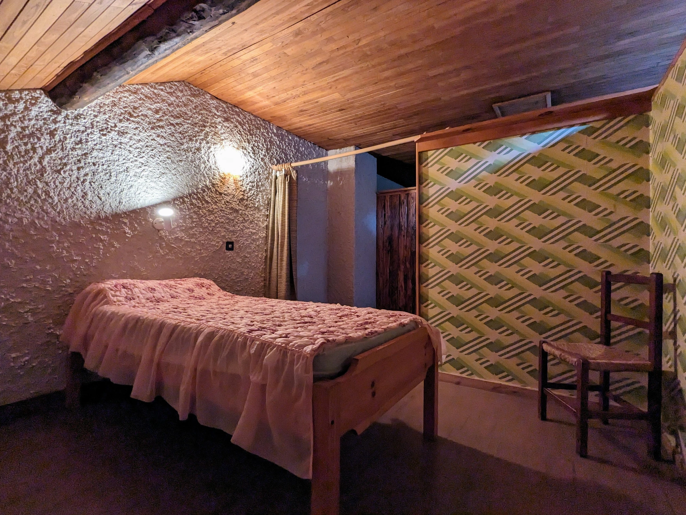 Mezzanine converted into sleeping areas (1 140 cm bed, 2 90 cm beds, 1 child's bed).