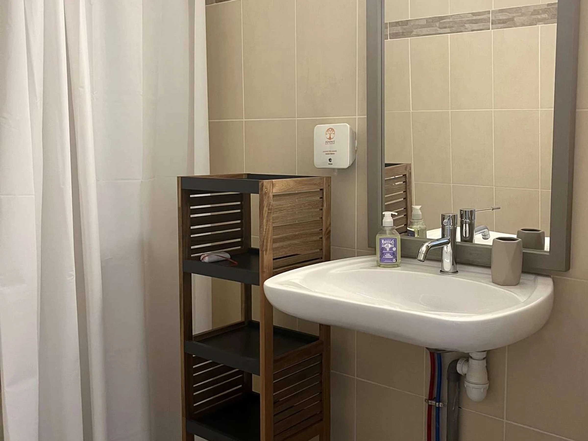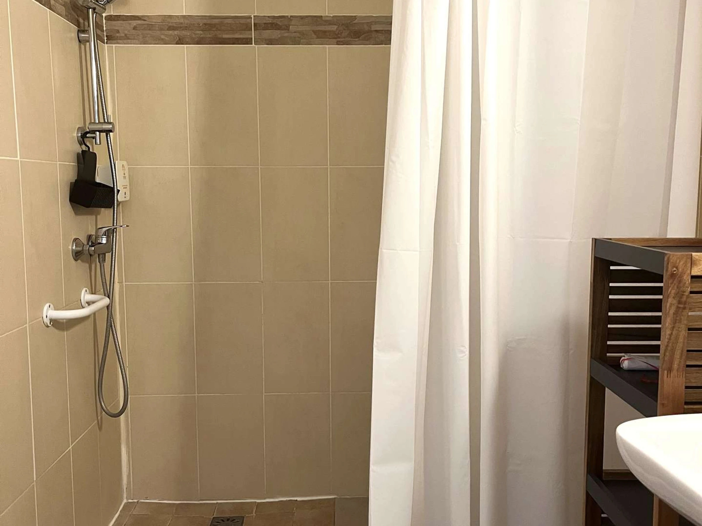 Une salle d'eau avec douche et WC