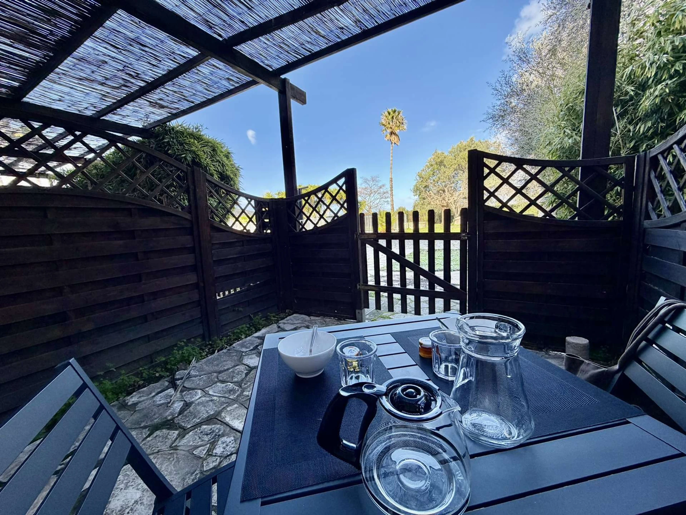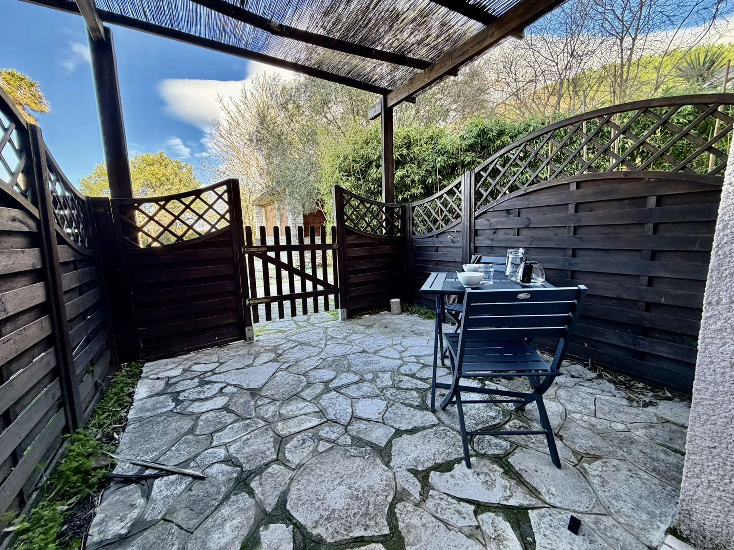 Une terrasse privée pour prendre vos repas au calme avec vue dégagée sur jardins/piscine.