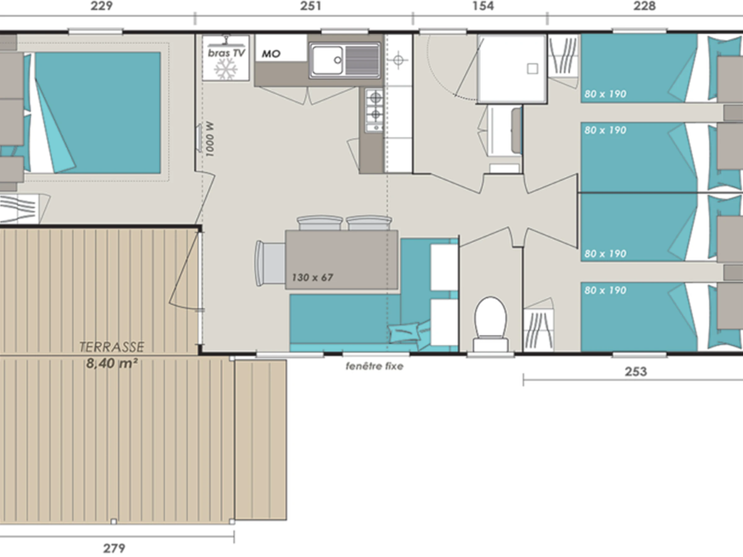 30m² mobile home for 2 people: