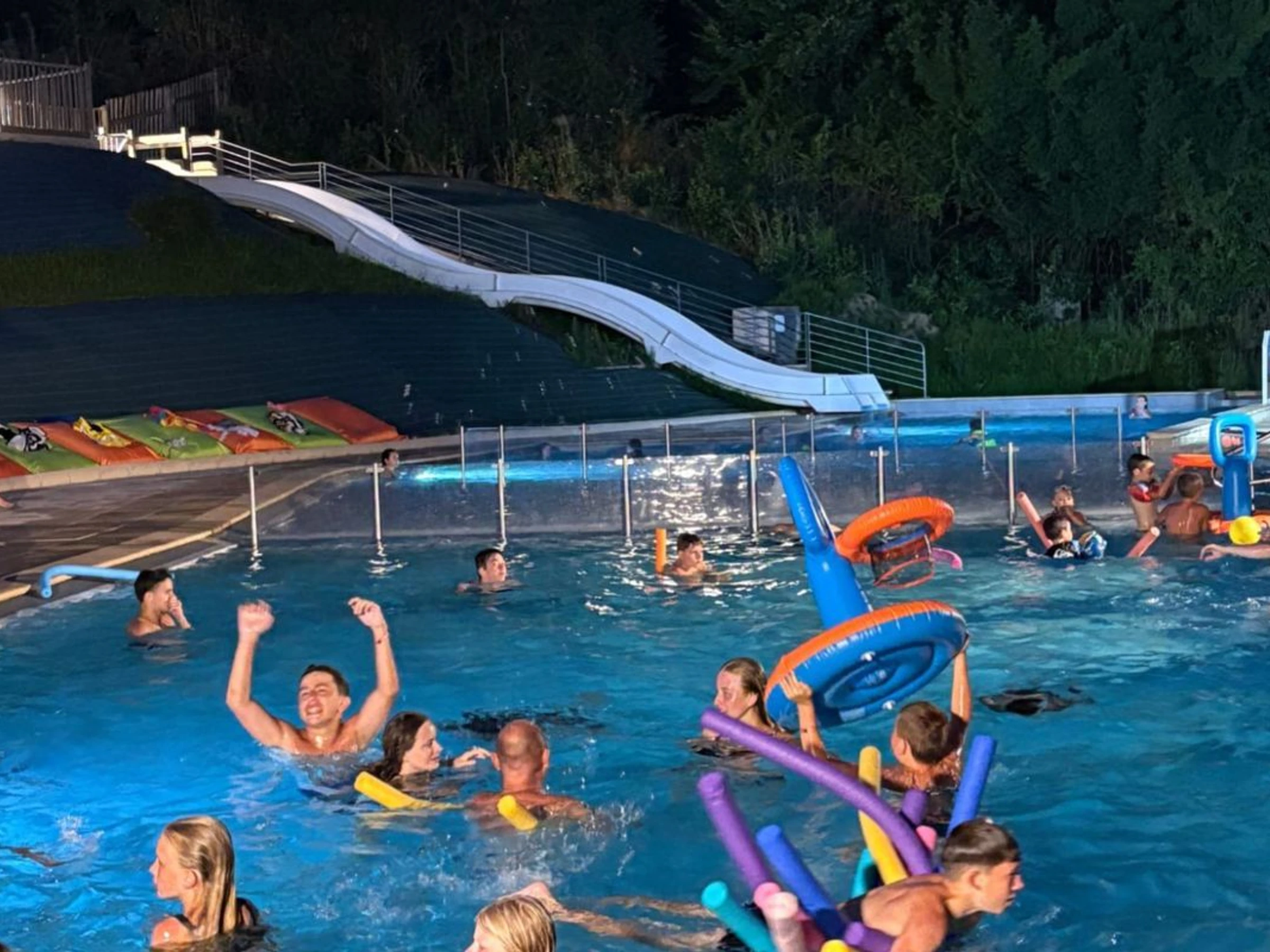 - Outdoor aquatic area of 350 m²: pool, paddling pool, 2-lane water slides, water jets, solarium,