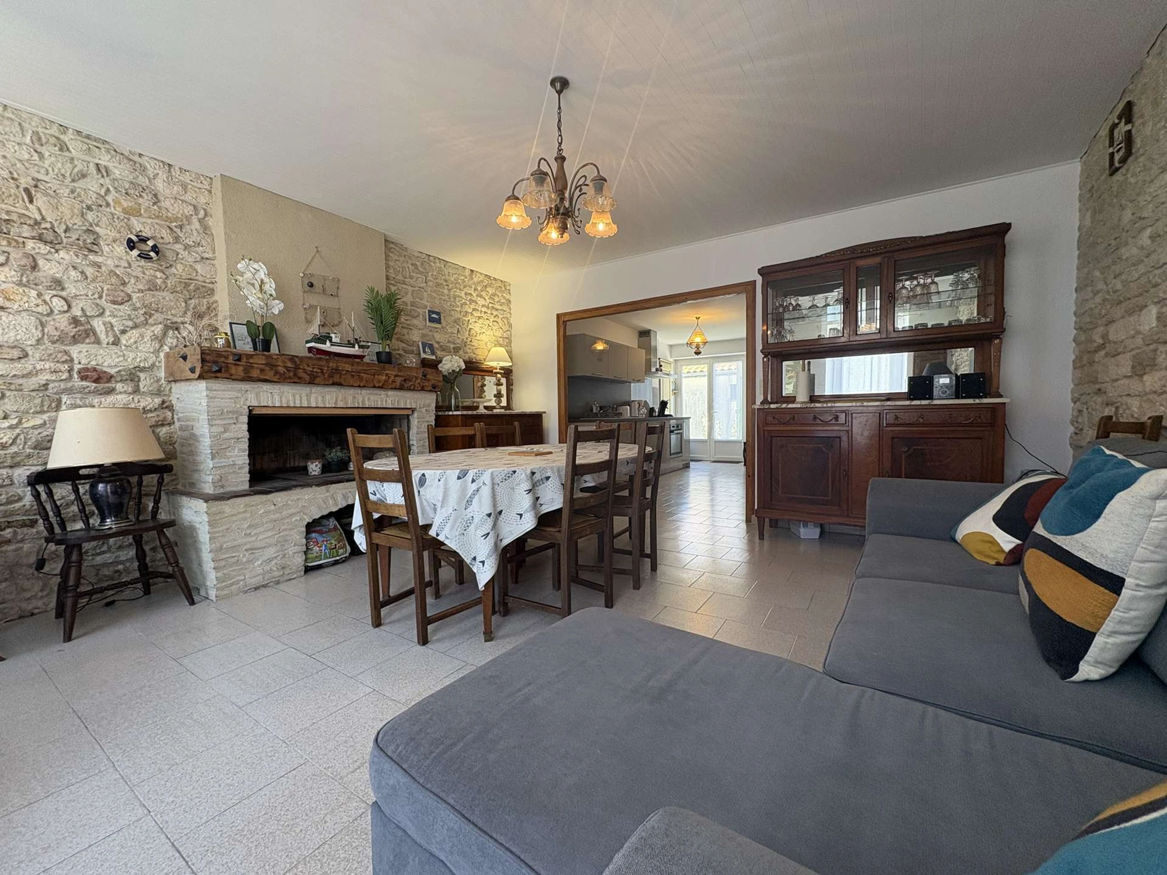Agréable maison dans le calme d'une ruelle et au cœur du village se composant d'une entrée sur la cuisine aménagée et équipée, une pièce de vie avec canapé convertible deux couchages (140), d'une salle d'eau ainsi qu'un WC séparé en enfilade. A l'étage, une première chambre avec un lit deux couchages (140) et rangements, d'une deuxième chambre (sans fenêtre) avec un canapé convertible deux couchages (120), une troisième chambre avec un lit deux couchages (140) et un lit un couchage (90) et rangements, d'une salle de bains avec WC. A l'extérieur un petit jardin non clos et droit de passage avec mobilier de jardin et barbecue. Parking à proximité.