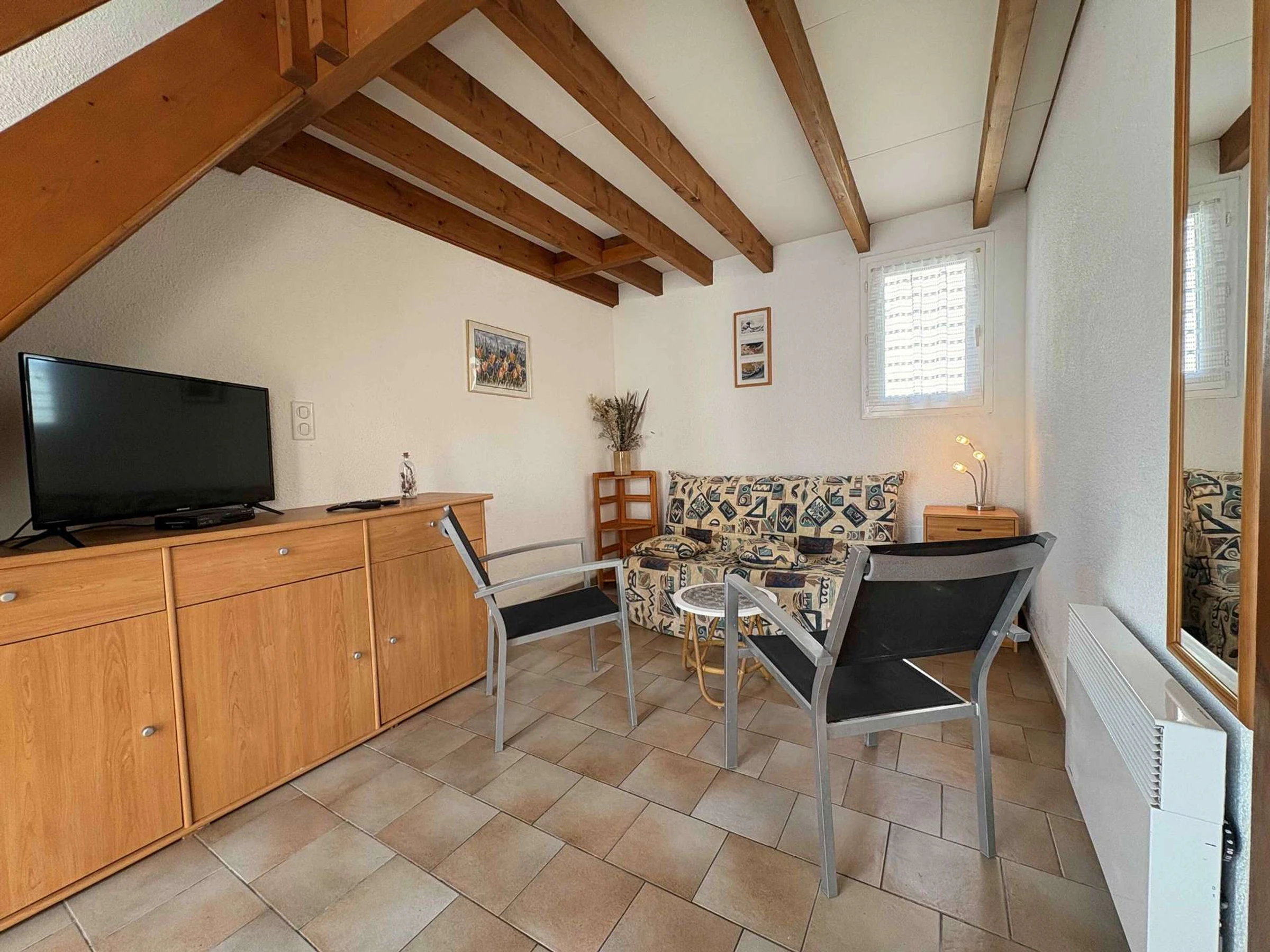 A l’étage, d'une chambre deux couchages (140) et d'un coin nuit avec deux couchages en mezzanine (140). En extérieur, la maison dispose d'une agréable cour avec mobilier de jardin et barbecue!