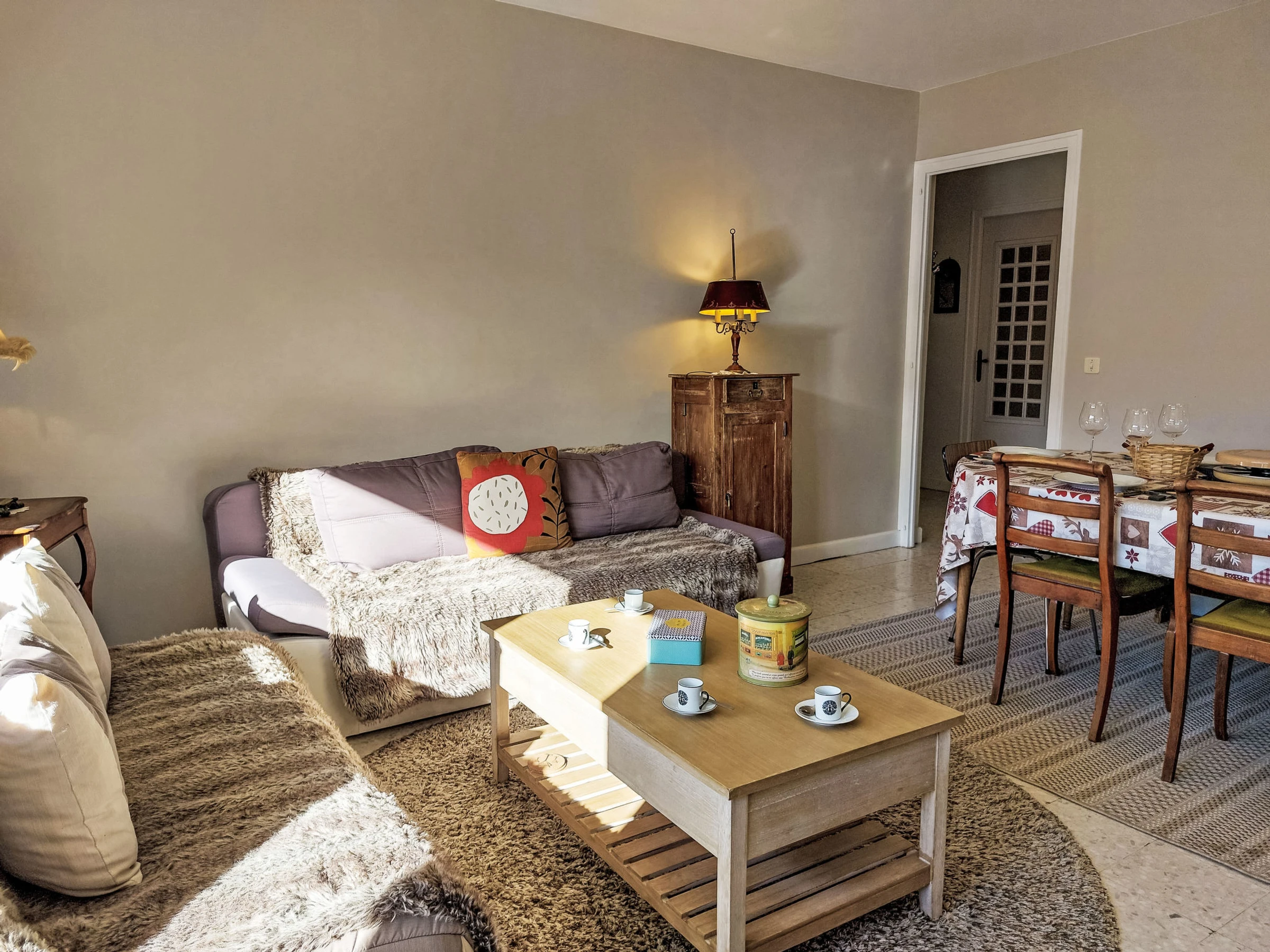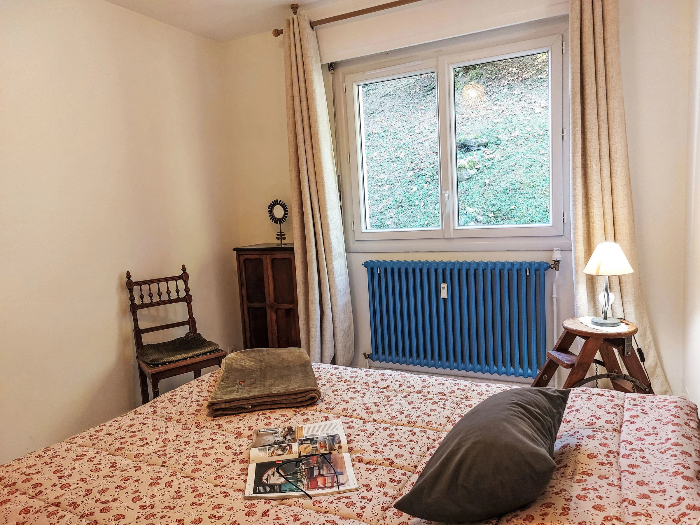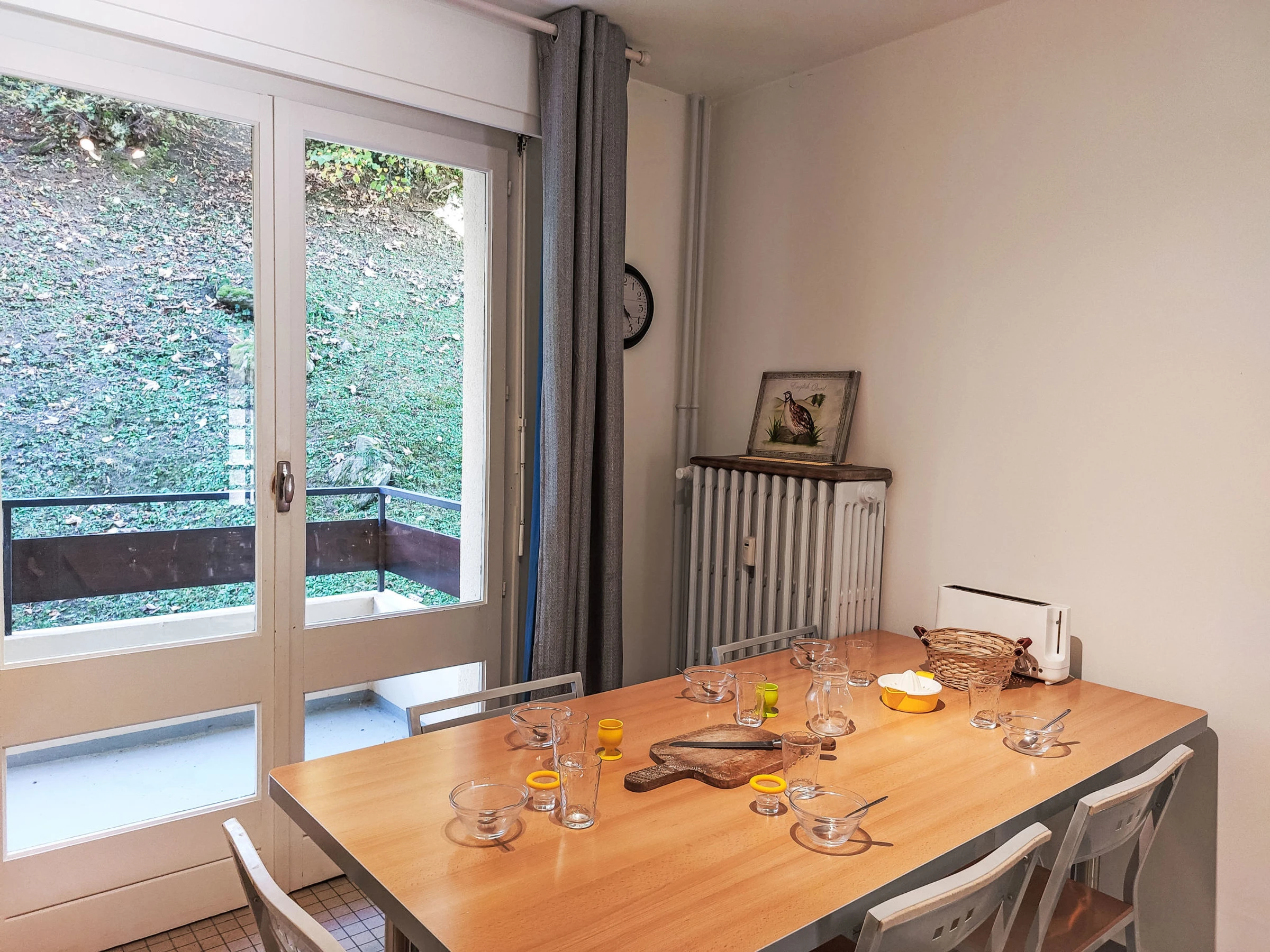 "Androsace", 5-room apartment 109 m2 on 1st floor. Spacious: living/dining room with TV (flat screen). Exit to the balcony. 1 room with 1 french bed (160 cm, length 190 cm). Exit to the balcony. 1 room with 1 french bed (140 cm, length 190 cm). 1 room with 2 beds (90 cm, length 190 cm). Exit to the balcony. 1 room with 2 beds (80 cm, length 190 cm). Kitchen (oven, 3 induction hot plates, toaster, kettle, microwave, freezer, electric coffee machine, raclette grill) with dining table. Exit to the balcony. Bathroom, double hand-basin. Oil heating. 2 small balconies 3 m2, east facing position, large balcony 7 m2, west facing position. Balcony furniture. Beautiful view of the mountains. Facilities: washing machine. Internet (WiFi, free). Garage (1 car). Please note: non-smokers only. TV only FR. Smoke alarm, no lift. Offer by a private individual according to Art. 155, IV of CGI.