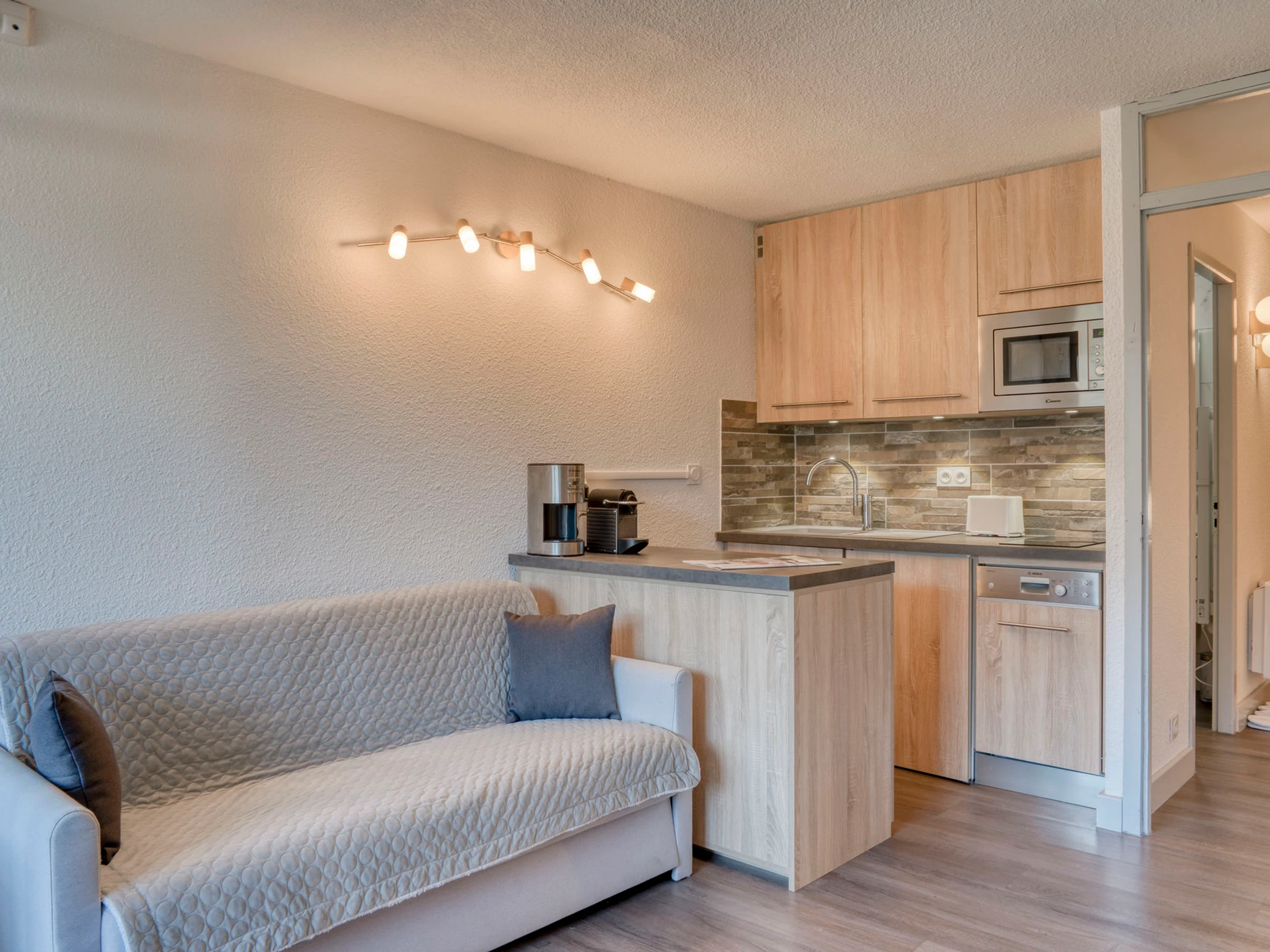- Living space with equipped kitchen