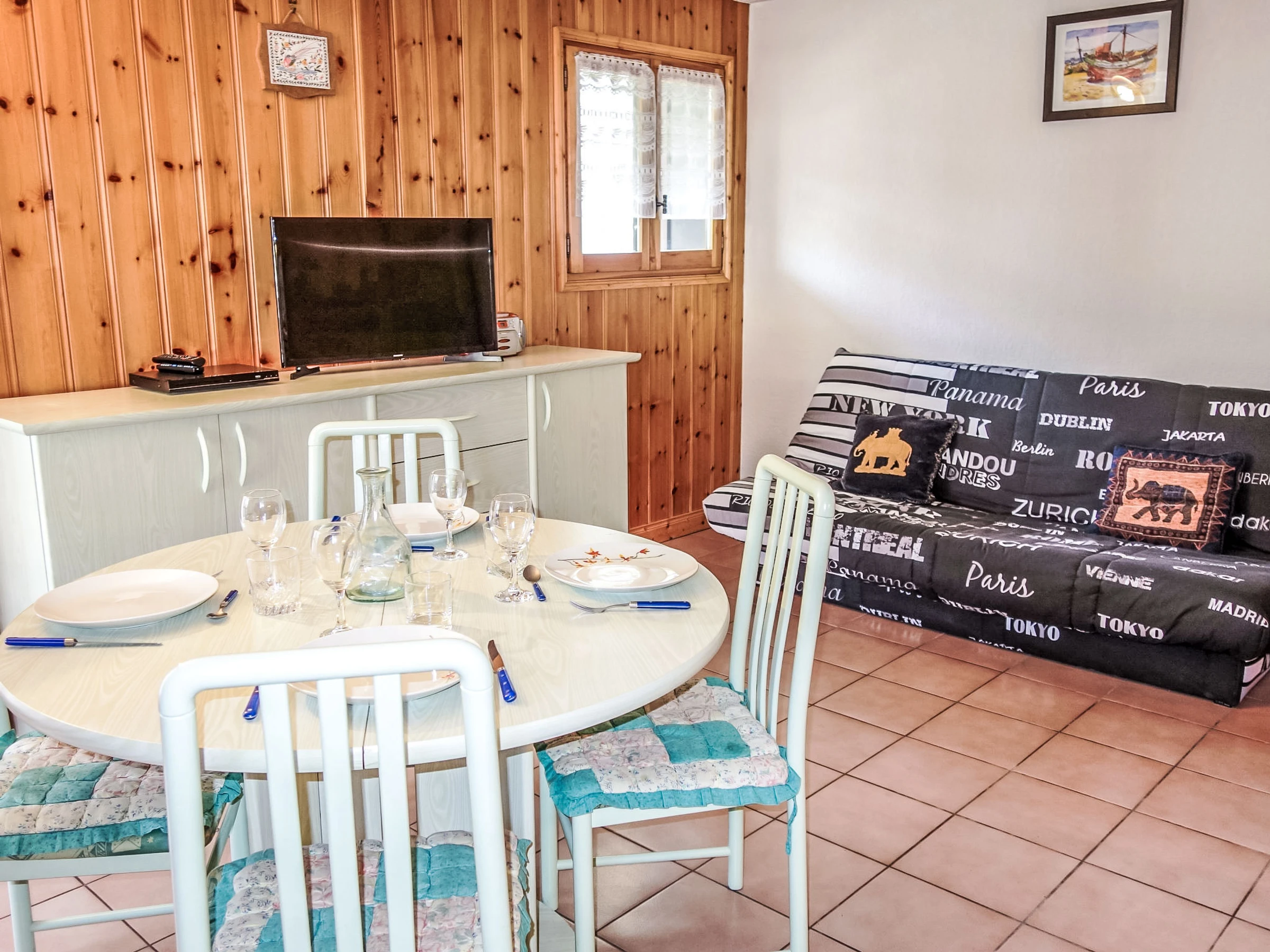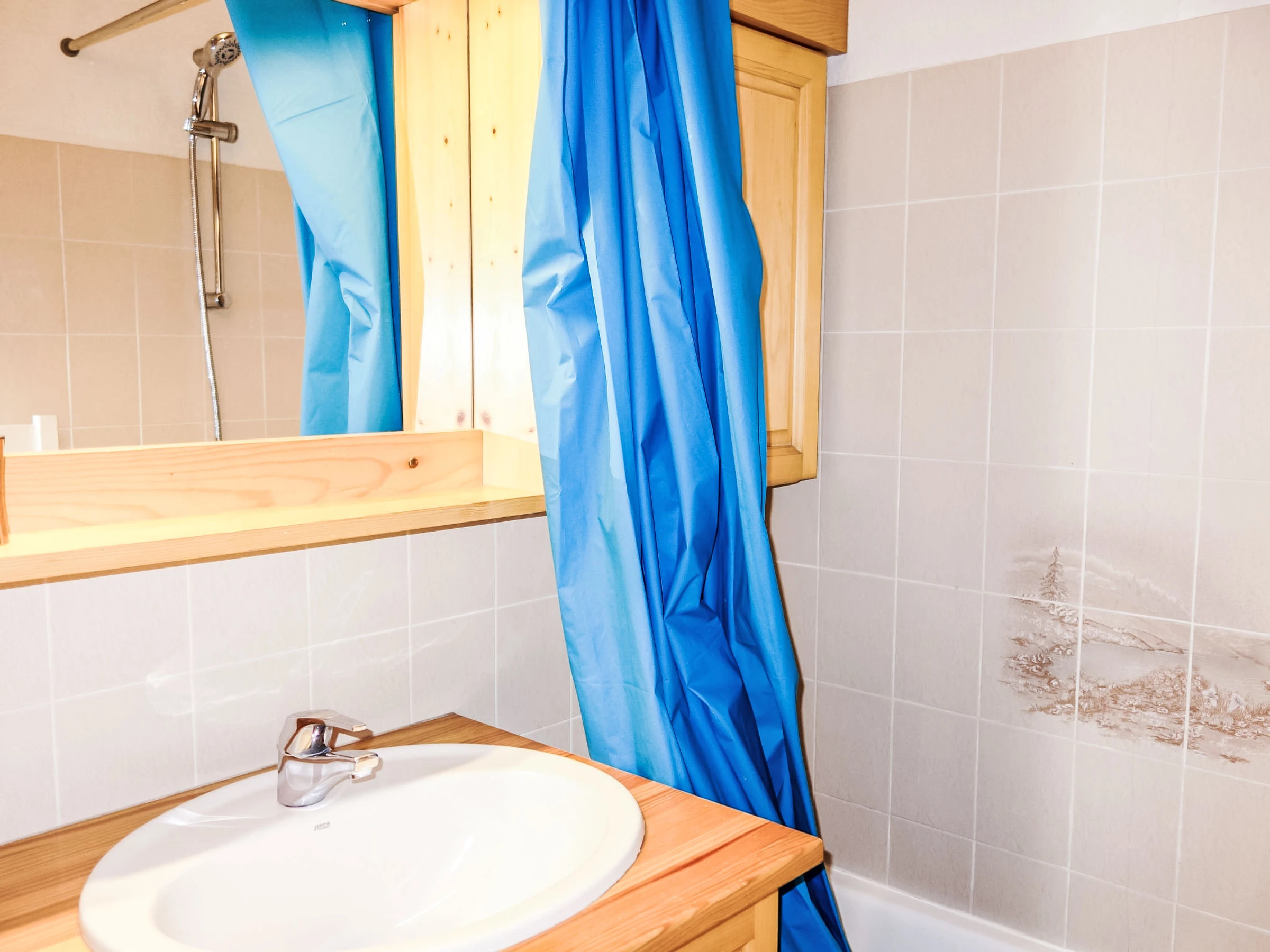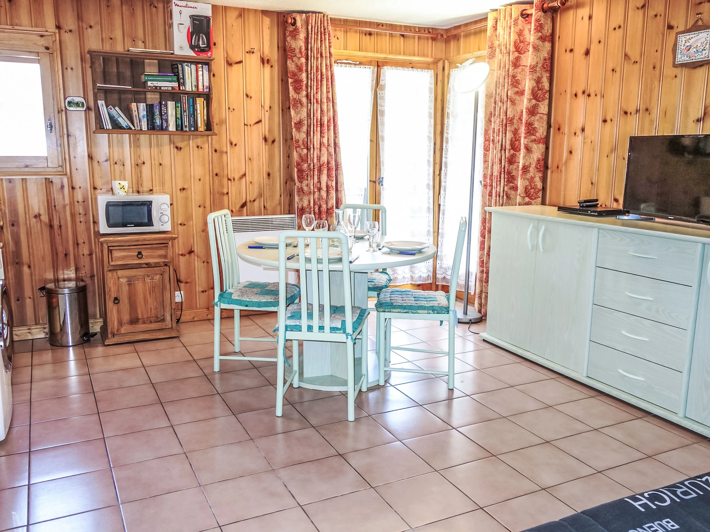 "Jardins Alpins 4", 2-room apartment 28 m2 on 2nd floor. Entrance hall. Living/dining room with 1 double sofabed (135 cm), TV and flat screen. 1 room with 1 french bed (140 cm). Kitchenette (4 hot plates, oven, dishwasher, toaster, kettle, microwave, electric coffee machine, raclette grill). Bathroom, sep. WC. Electric heating. Balcony 10 m2. Balcony furniture. Facilities: washing machine. Internet (WiFi, extra). Garage. Please note: non-smokers only. TV only FR. Smoke alarm.