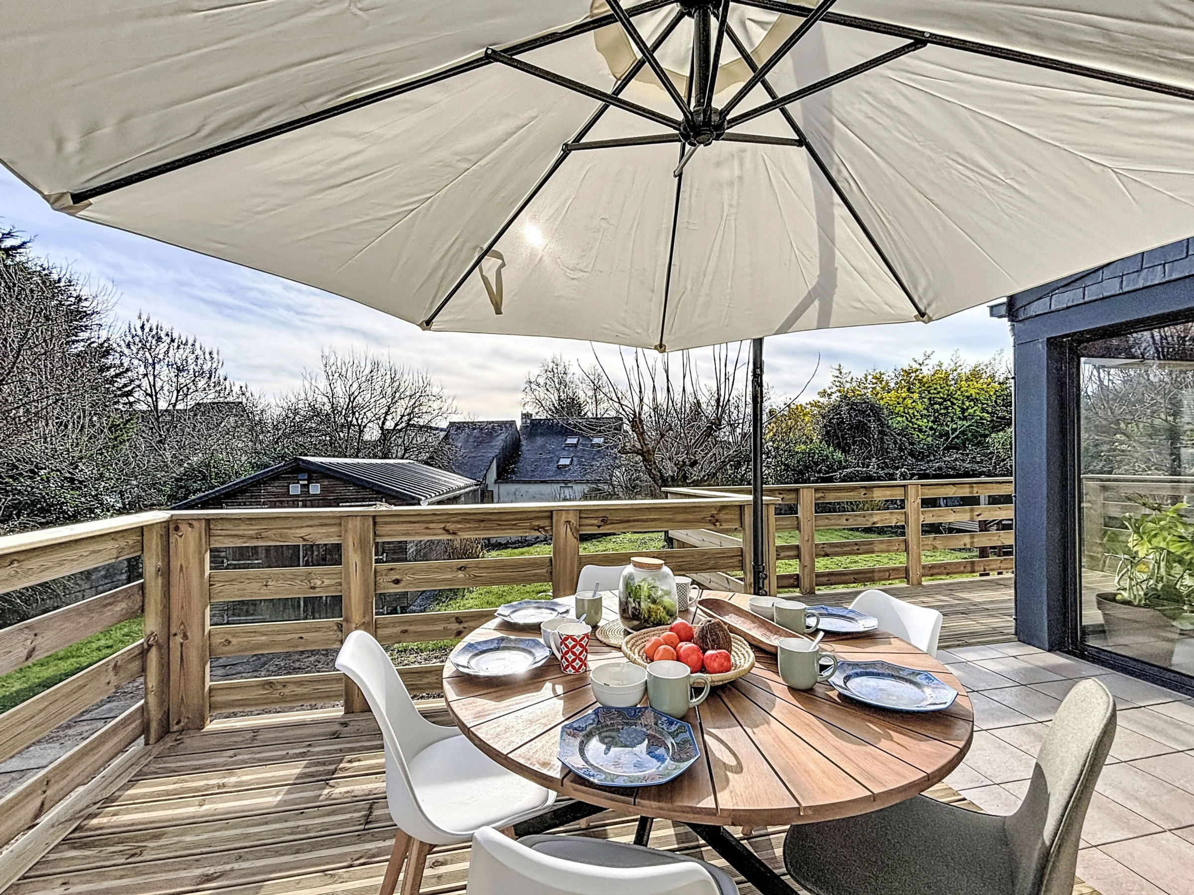 "Maison de Kergoff", 4-room house 90 m2. Comfortable furnishings: living/dining room with TV (flat screen). Exit to the veranda. 1 room with 1 french bed (1 x 140 cm, length 190 cm). Kitchen (oven, dishwasher, 3 induction hot plates, toaster, kettle, freezer, electric coffee machine, Capsules for coffee machine (Senseo) extra). Shower, sep. WC, double hand-basin. Upper floor: 1 room with 2 beds (90 cm, length 190 cm). 1 room with 1 french bed (1 x 140 cm, length 190 cm). Sep. WC. Heating. Terrace 25 m2. Terrace furniture, barbecue. Facilities: washing machine, children's high chair, baby cot, hair dryer. Internet (WiFi, free). Parking. Please note: non-smokers only. 1 pet/ dog allowed. Smoke alarm. Offer by a private individual according to Art. 155, IV of CGI. [hidden]