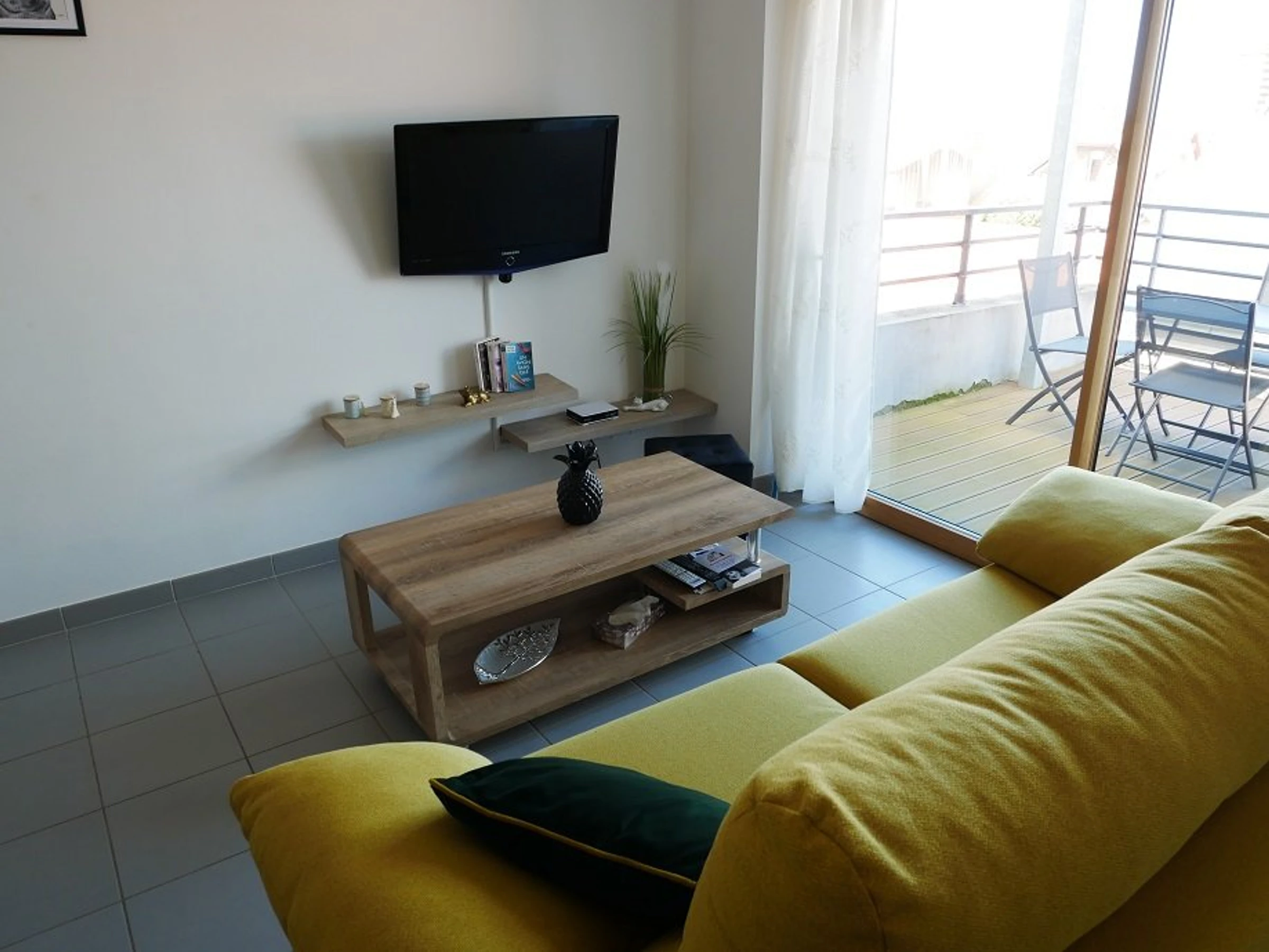 A 400m du centre de Saint-Gilles et de la Vie, 200 m d'un supermarché, 1000 m de la gare et 1500 m de la Grande Plage, ce bel Appt T2 au 2ème étage avec ascenseur comprend, entrée, séjour (canapé-lit 140) (TV écran plat) ouvrant sur Terrasse avec coin-cuisine (2 feux vitrocéramique, hotte, four multifonction, réfrigérateur top), 1 chambre (1 lit 140), salle d'eau (douche, meuble vasque, lave-linge), WC. Parking privatif en sous-sol.
