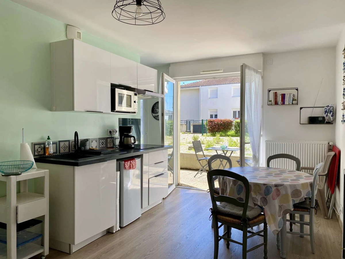 Situé au rez-de-chaussée d'une résidence moderne et récente très appréciée pour son calme, ce bel appartement peut accueillir jusqu’à 2 personnes. Idéalement situé au cœur du centre-ville, vous serez à proximité immédiate du marché et des quais de Saint Gilles. La Grande Plage se trouve à seulement 1 km, facilement accessible à pied ou à vélo. L’espace de vie de 18 m² s’agrémente d’un coin nuit supplémentaire de 5 m² et son lit double. La kitchenette est fonctionnelle et la terrasse est un plus, en acceptant un vis-à-vis et une vue sur la cour commune. Un stationnement pour la voiture est disponible à seulement 50 mètres de la résidence, dans un parking privé et sécurisé. (Réf Phare)
